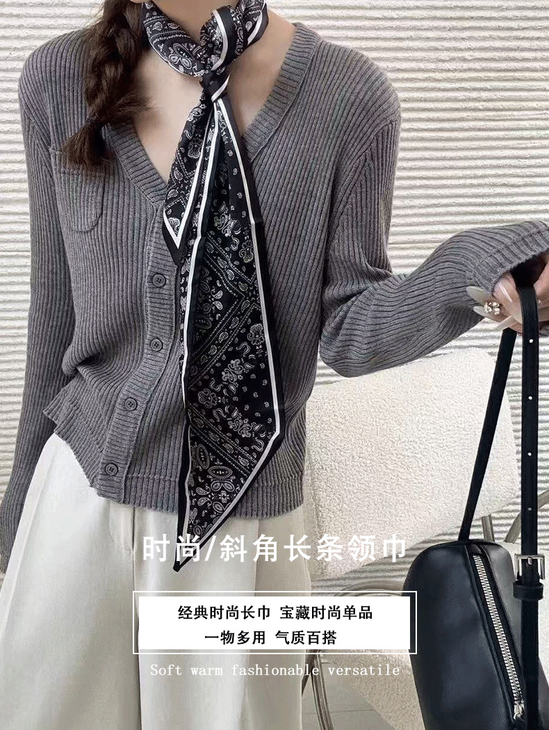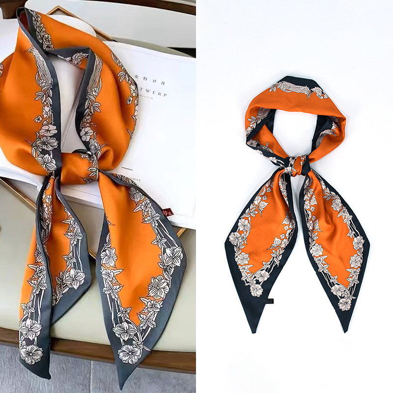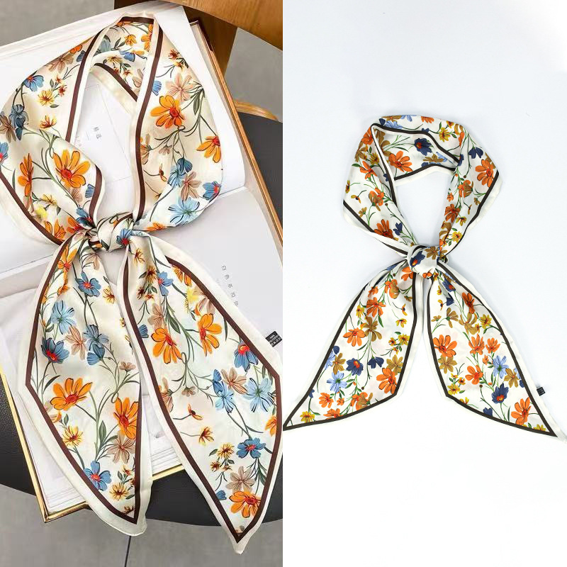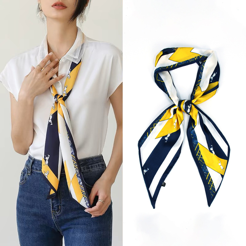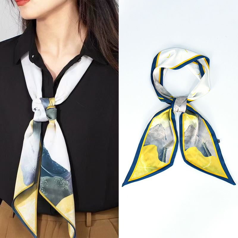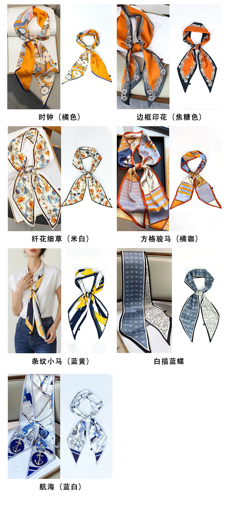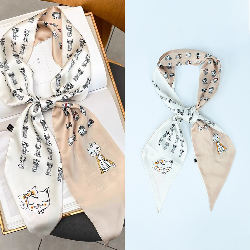 인터넷 연예인 봄과 가을 새로운 긴 실크 스카프 모방 실크 넥타이 가방 헤어 벨트 프랑스 흑백 목 스카프 여성의 하이 엔드 감각