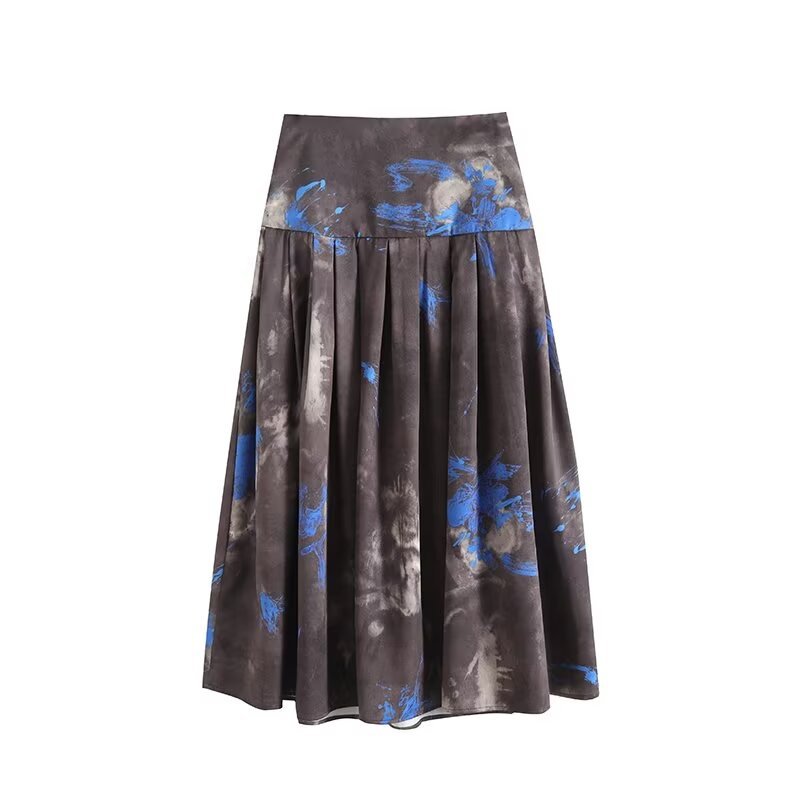 UC & ZA 국경 유럽과 미국 여성의 2025 년 이른 봄 새로운 복고풍 예술 부서 대비 컬러 인쇄 주름 치마스토어 가기