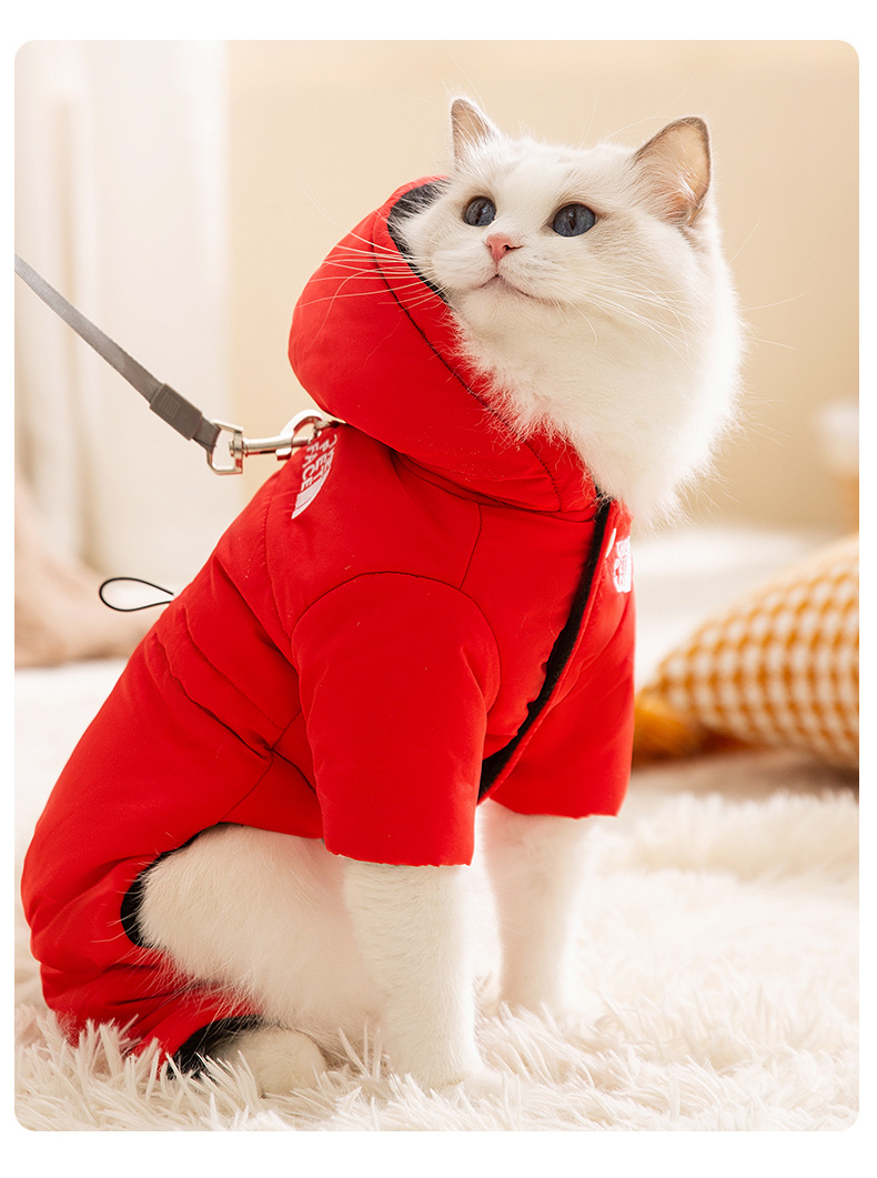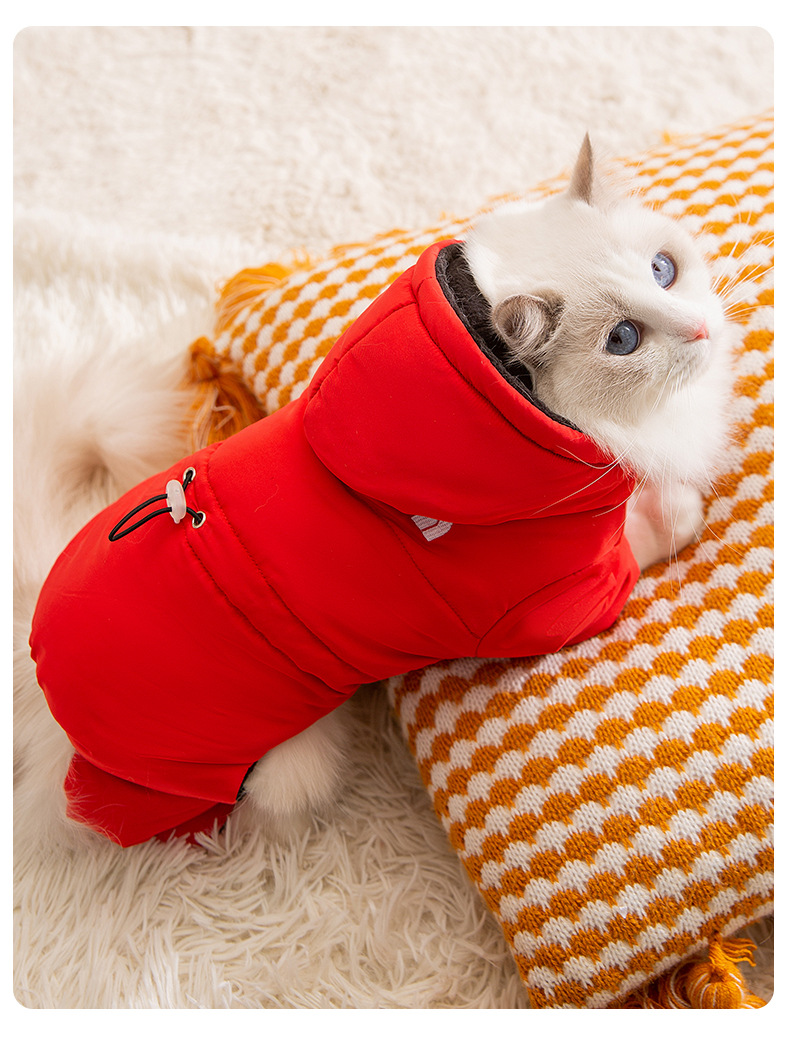 애완 동물 고양이 옷 가을과 겨울 따뜻한 후드 새끼 고양이 네 다리면 패딩 작은 개 테디 개 고양이 의류스토어 가기