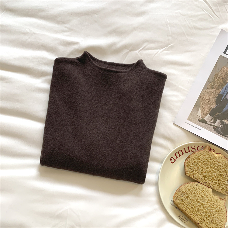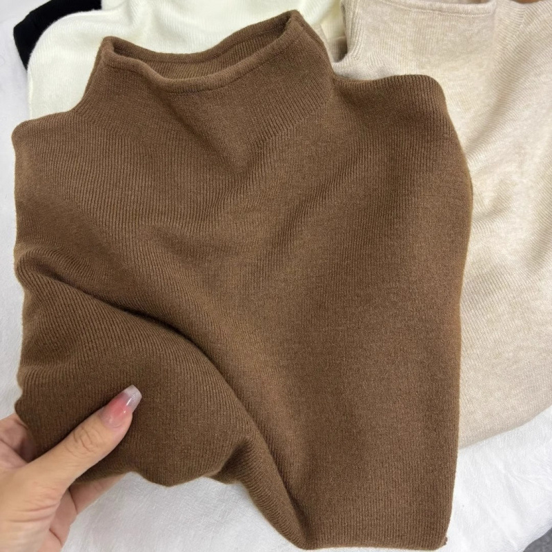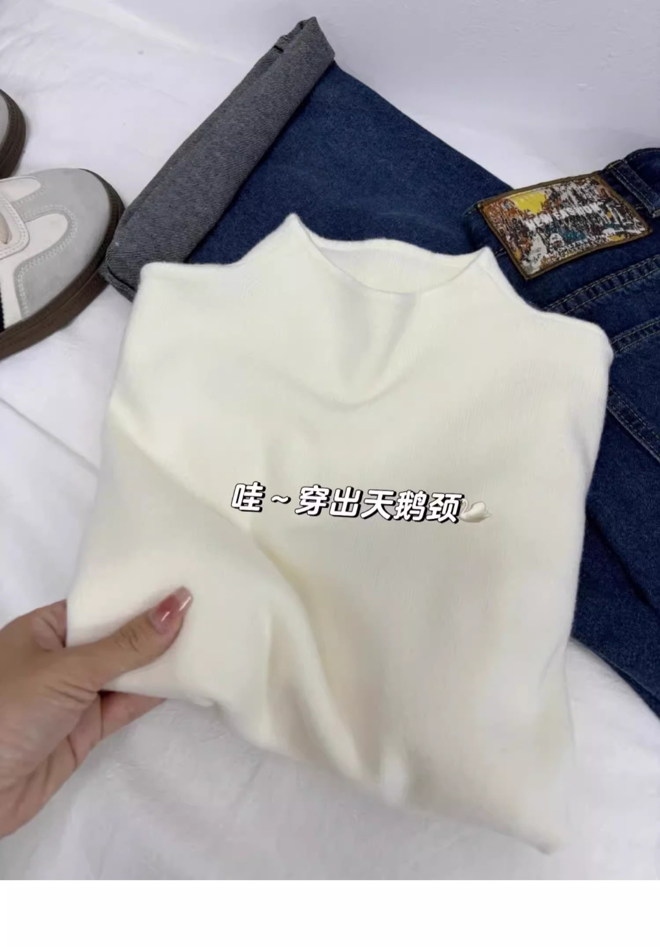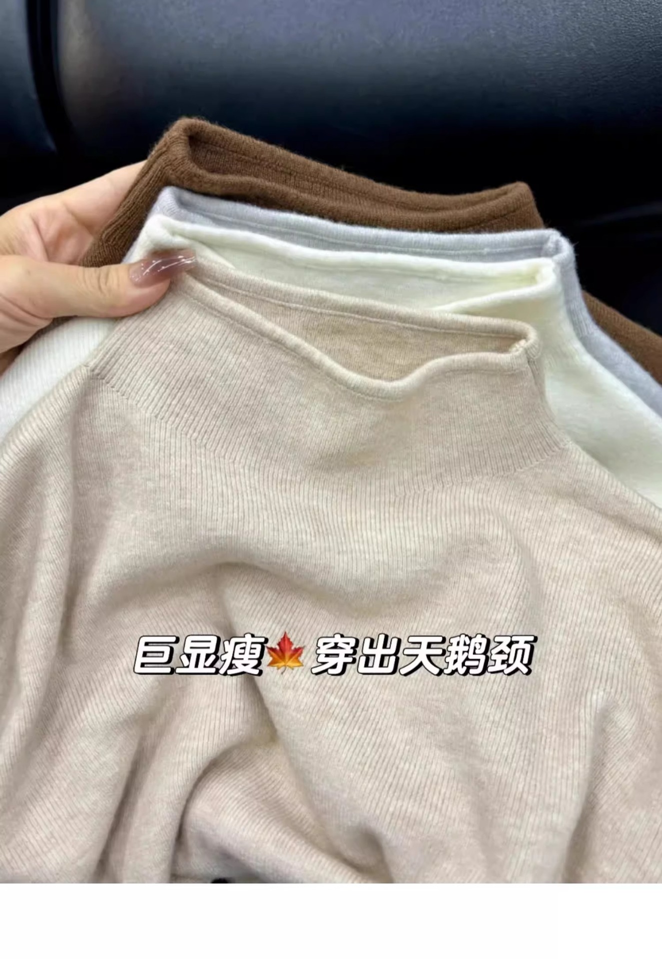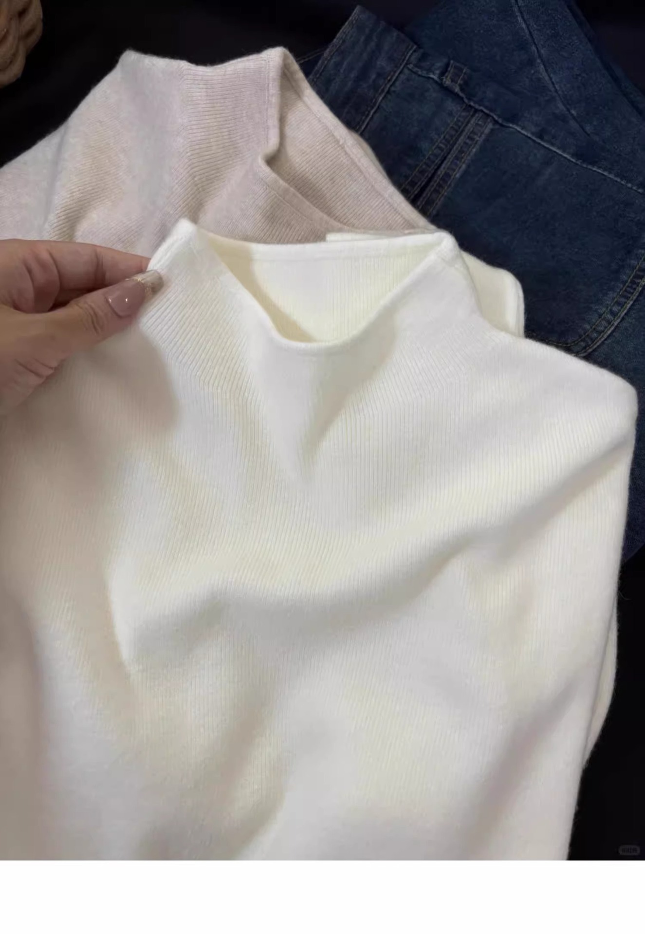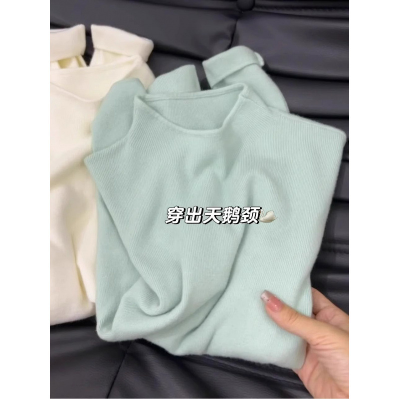 소프트 푸푸 밀크 블루 작은 스탠드 칼라 긴팔 스웨터 여성 가을 슬림 핏 스웨터 베이스 탑 하프 하이 칼라스토어 가기