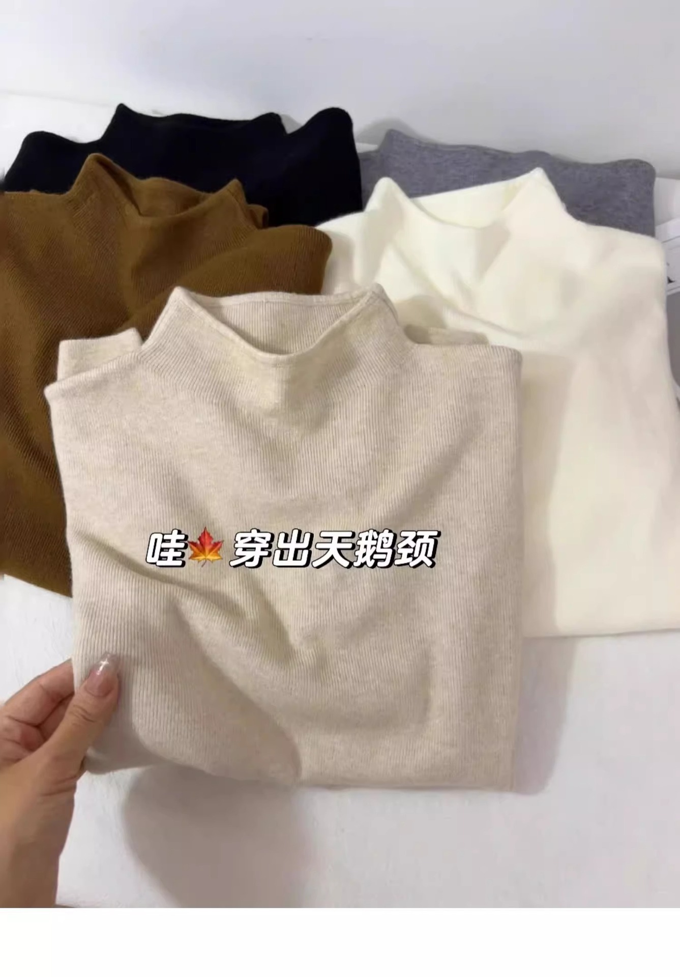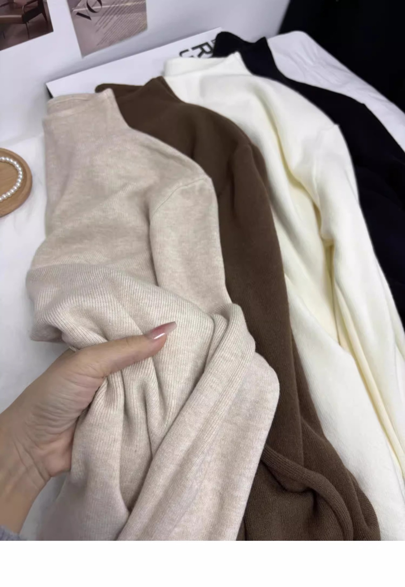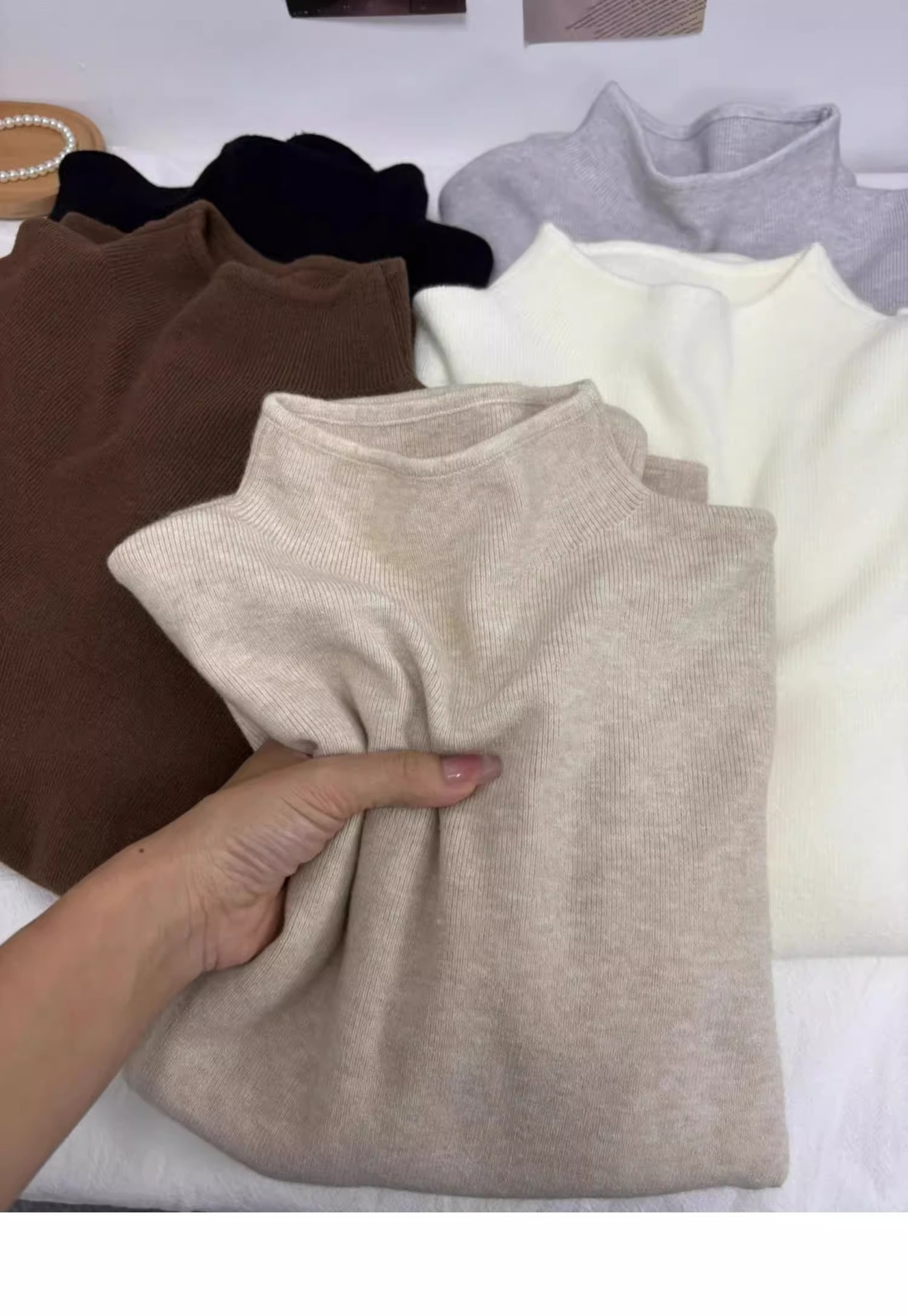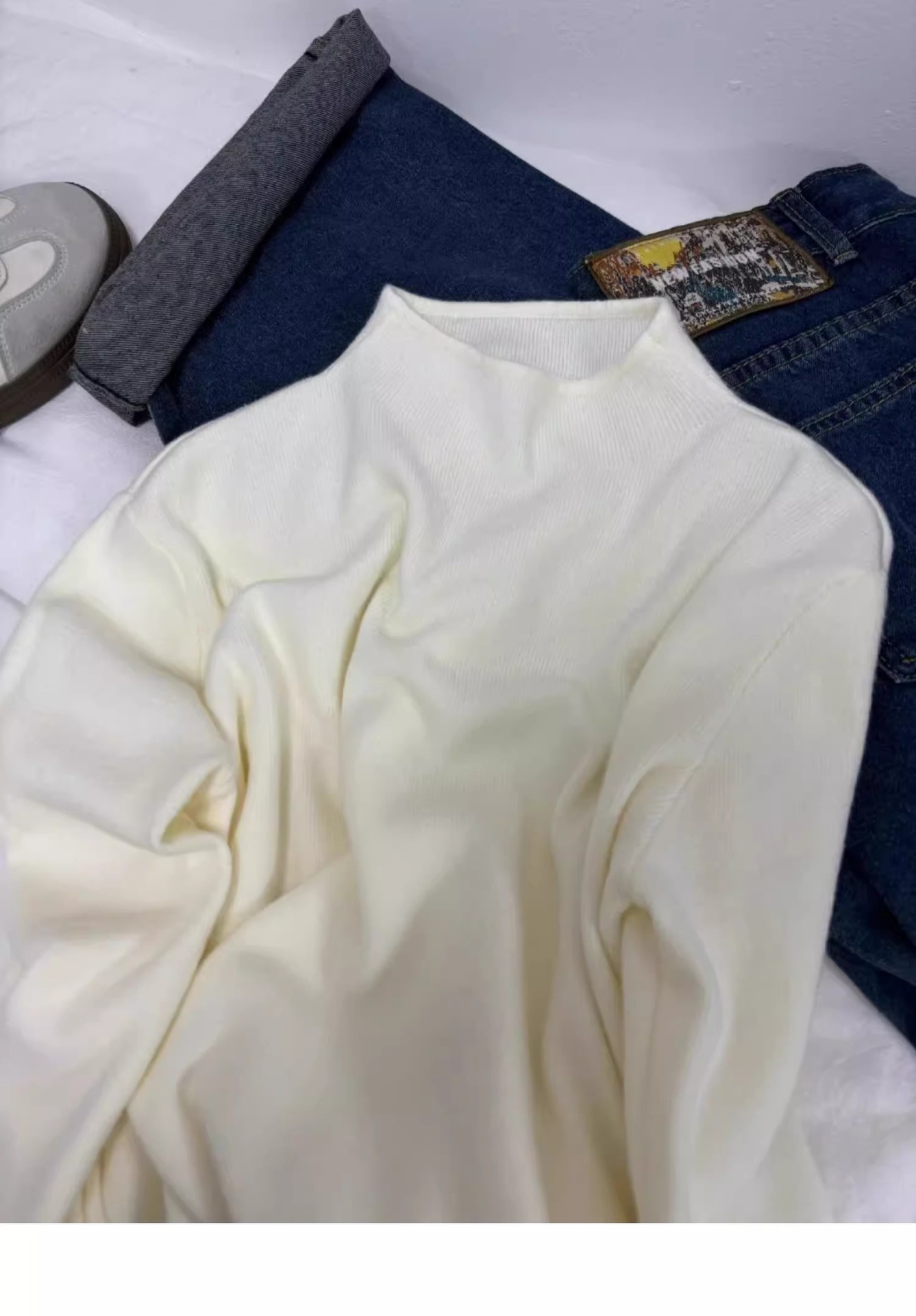 소프트 푸푸 밀크 블루 작은 스탠드 칼라 긴팔 스웨터 여성 가을 슬림 핏 스웨터 베이스 탑 하프 하이 칼라스토어 가기