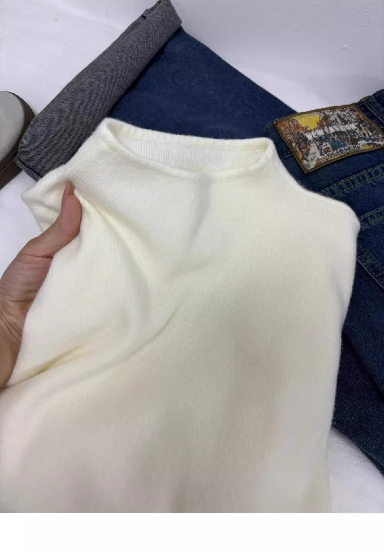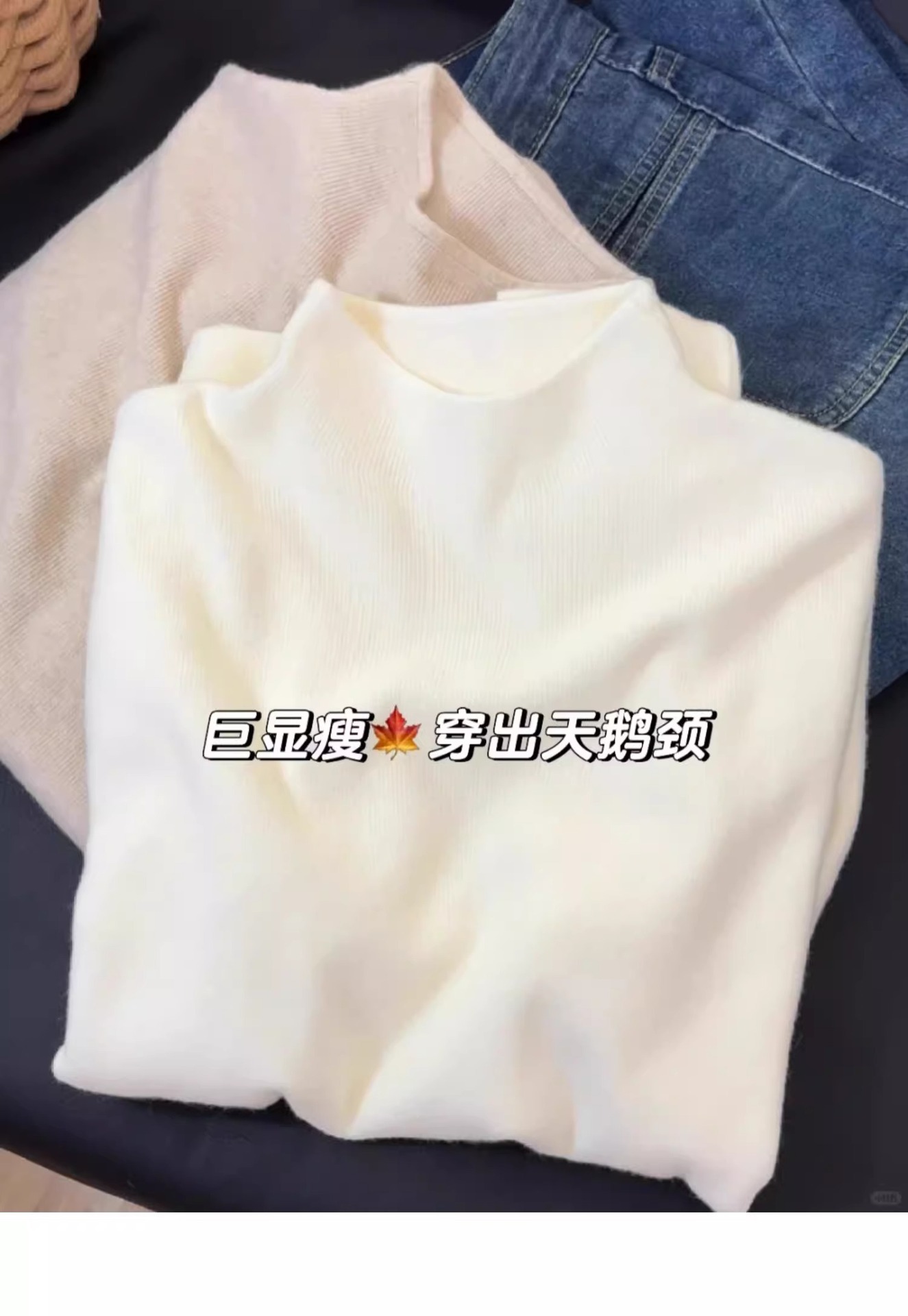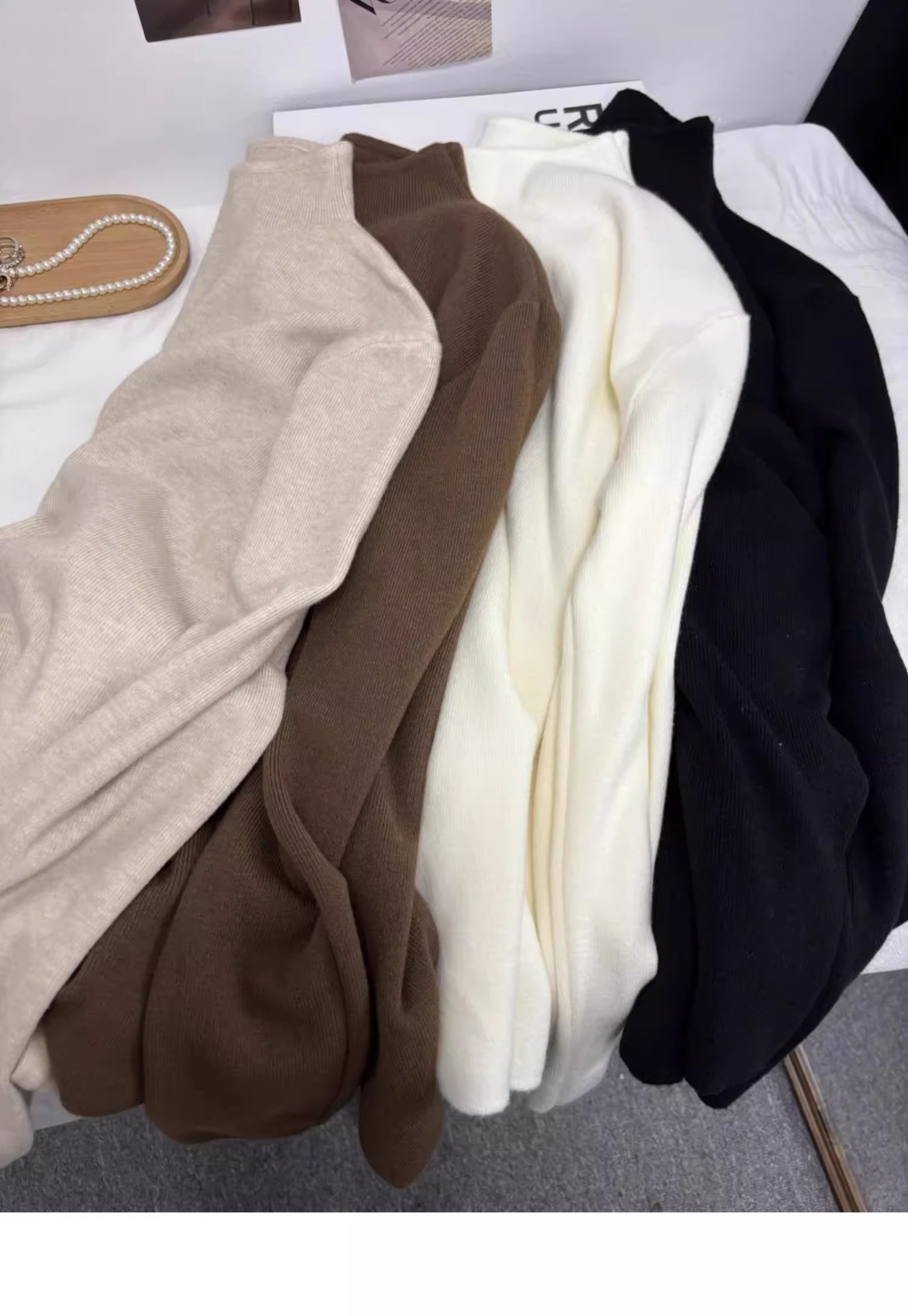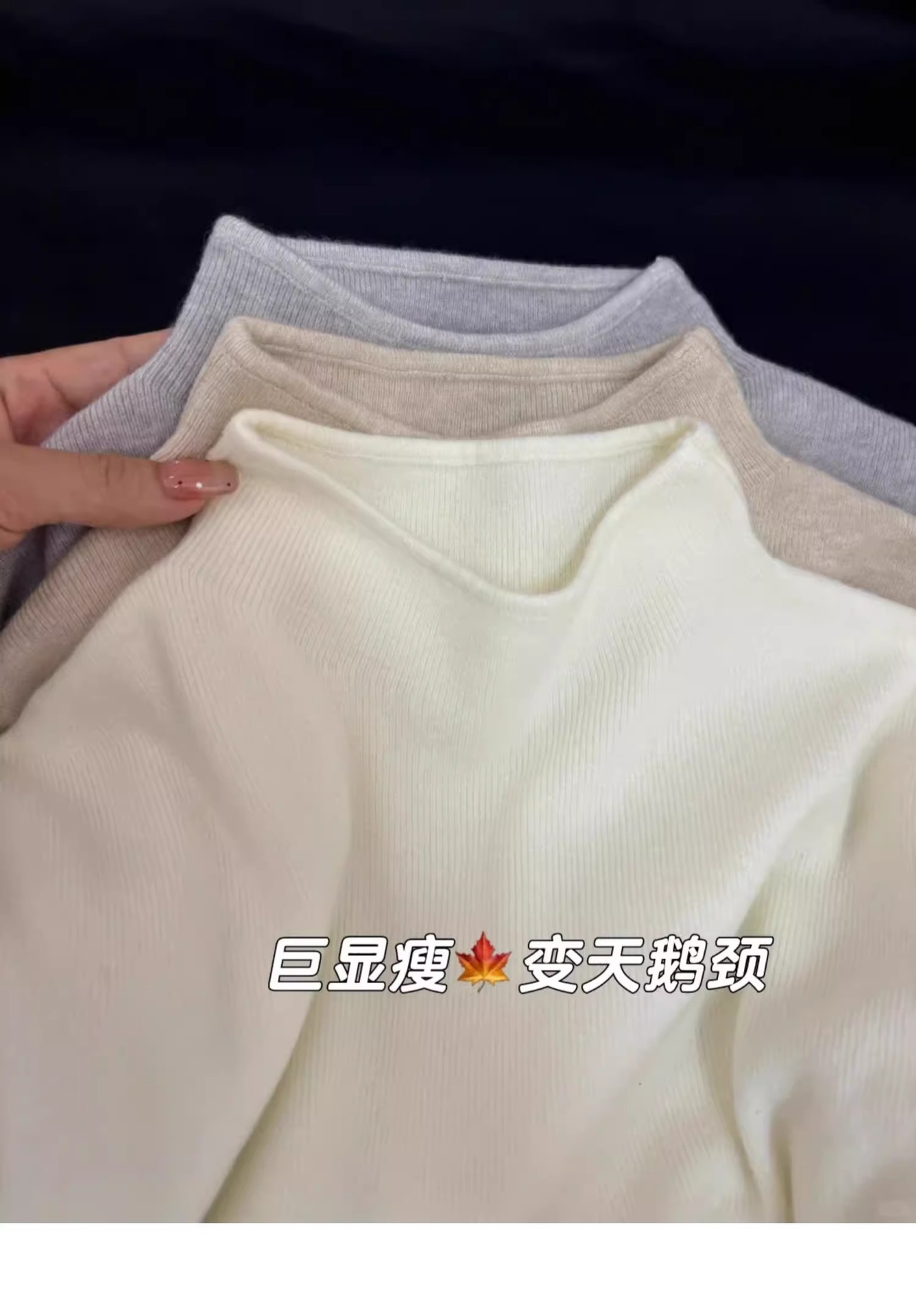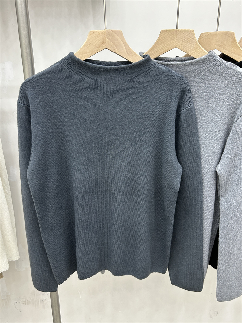 소프트 푸푸 밀크 블루 작은 스탠드 칼라 긴팔 스웨터 여성 가을 슬림 핏 스웨터 베이스 탑 하프 하이 칼라스토어 가기