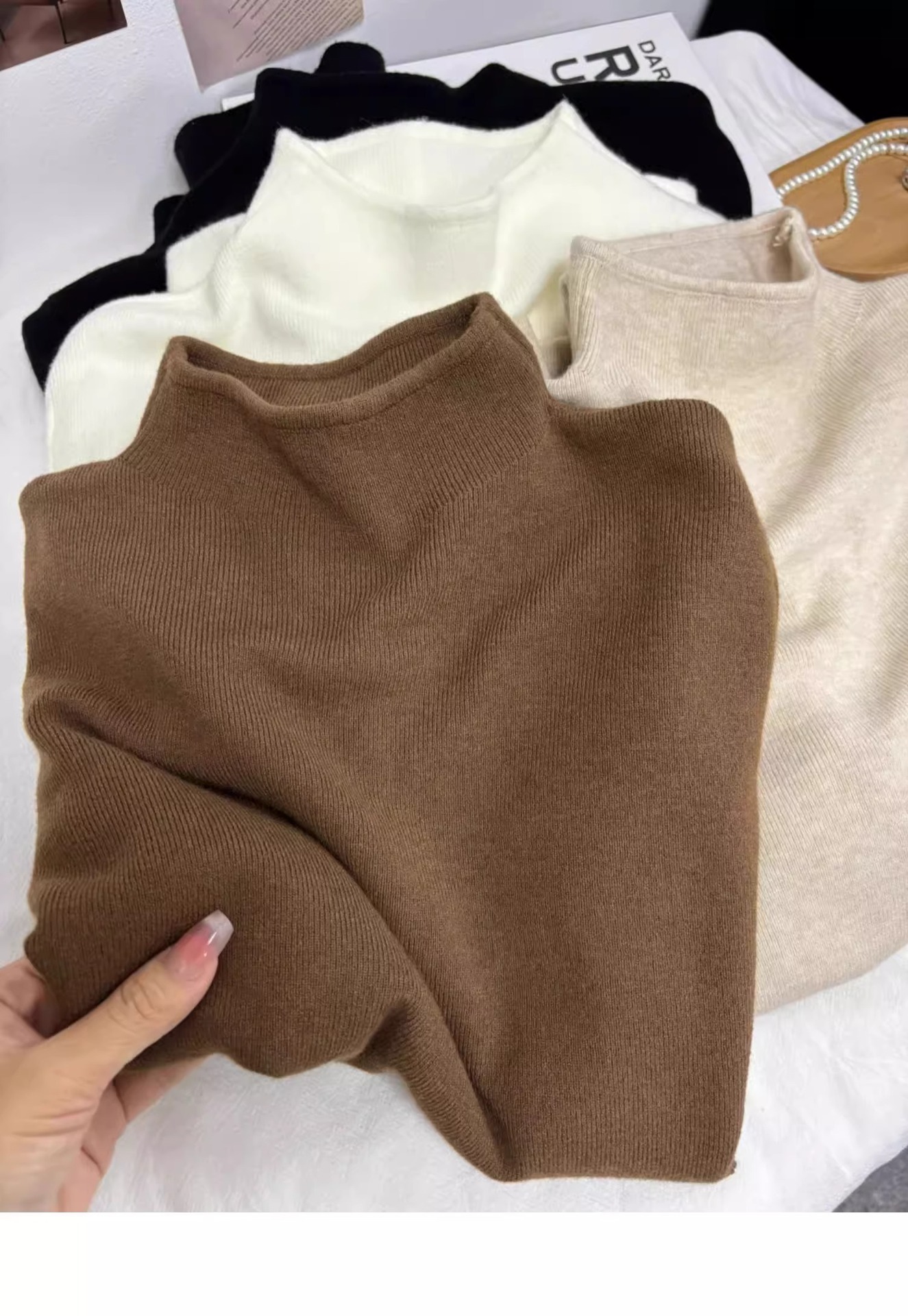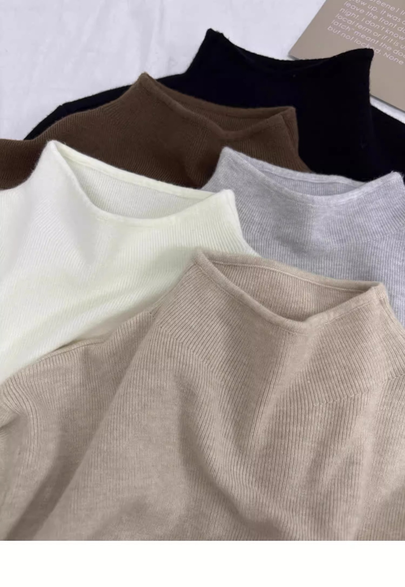소프트 푸푸 밀크 블루 작은 스탠드 칼라 긴팔 스웨터 여성 가을 슬림 핏 스웨터 베이스 탑 하프 하이 칼라
