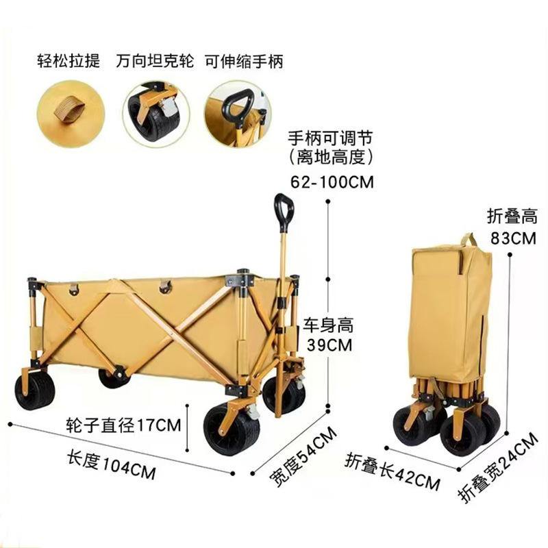 캠핑카 야외 접이식 더블 브레이크 대형 캠프 자동차 피크닉 자동차 트레일러 캠핑 핸드 풀 로드 스톨 트롤리