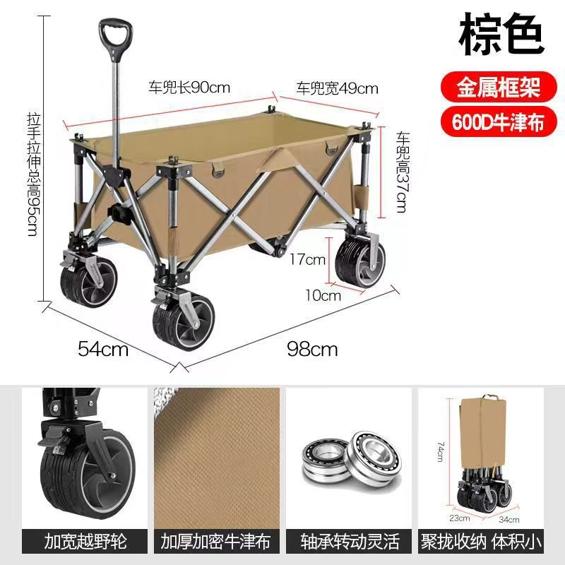 캠핑카 야외 접이식 더블 브레이크 대형 캠프 자동차 피크닉 자동차 트레일러 캠핑 핸드 풀 로드 스톨 트롤리스토어 가기