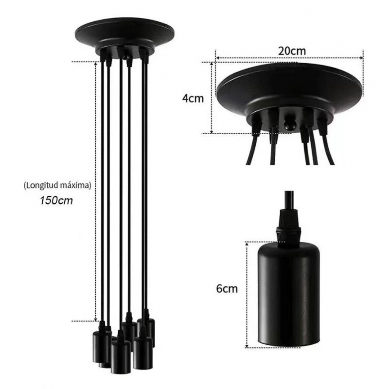 • 전구가 없는 6개 헤드 2m 검정색 램프 헤드 코드