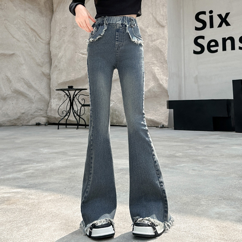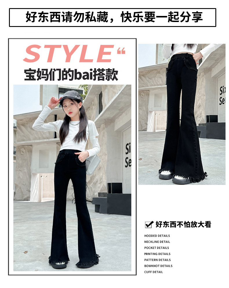 아마존 여아 봄 가을 데님 나팔바지 2025 신상 패션 한국 스타일 중대형 아동용 슬림핏 바지스토어 가기