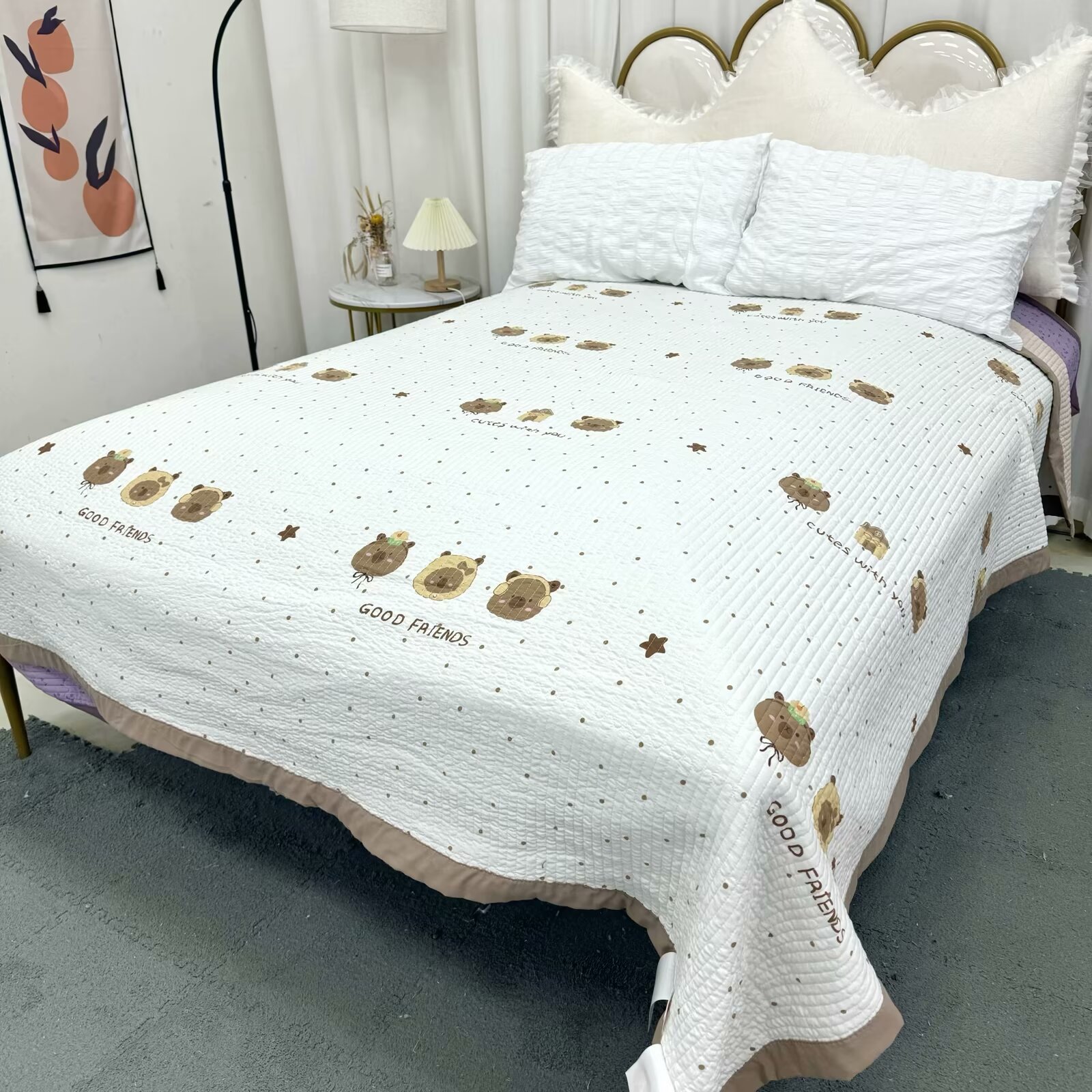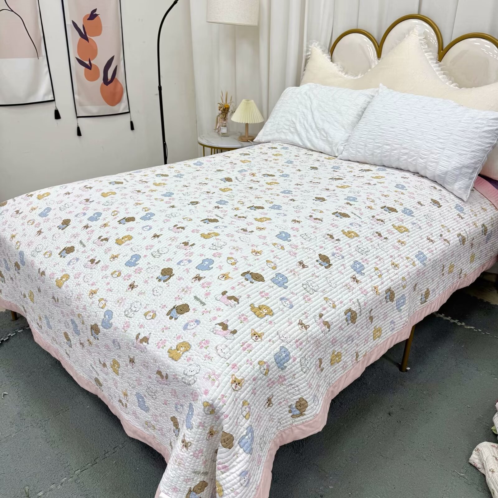 엄마와 아기 두꺼운 침대 커버 스트레이트 엣지 세척 코튼 침대 커버 사계절 유니버설 커버 코튼 퀼트 가정용 더블 대형 침대 시트스토어 가기