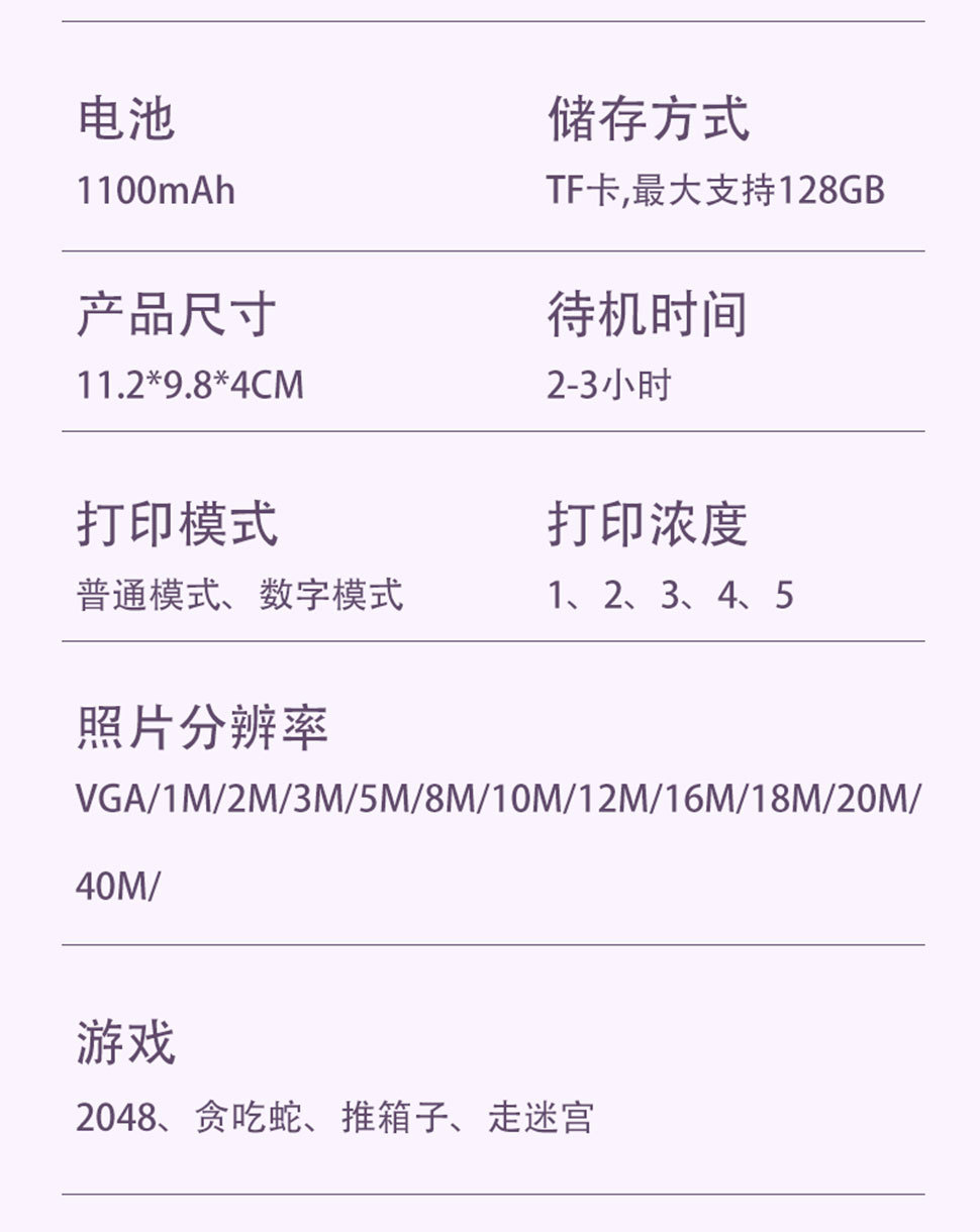 • Z13S 보라색 유니콘(인쇄 가능) + 인쇄용지 3롤 + 색펜