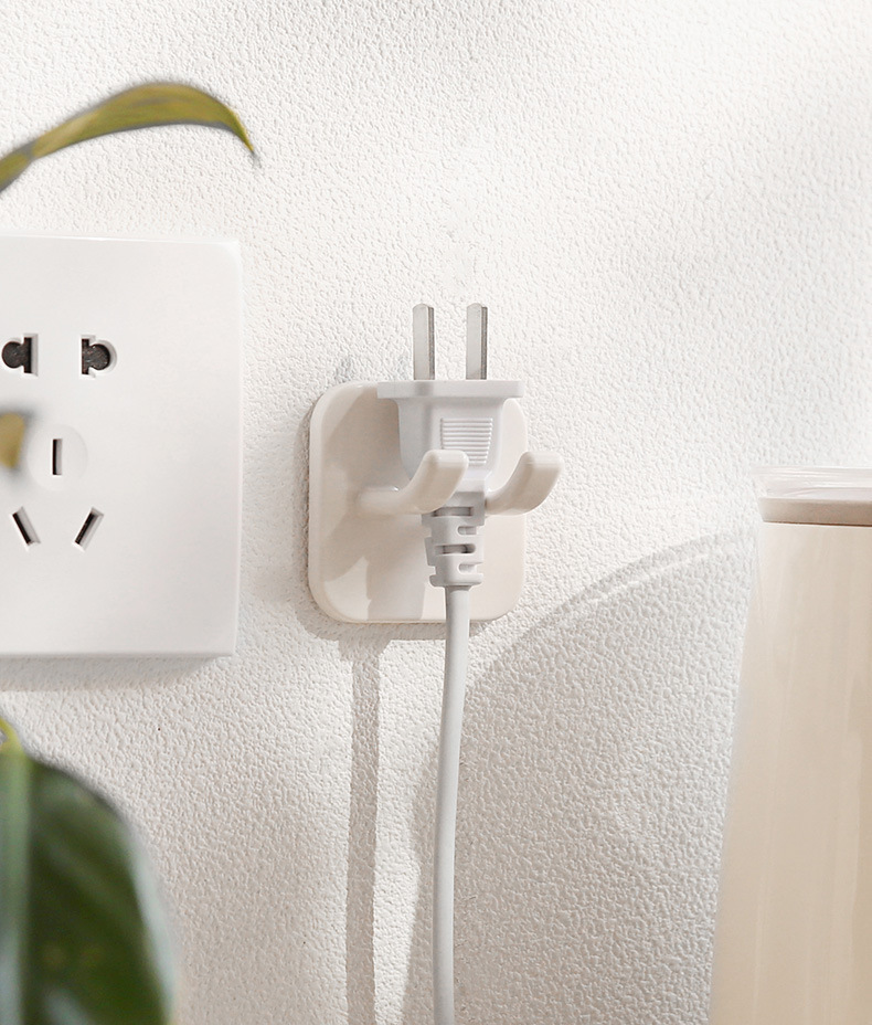 파워 플러그 후크 비 천공 원활한 끈적 끈적한 후크 스레드 스토리지 랙 벽걸이 더블 후크 소켓 면도 블레이드 홀더