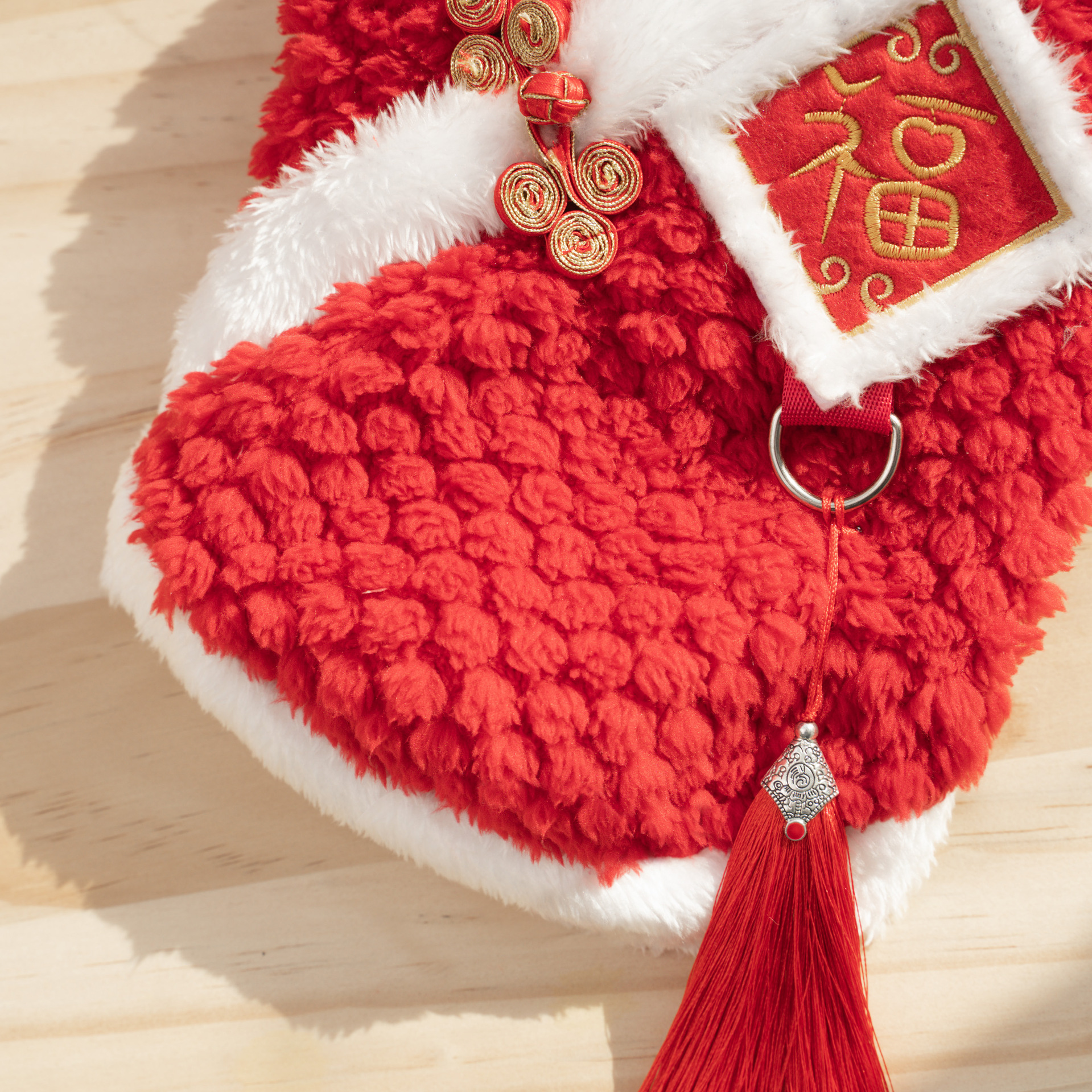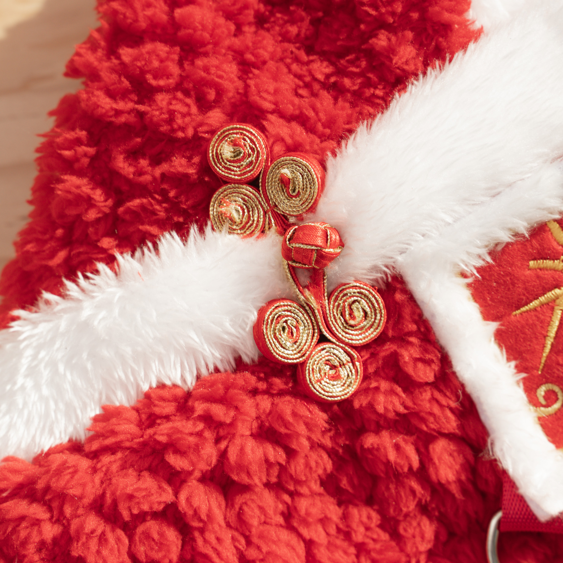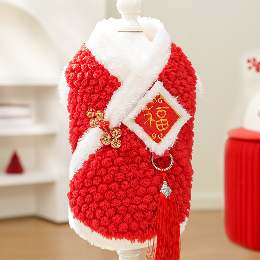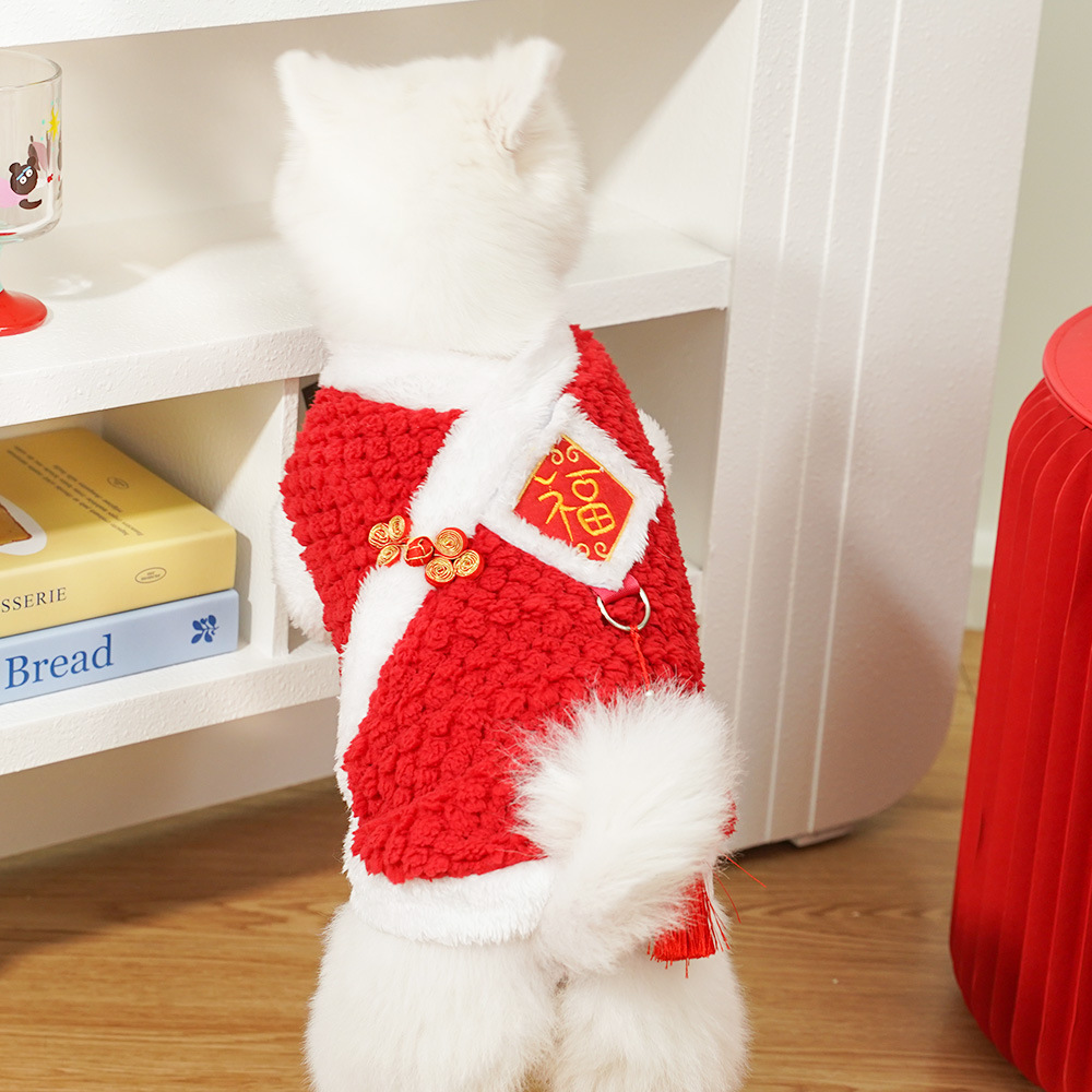 새해 국가 스타일 자수 플러스 벨벳 따뜻한 애완견과 고양이 옷 테디 플러시 개 당나라 정장 고양이 용품 의류