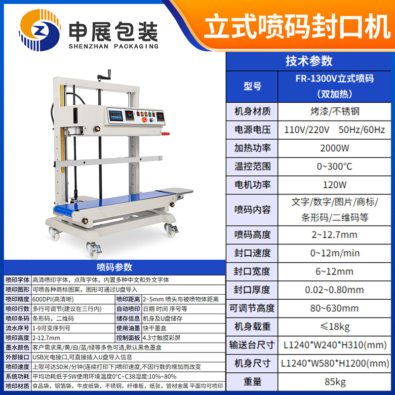 • FR-1300V 수직 잉크젯 이중 가열 밀봉 기계
