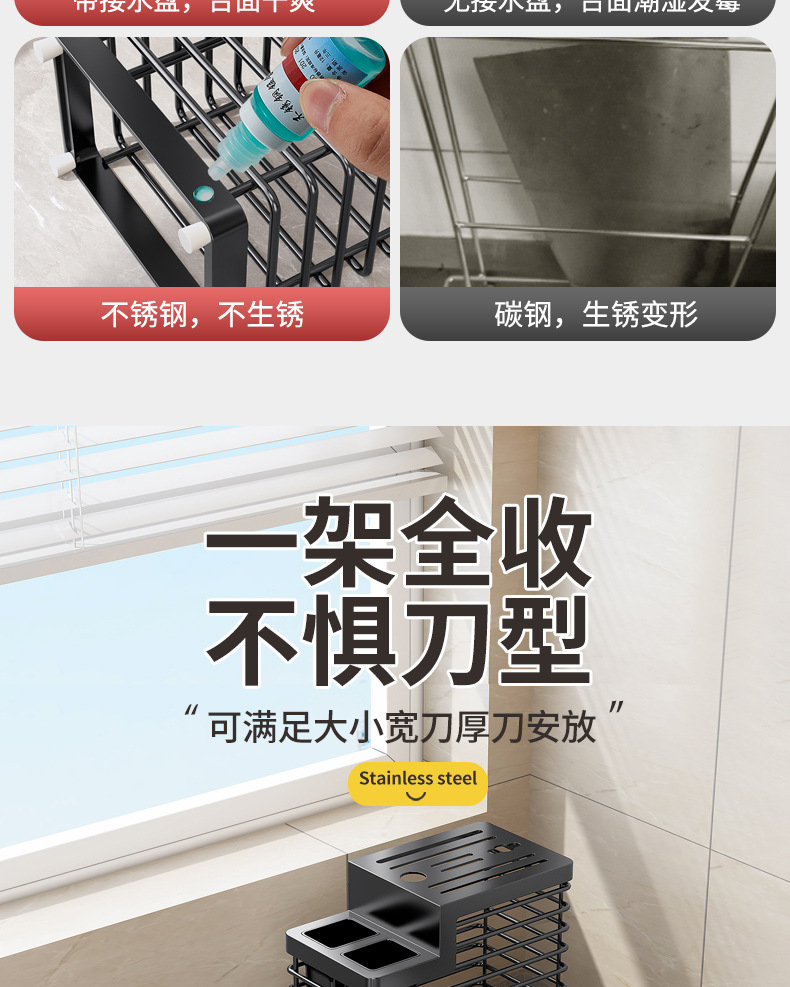 주방 스테인레스 스틸 다기능 젓가락 케이지 나이프 홀더 저장 랙 도마 공급 칼 커팅 보드 주방 칼 보관