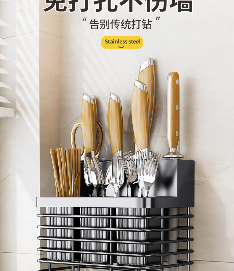 주방 스테인레스 스틸 다기능 젓가락 케이지 나이프 홀더 저장 랙 도마 공급 칼 커팅 보드 주방 칼 보관스토어 가기