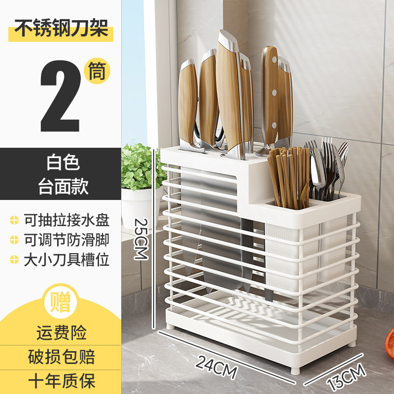 • 더블 배럴 칼 홀더-화이트-조리대 모델