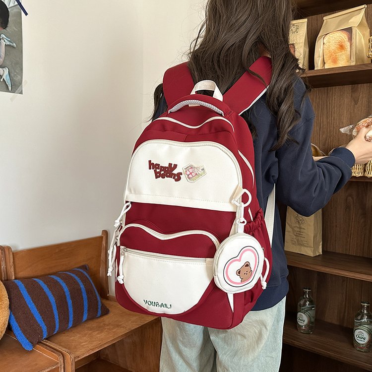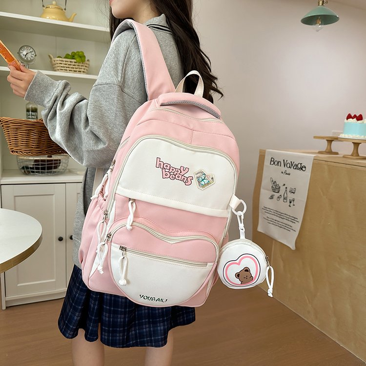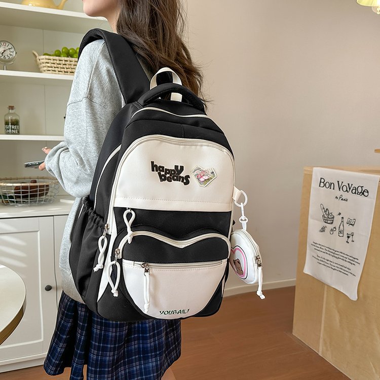 새로운 일본 스타일 심플하고 높은 외관 Instagram 스타일 대비 모든 색상 대용량 스쿨 백 중학교 고등학교 학생 배낭스토어 가기