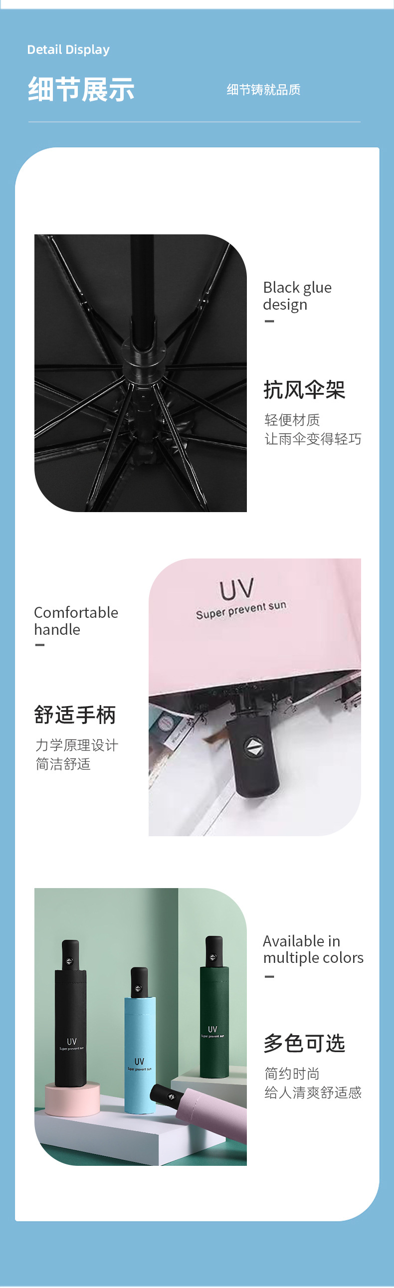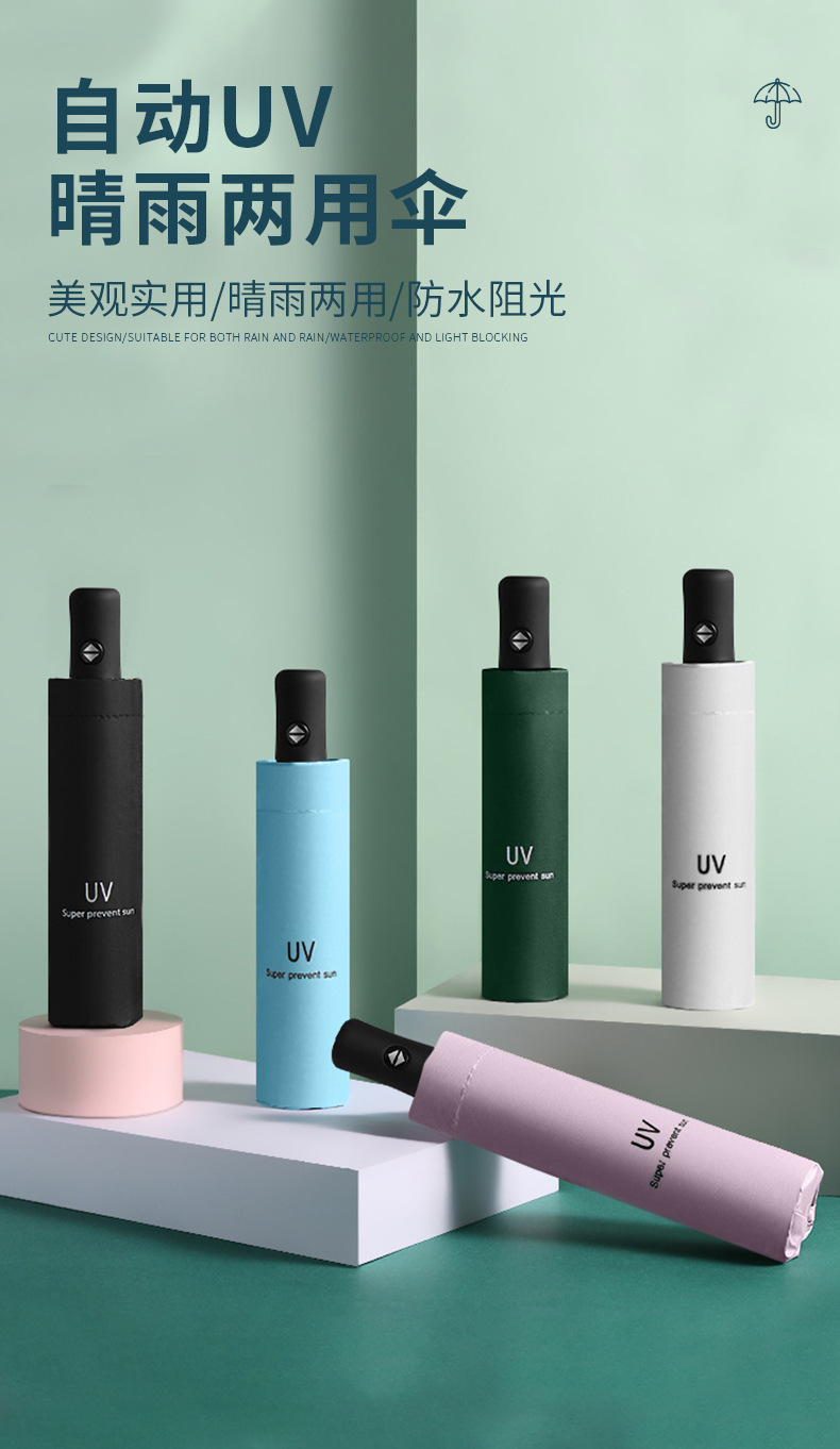 자동 UV 우산 검은 접착제 선 스크린 태양 우산 접히는 이중 사용 맑고 비오는 광고 선물 자동 우산스토어 가기