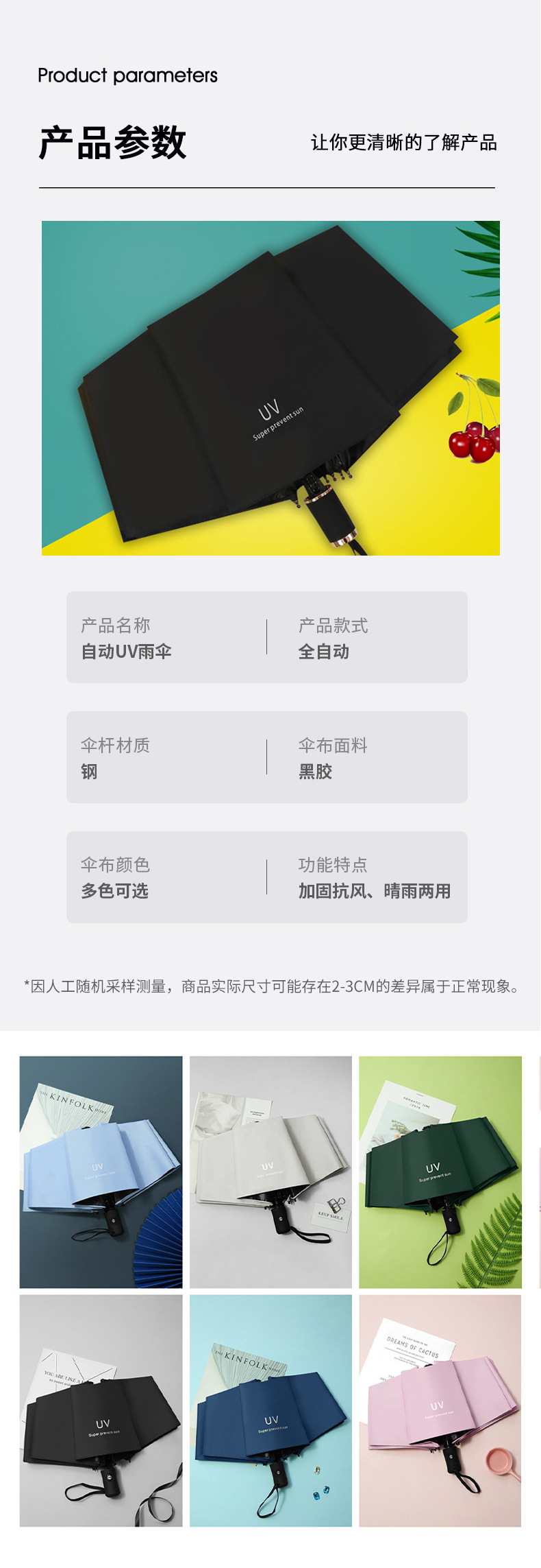 자동 UV 우산 검은 접착제 선 스크린 태양 우산 접히는 이중 사용 맑고 비오는 광고 선물 자동 우산