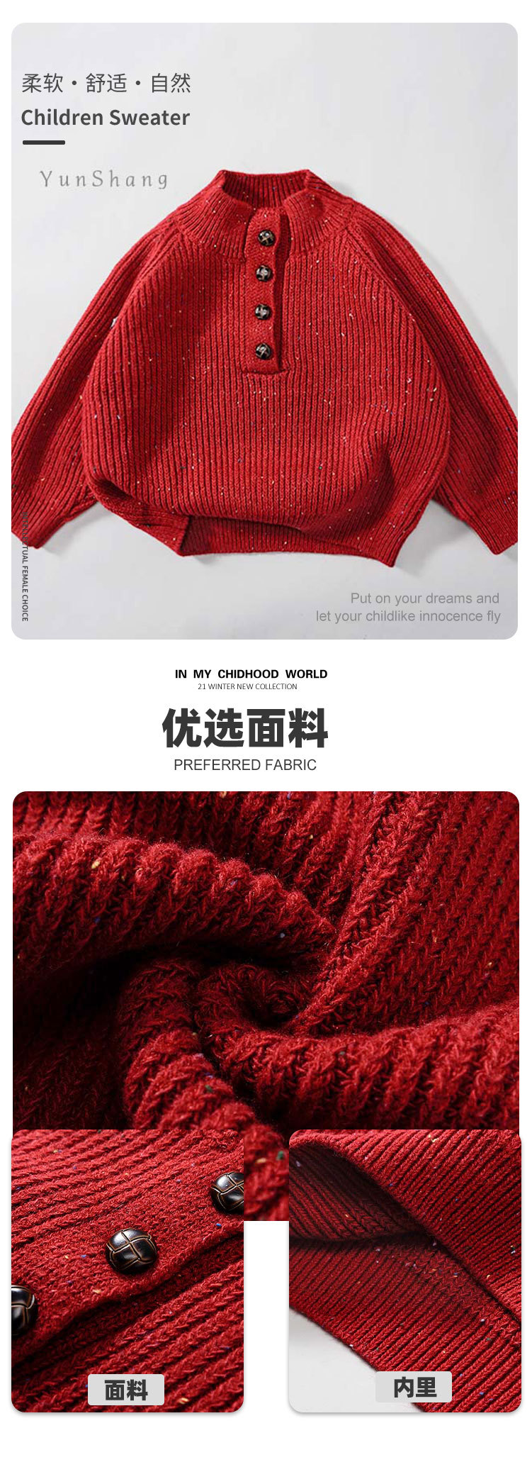 가을과 겨울 한국의 새 아동복 어린이 컬러 포인트 니트 셔츠 새해 크리스마스 붉은 소녀의 스웨터 풀오버 탑