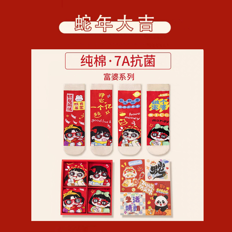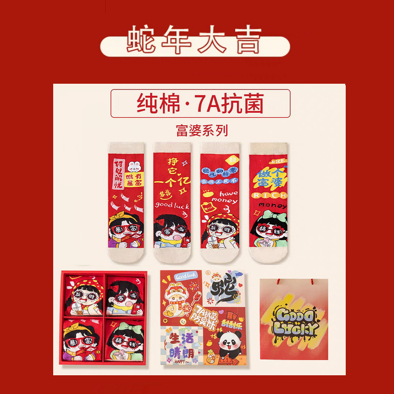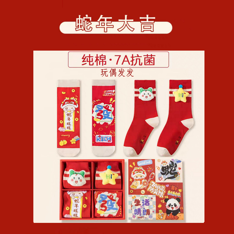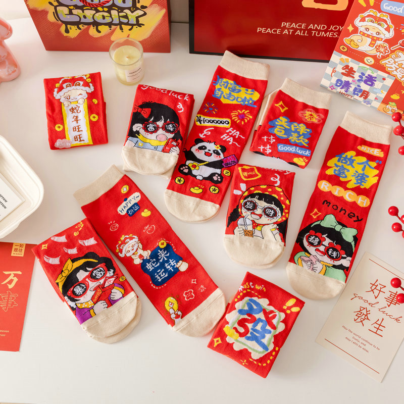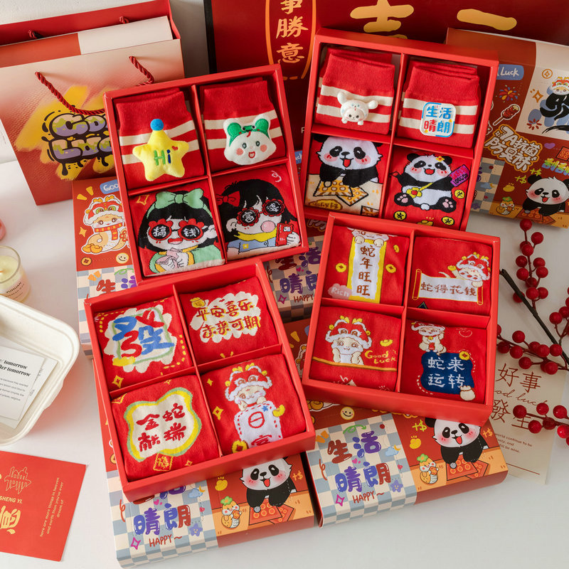 2025 년 새해 빨간 양말 뱀 조인트 선물 상자 겨울 남녀 용 코튼 레드 양말 도매스토어 가기