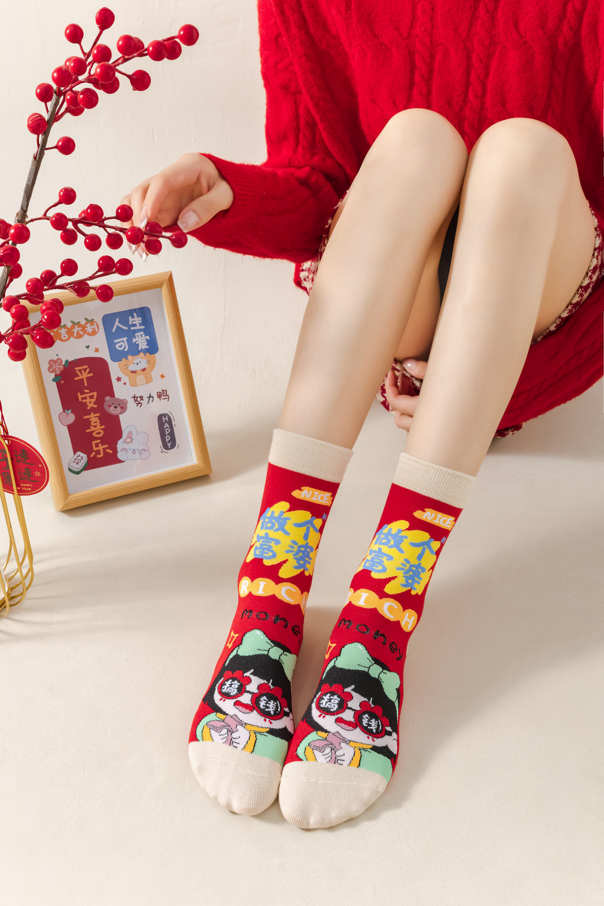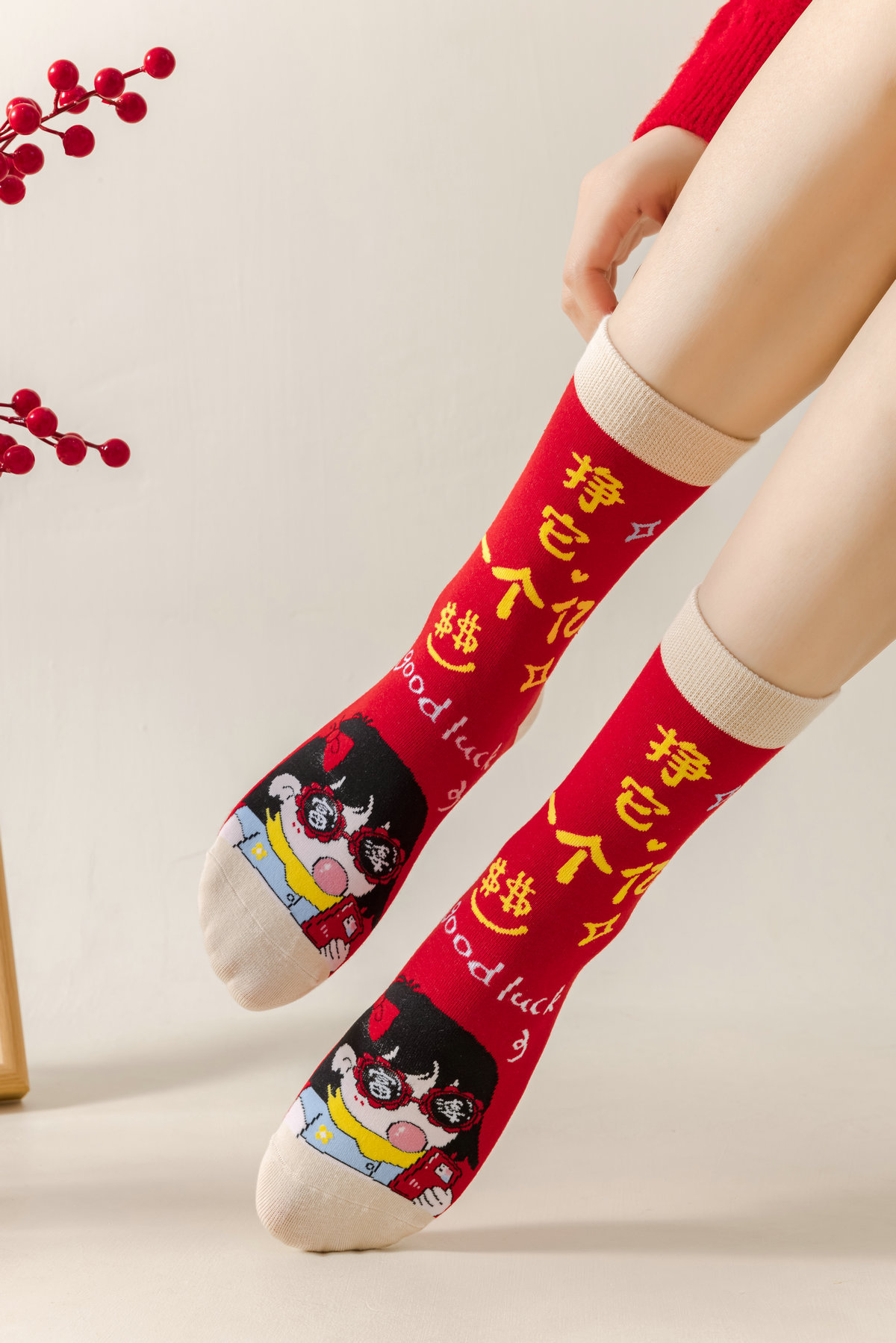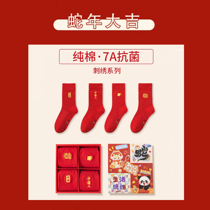 2025 년 새해 빨간 양말 뱀 조인트 선물 상자 겨울 남녀 용 코튼 레드 양말 도매스토어 가기