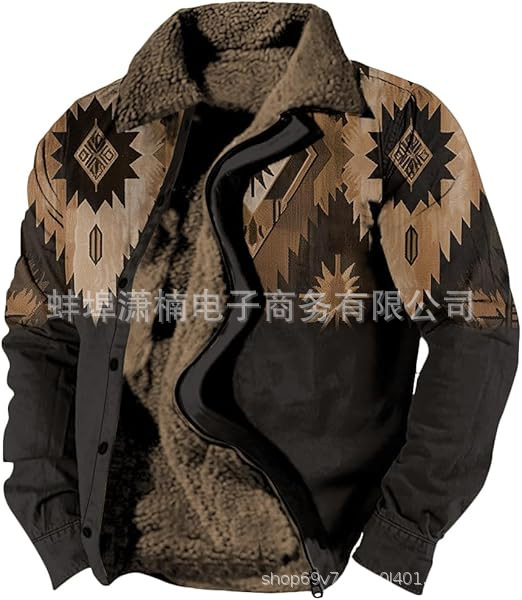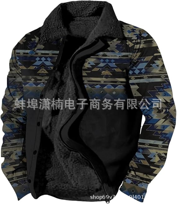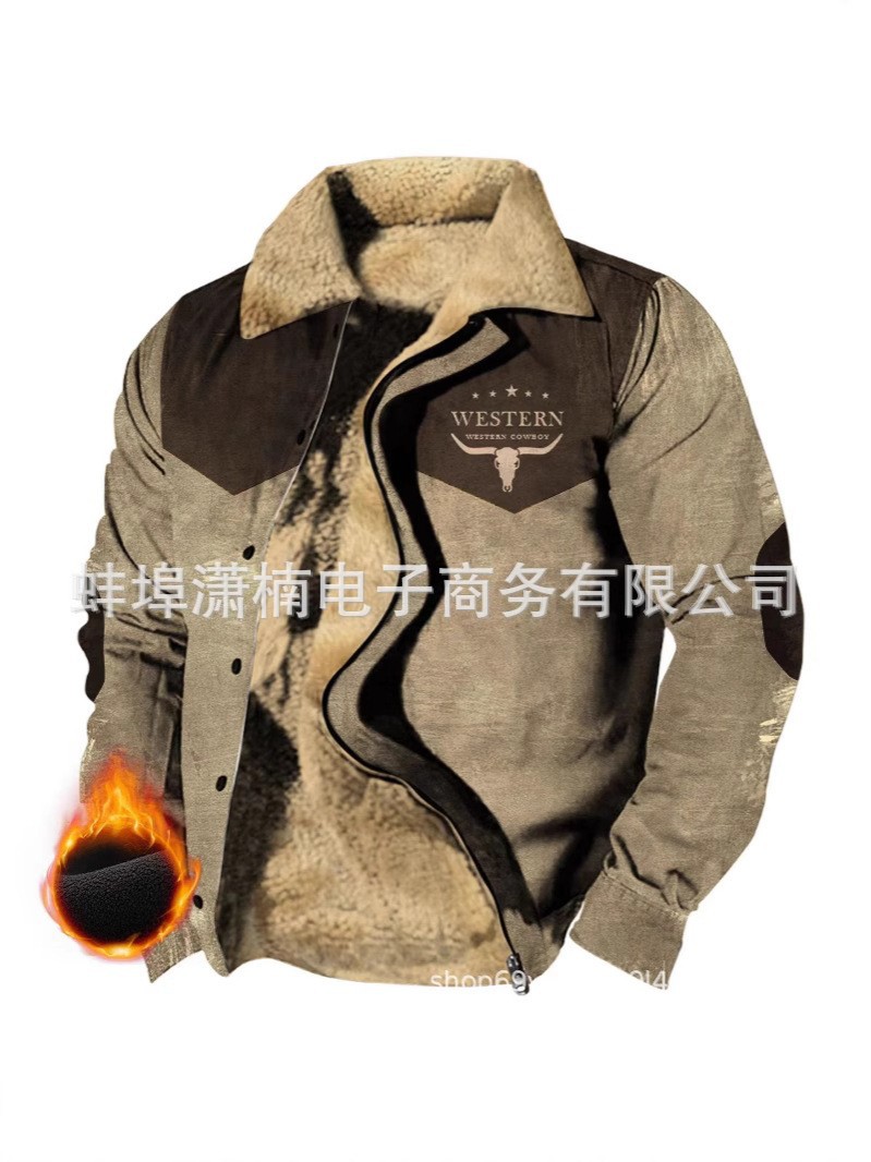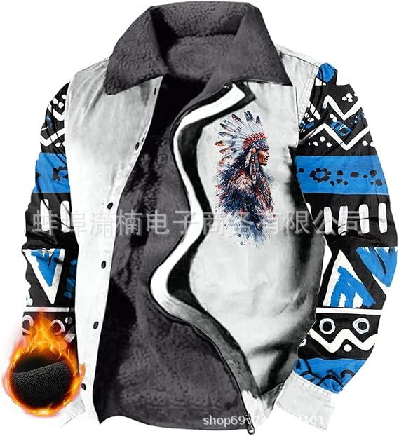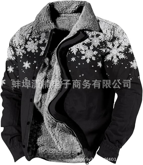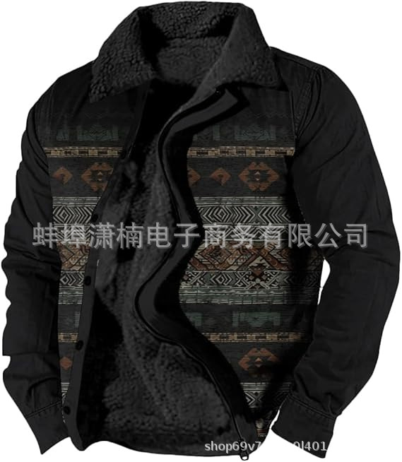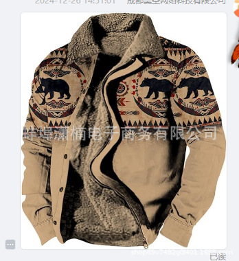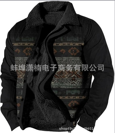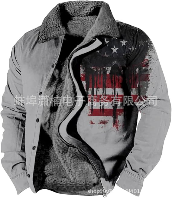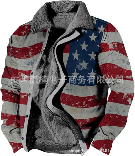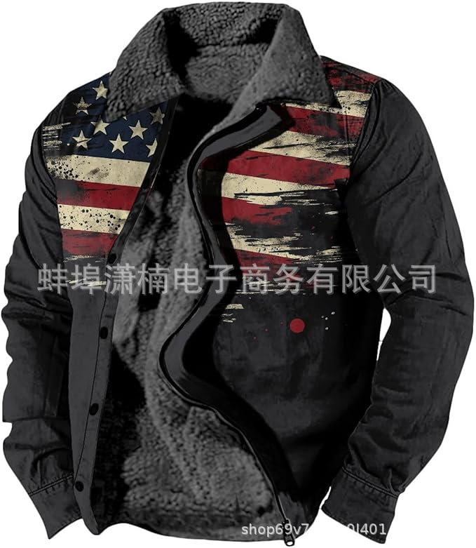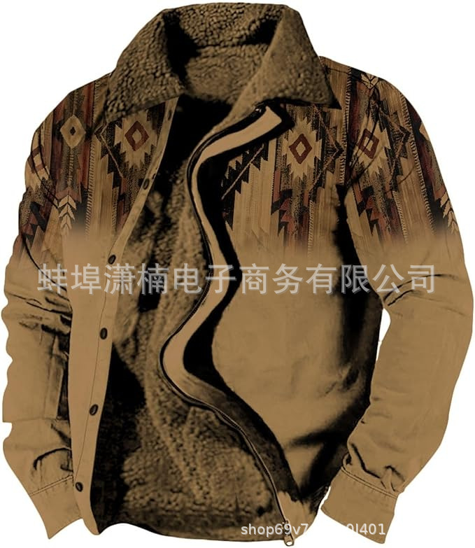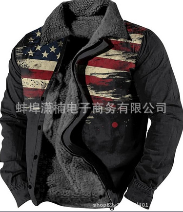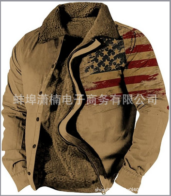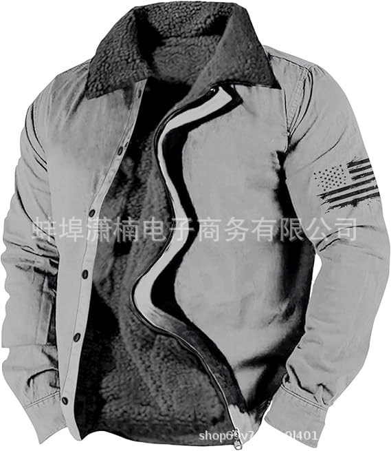 2025 국경 간 재고 남성 두꺼운 사이드 솔기 슬립 포켓 캐주얼 인쇄 지퍼 느슨한 청소년 재킷 코트