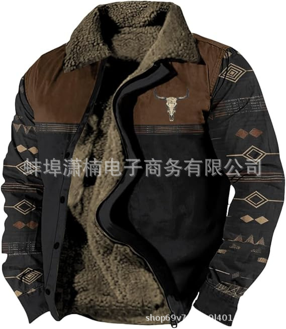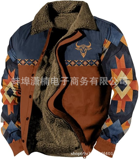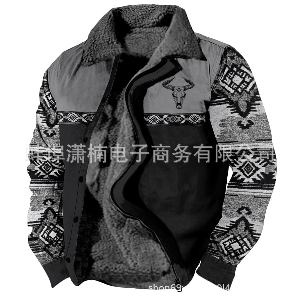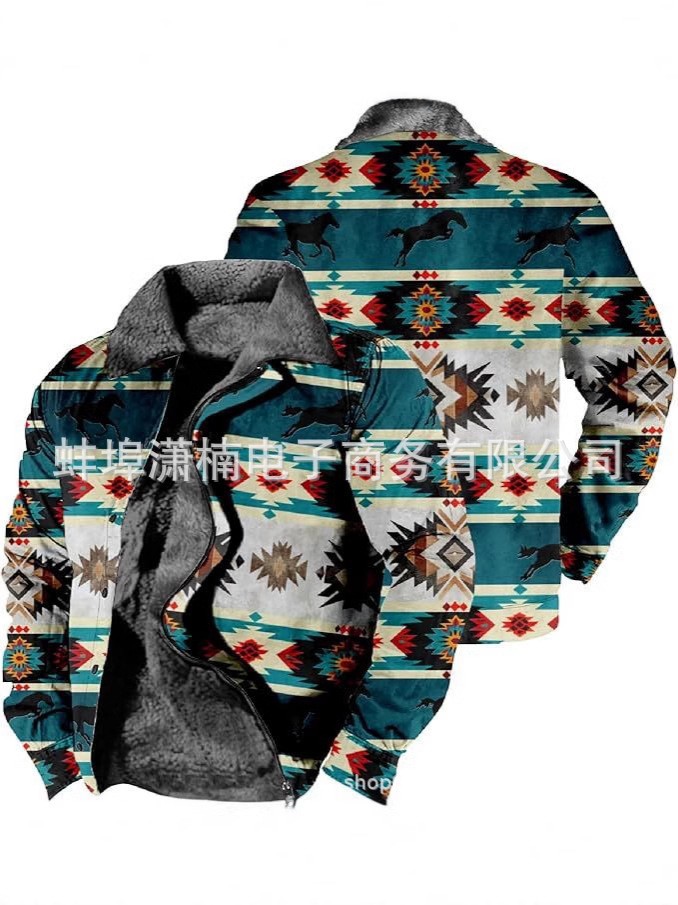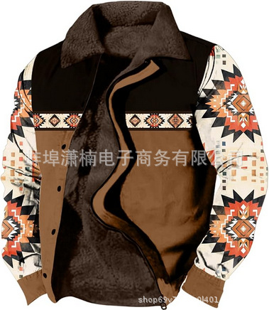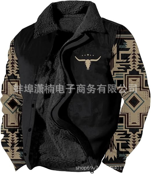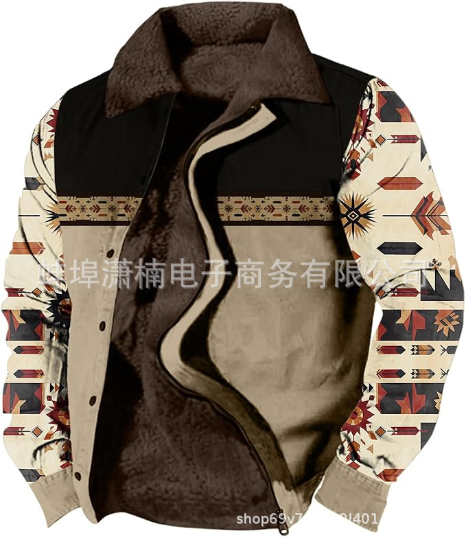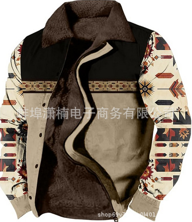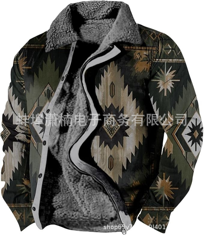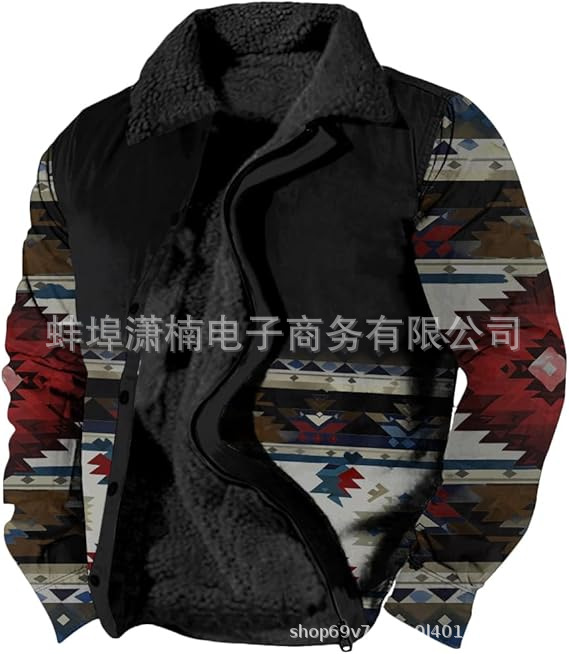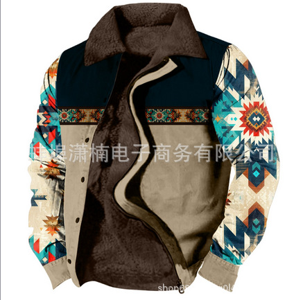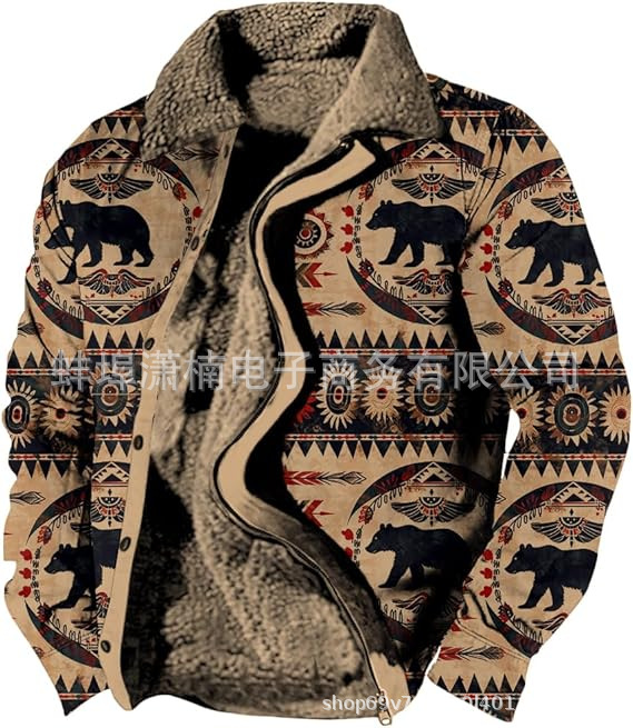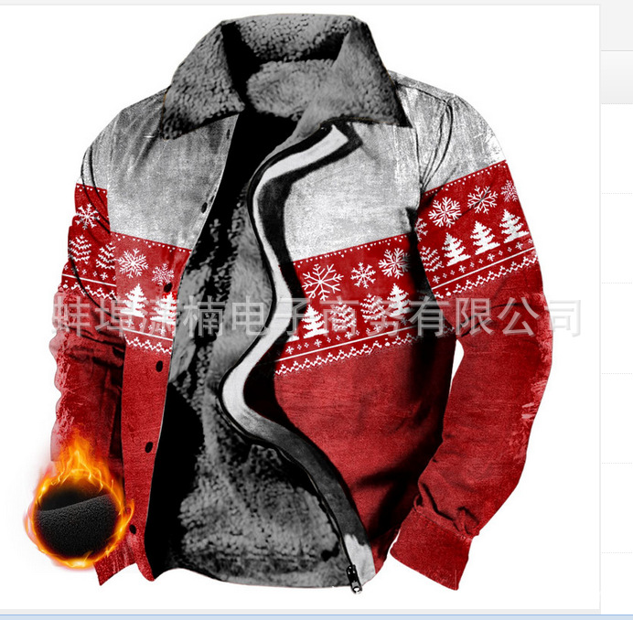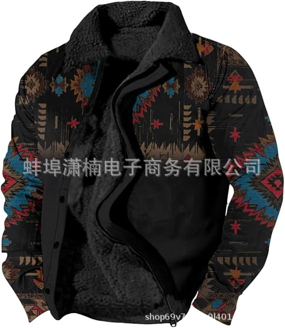 2025 국경 간 재고 남성 두꺼운 사이드 솔기 슬립 포켓 캐주얼 인쇄 지퍼 느슨한 청소년 재킷 코트