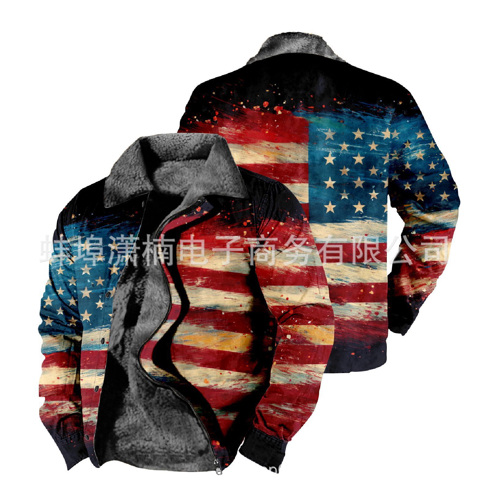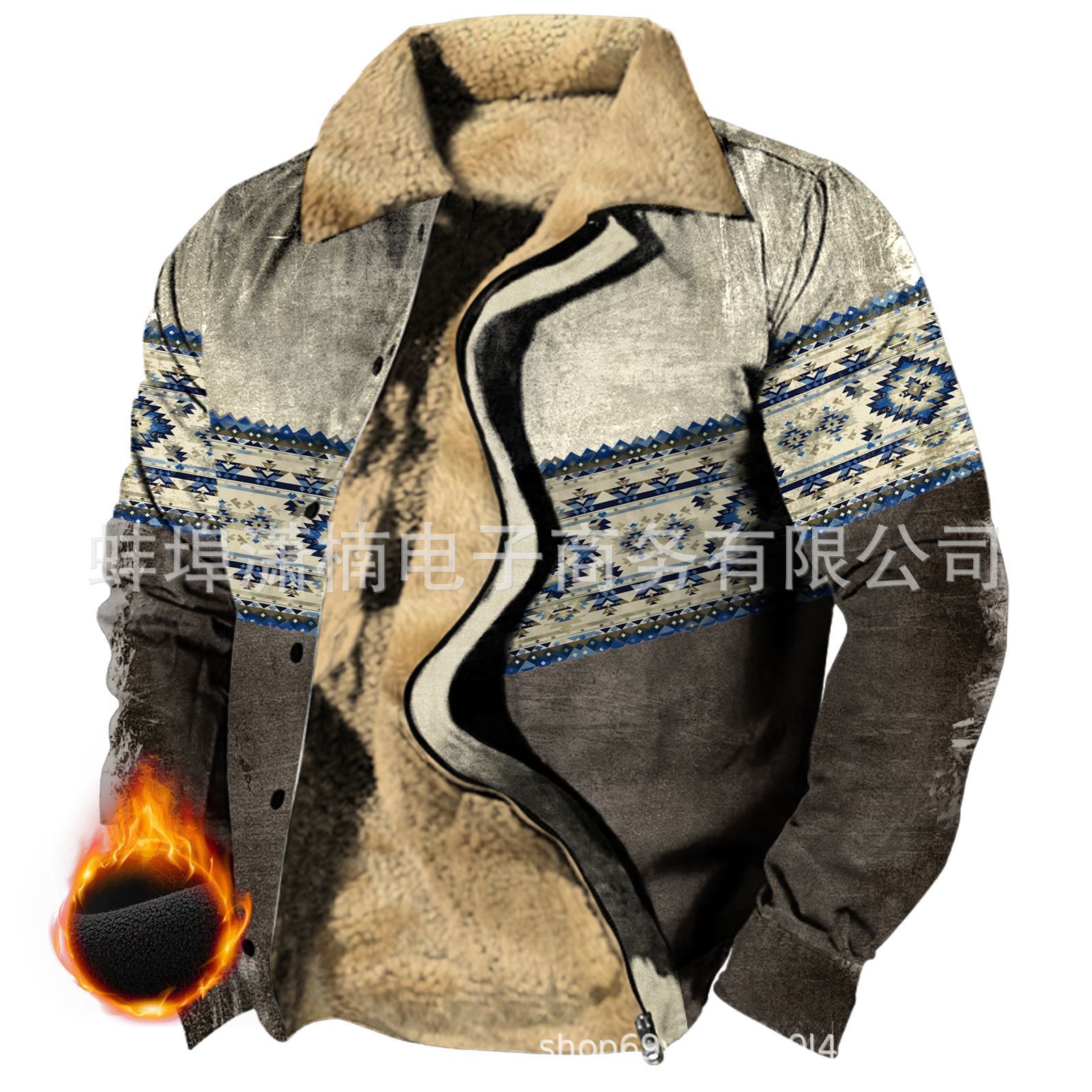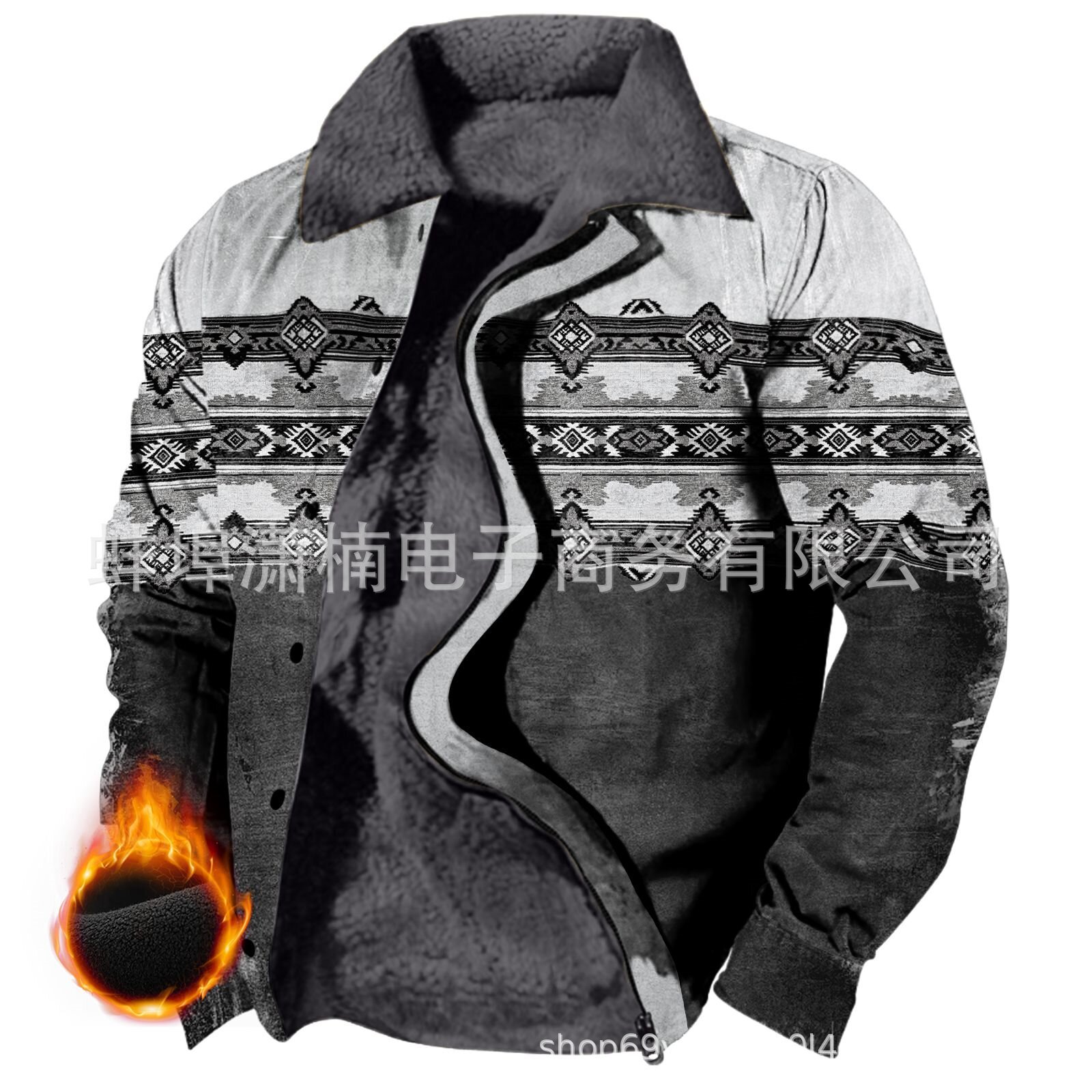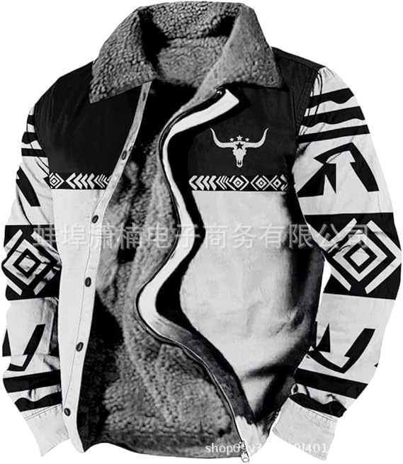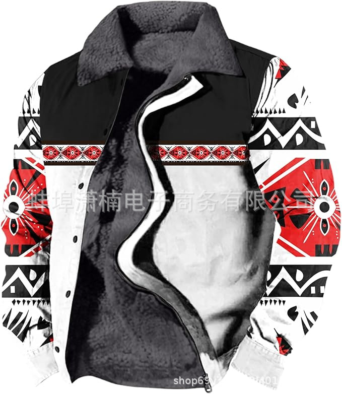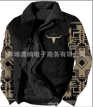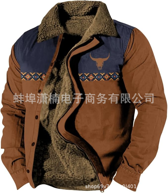 2025 국경 간 재고 남성 두꺼운 사이드 솔기 슬립 포켓 캐주얼 인쇄 지퍼 느슨한 청소년 재킷 코트