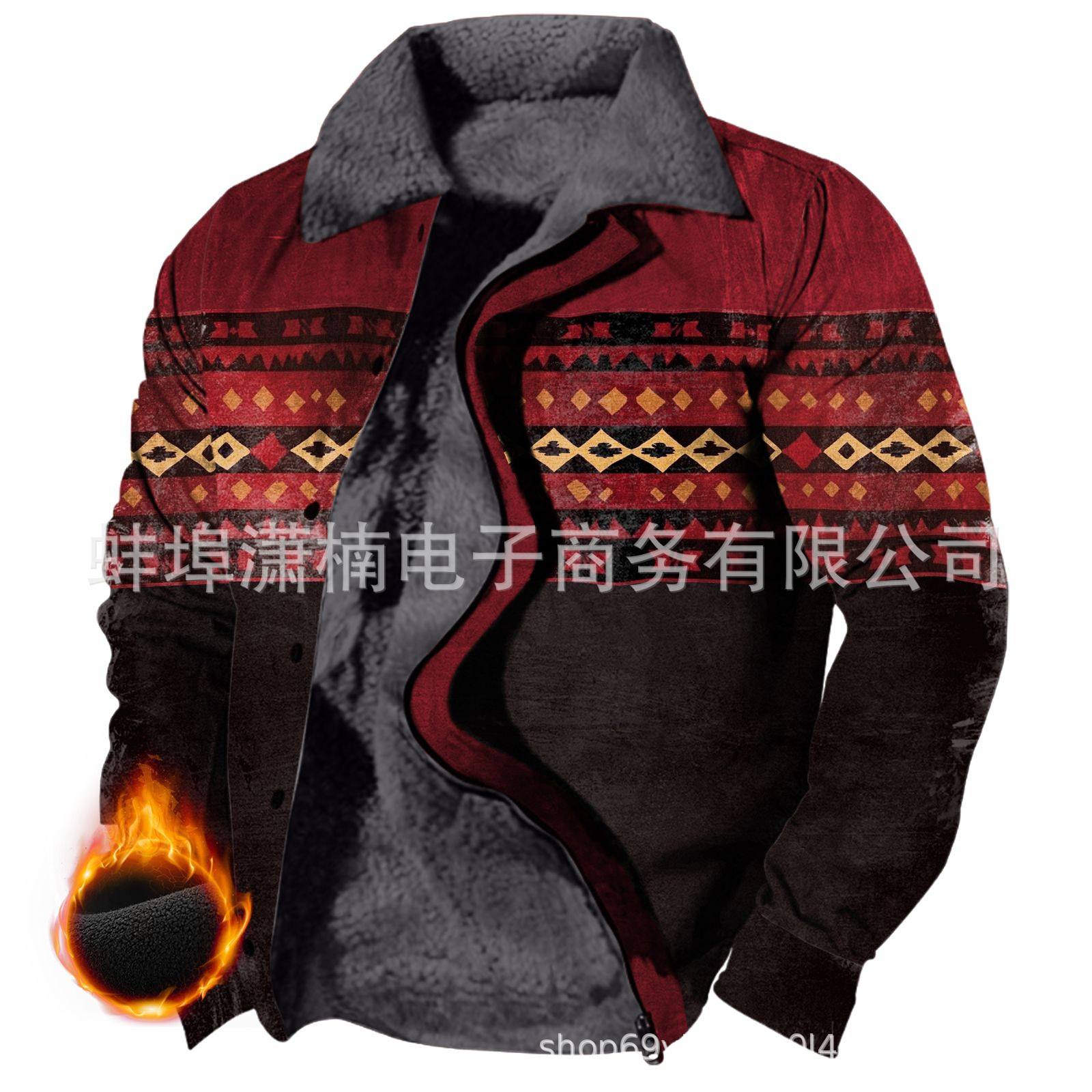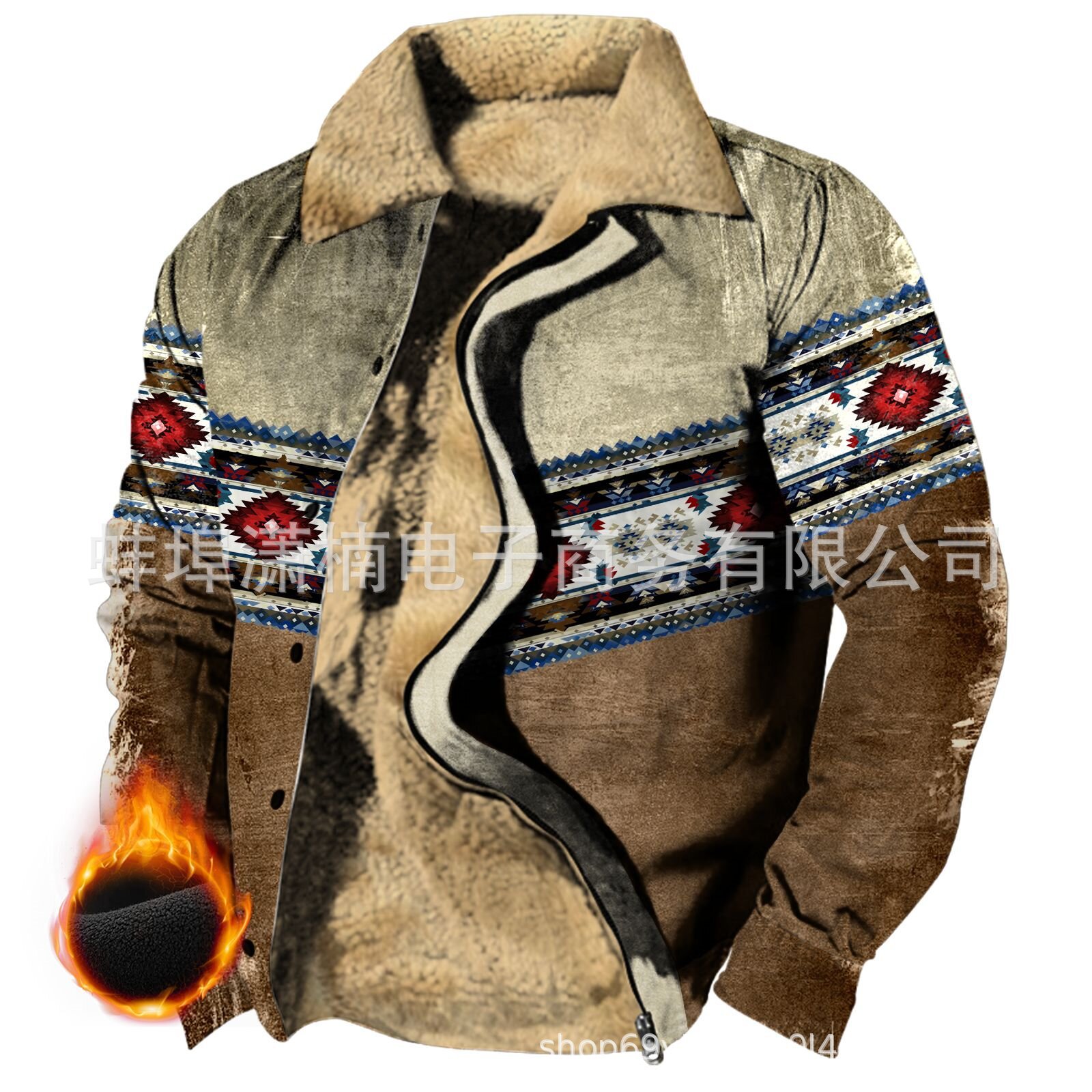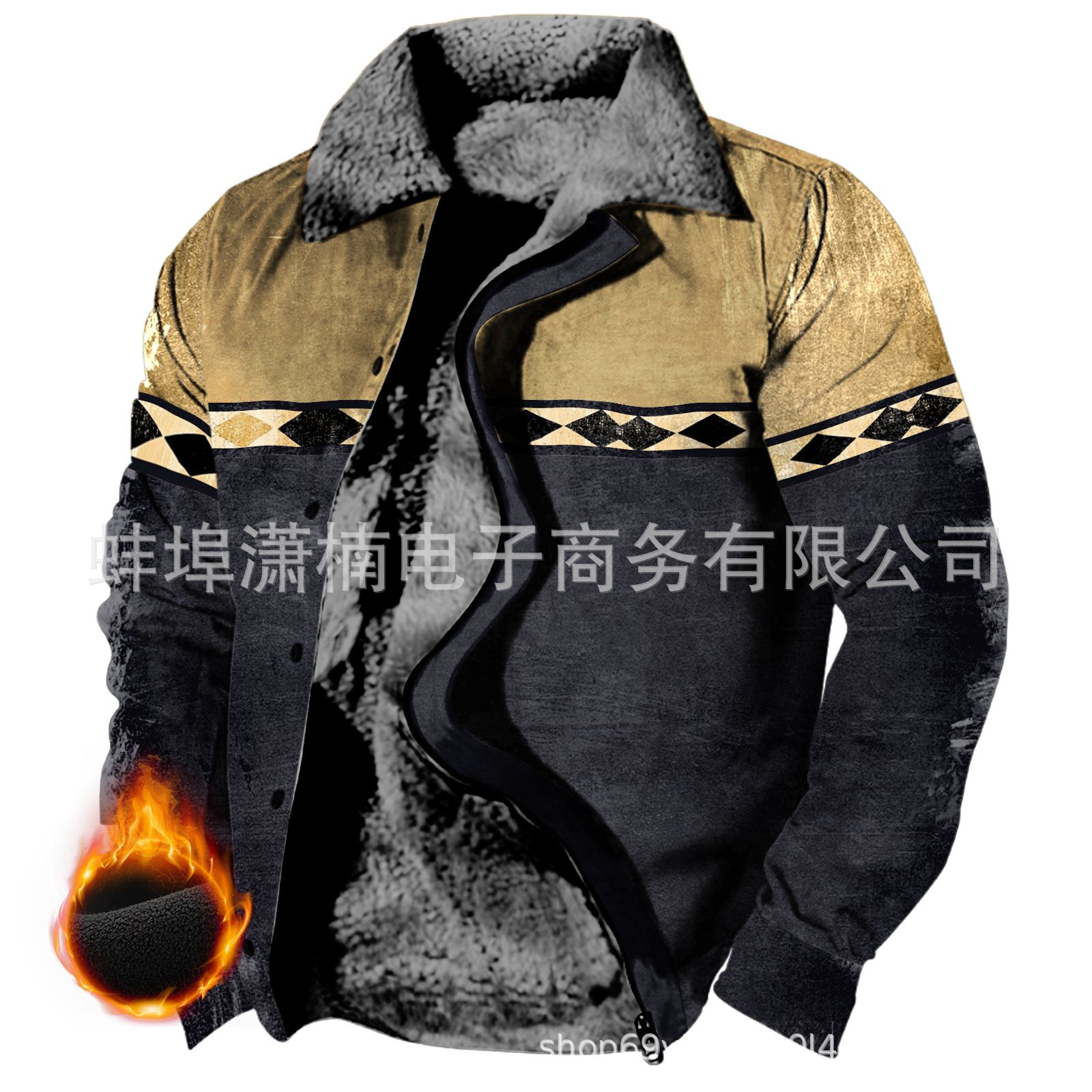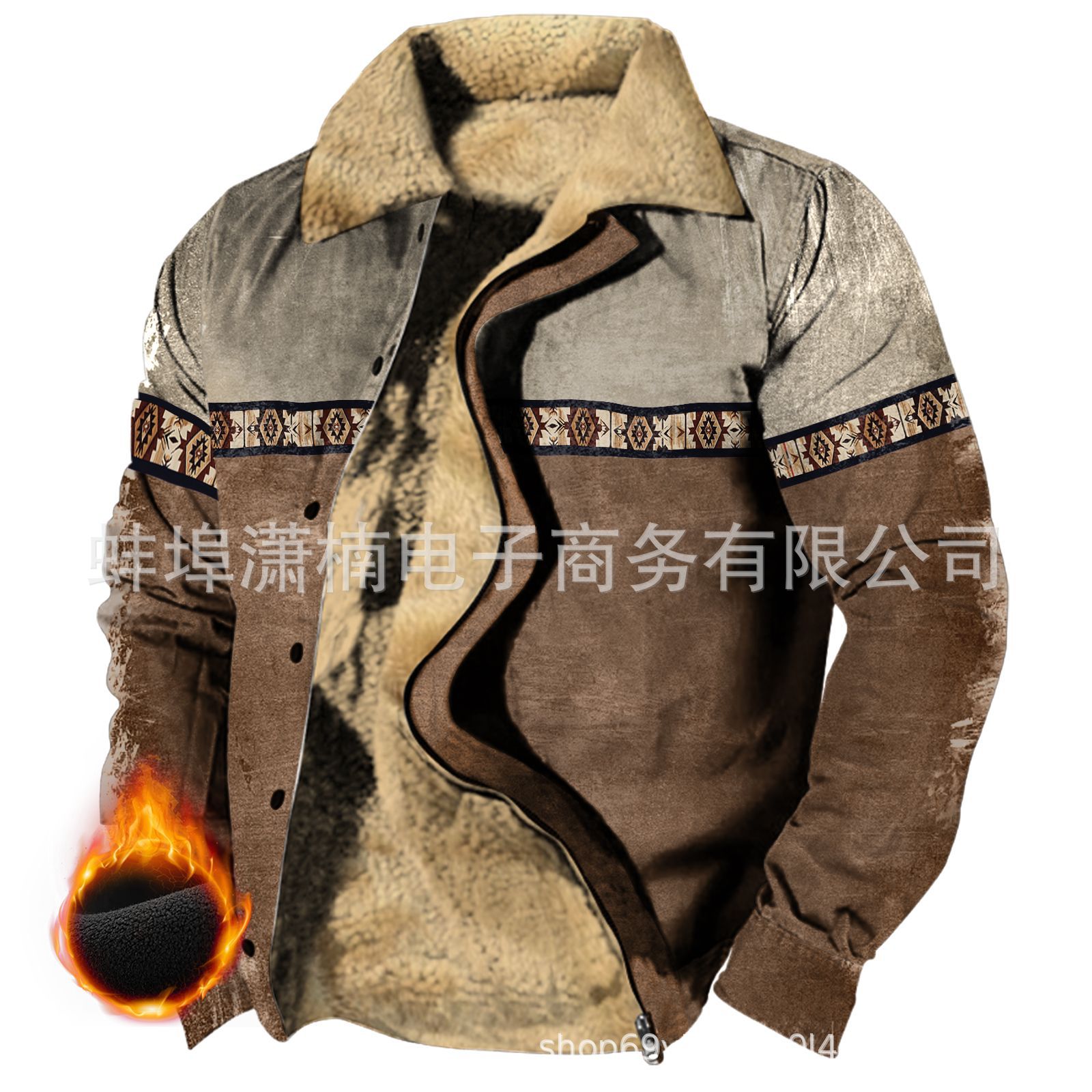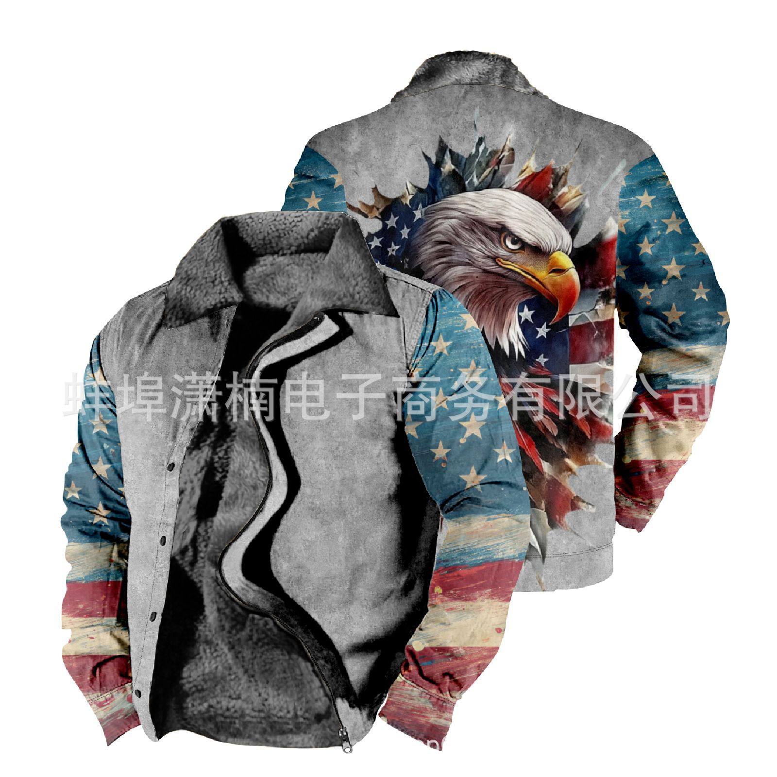 2025 국경 간 재고 남성 두꺼운 사이드 솔기 슬립 포켓 캐주얼 인쇄 지퍼 느슨한 청소년 재킷 코트