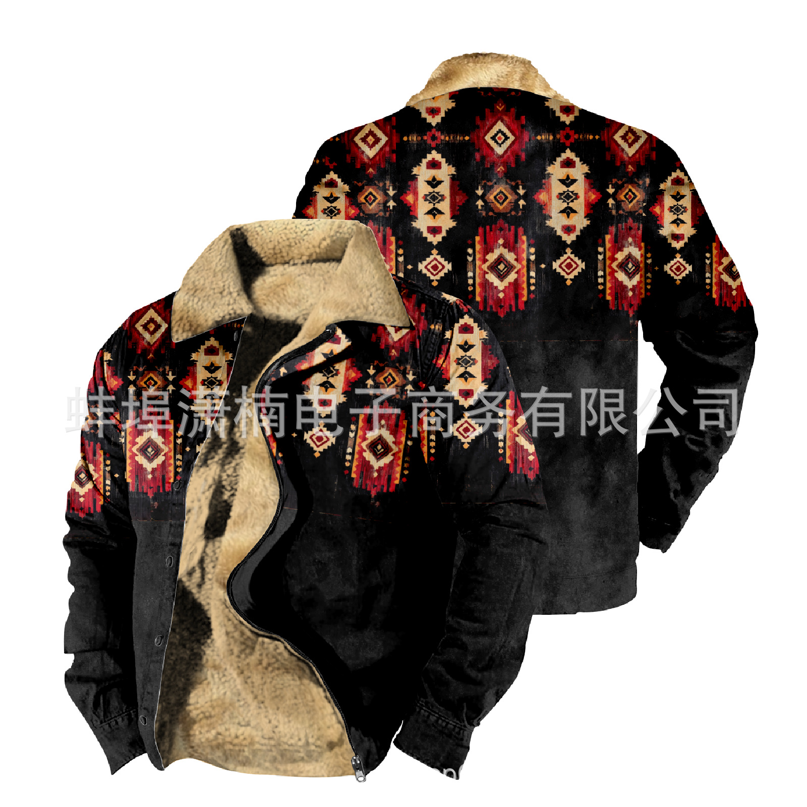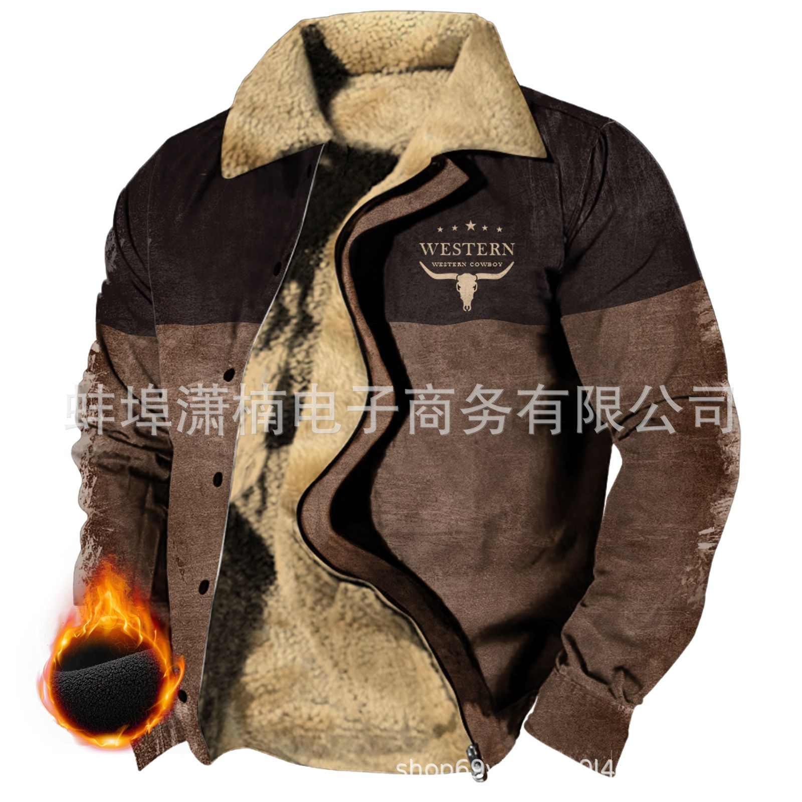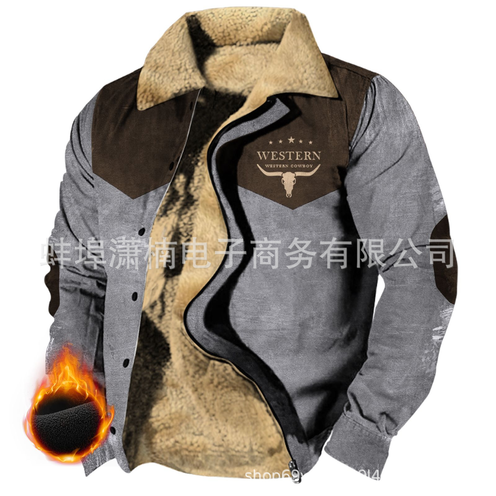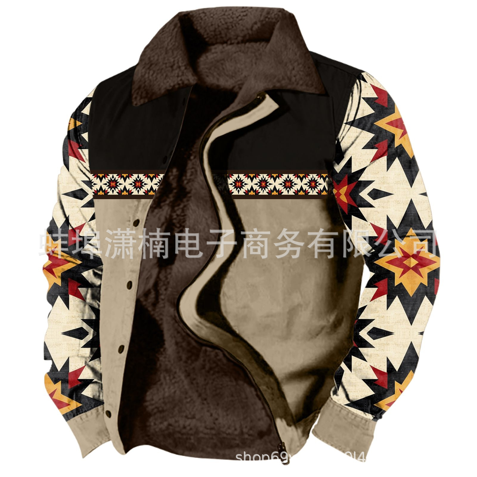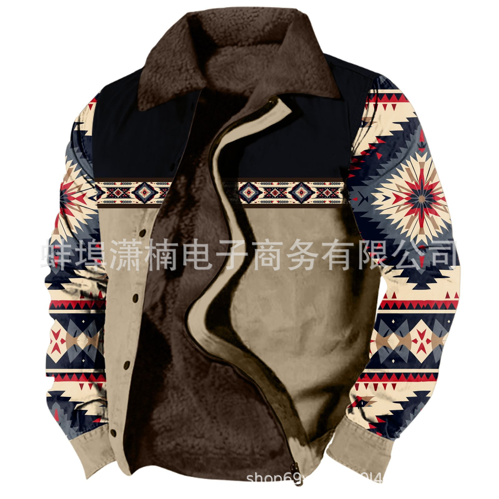 2025 국경 간 재고 남성 두꺼운 사이드 솔기 슬립 포켓 캐주얼 인쇄 지퍼 느슨한 청소년 재킷 코트