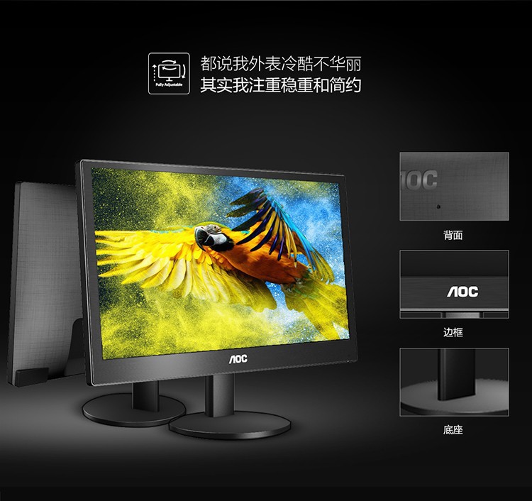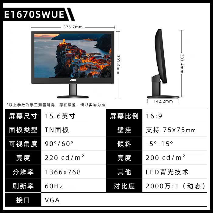 AOC 모니터 15.6 인치 LED 백라이트 와이드 스크린 컴퓨터 디스플레이 지원 벽 E1670SWUE스토어 가기