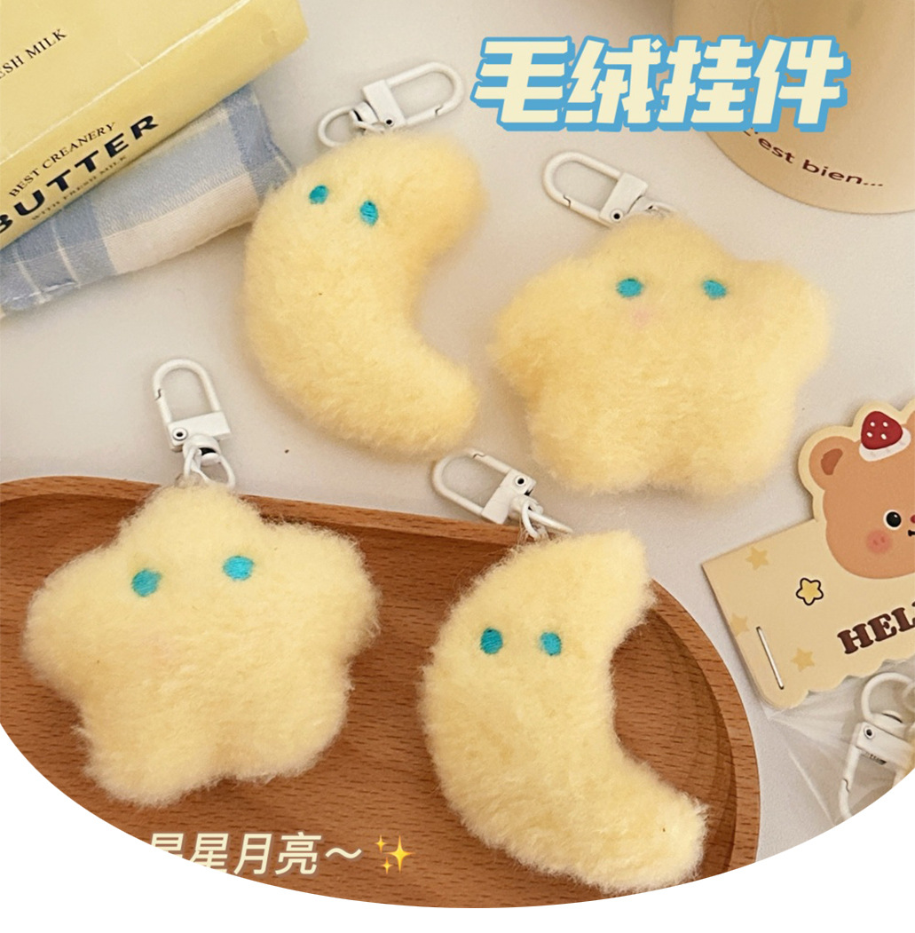 귀여운 푹신한 우유 노란색 스타 문 펜던트 소녀의 배낭 키 체인 올 매치 펜던트 여자 친구 선물
