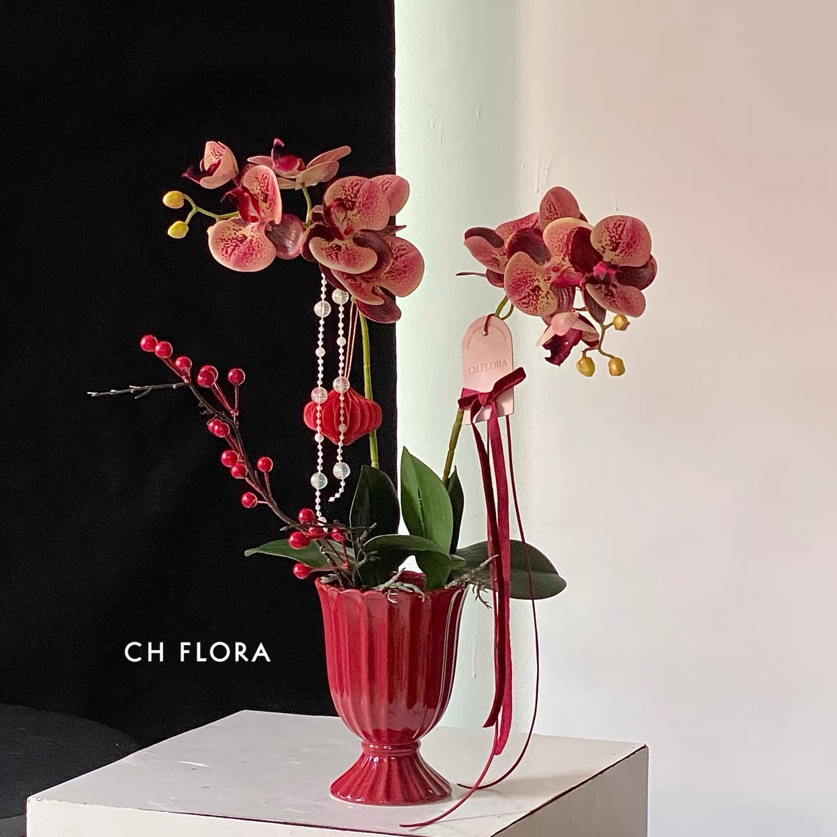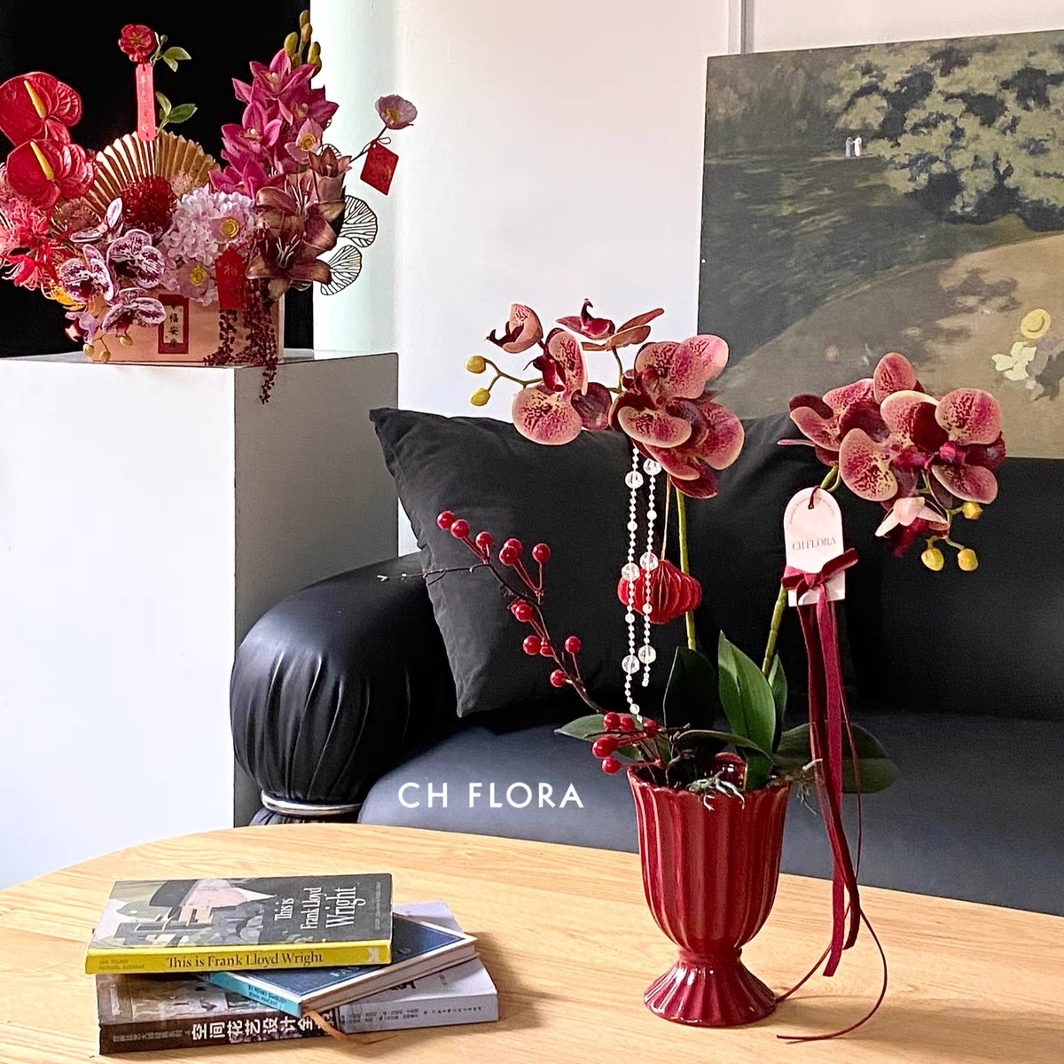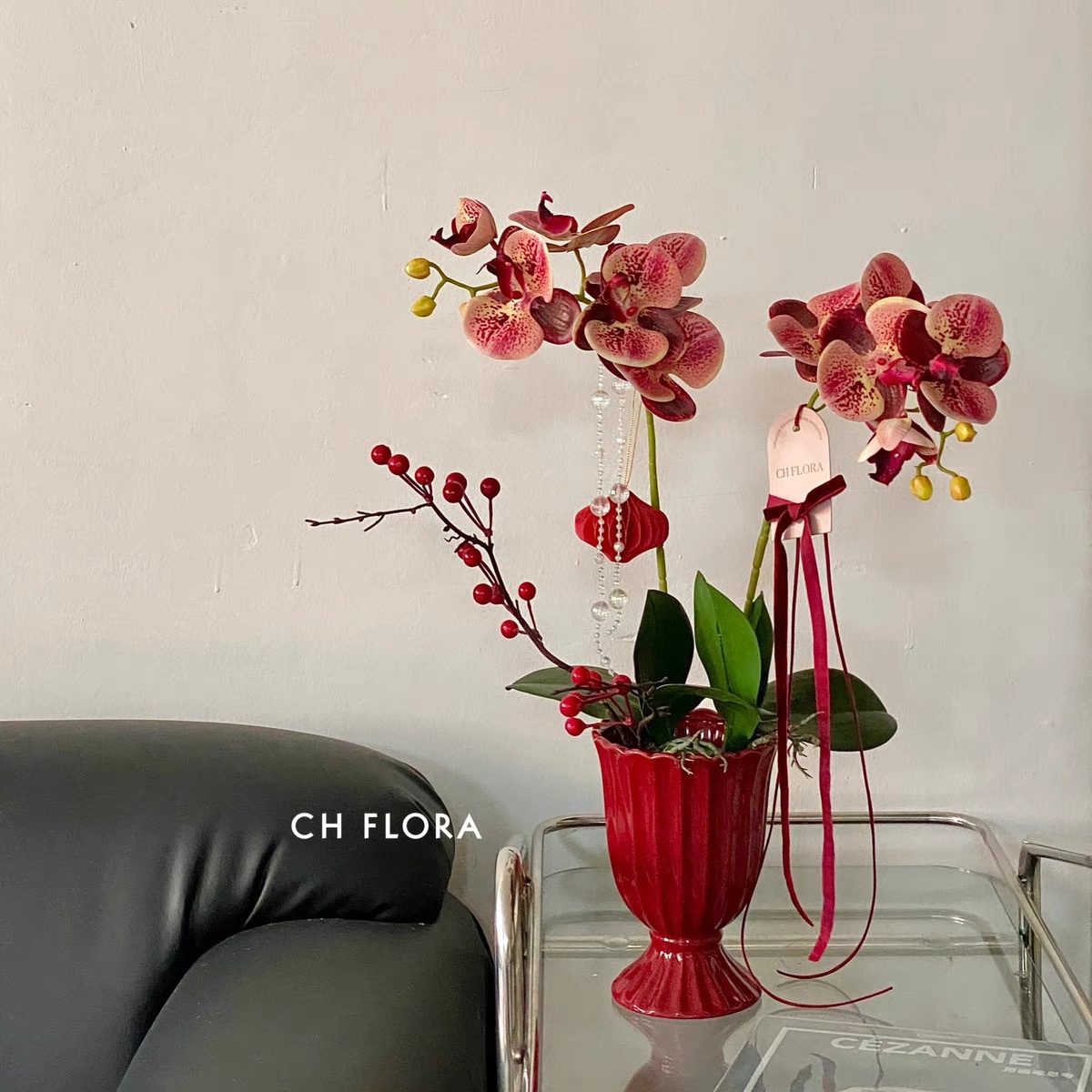 세라믹 꽃병 Phalaenopsis 고급 복고풍 꽃병 새해 꽃 설날 집 장식 웨딩 룸 집스토어 가기