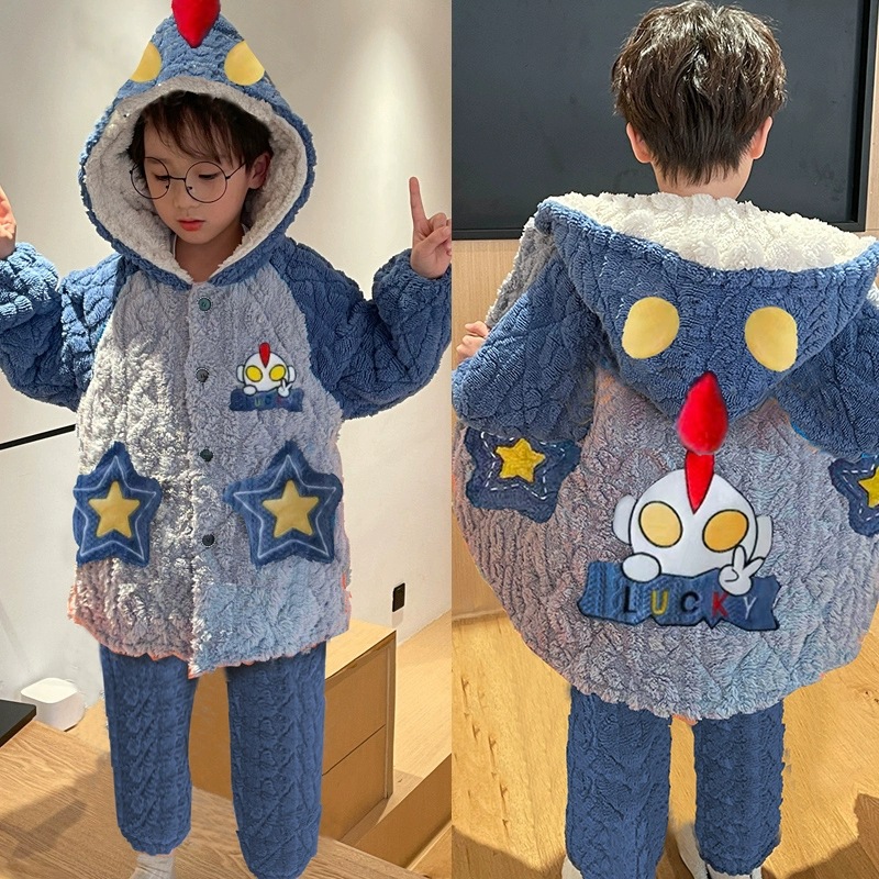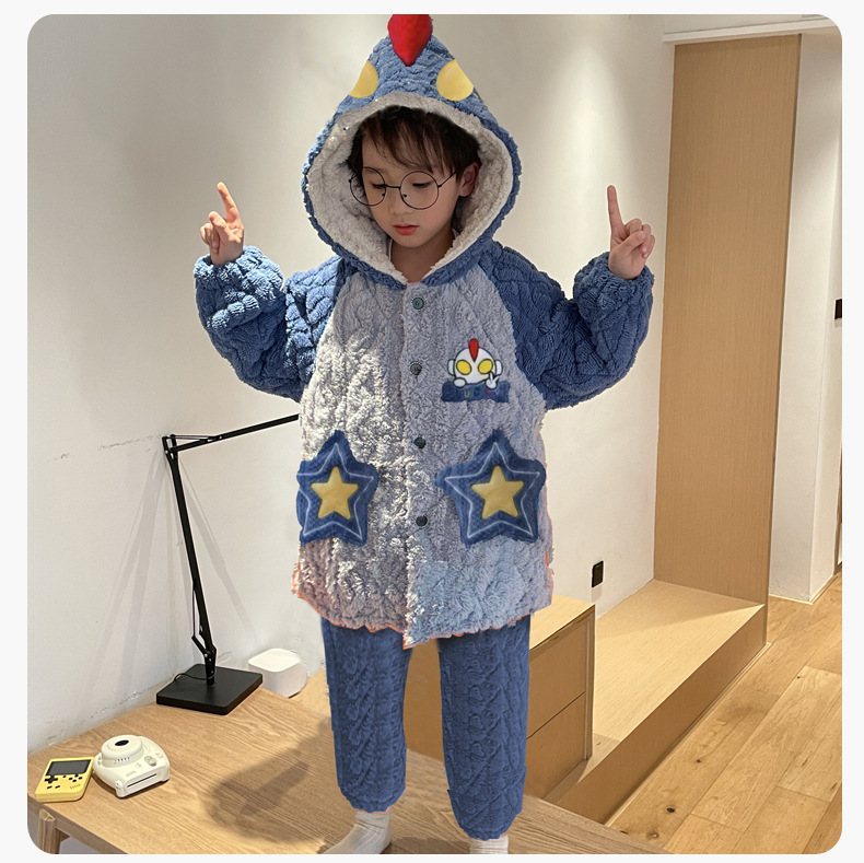 어린이 잠옷 소년과 어린 소년 가을과 겨울 3 층 면 두꺼운 새 기모 산호 양털 겨울스토어 가기