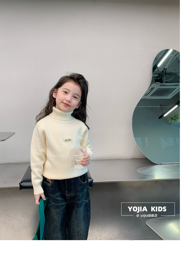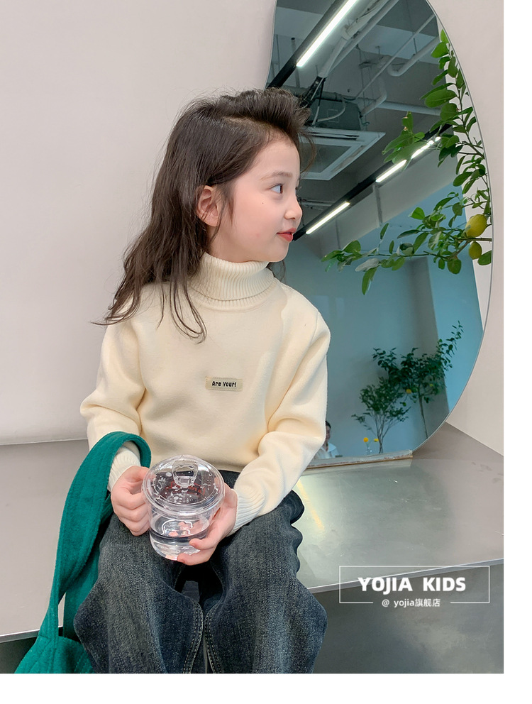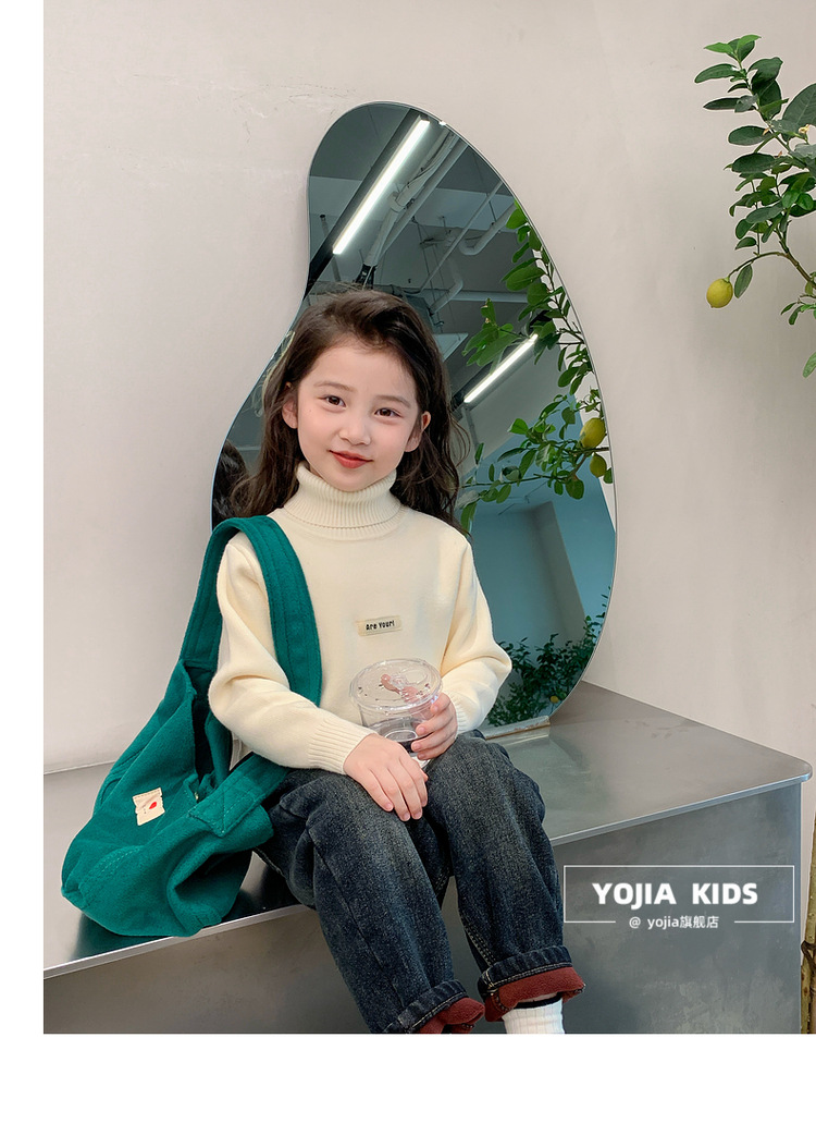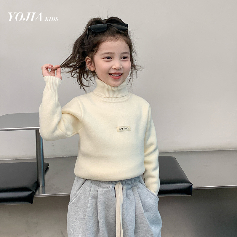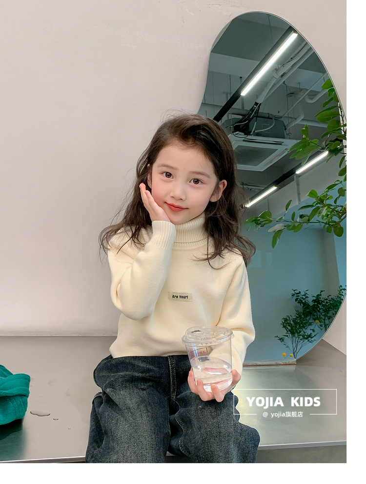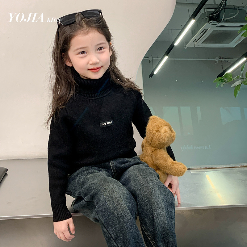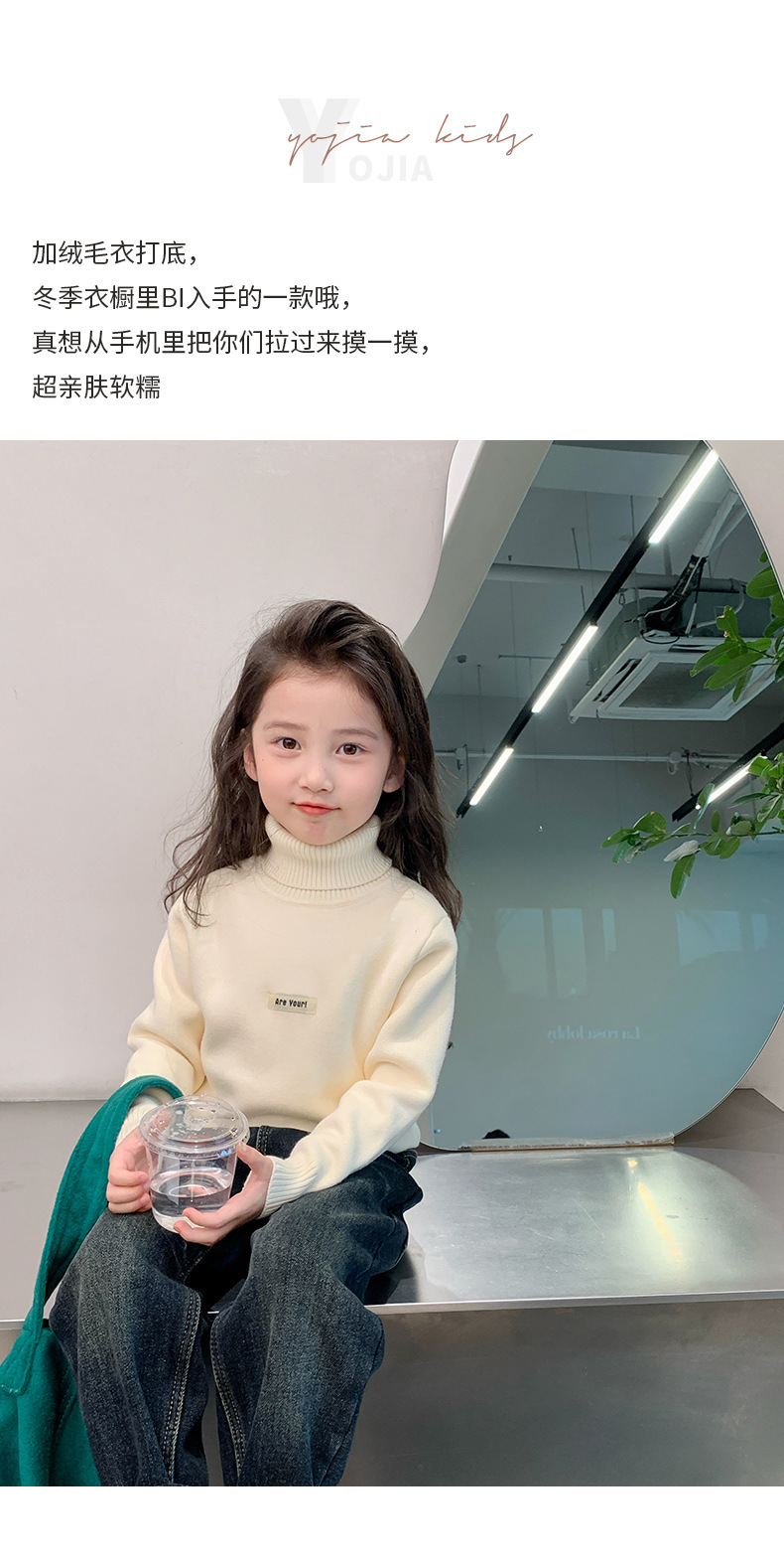 소녀의 스웨터베이스 셔츠 가을과 겨울 2023 새로운 스타일 소녀의 높은 칼라 니트 셔츠 겨울 두꺼운 어린이 탑스토어 가기