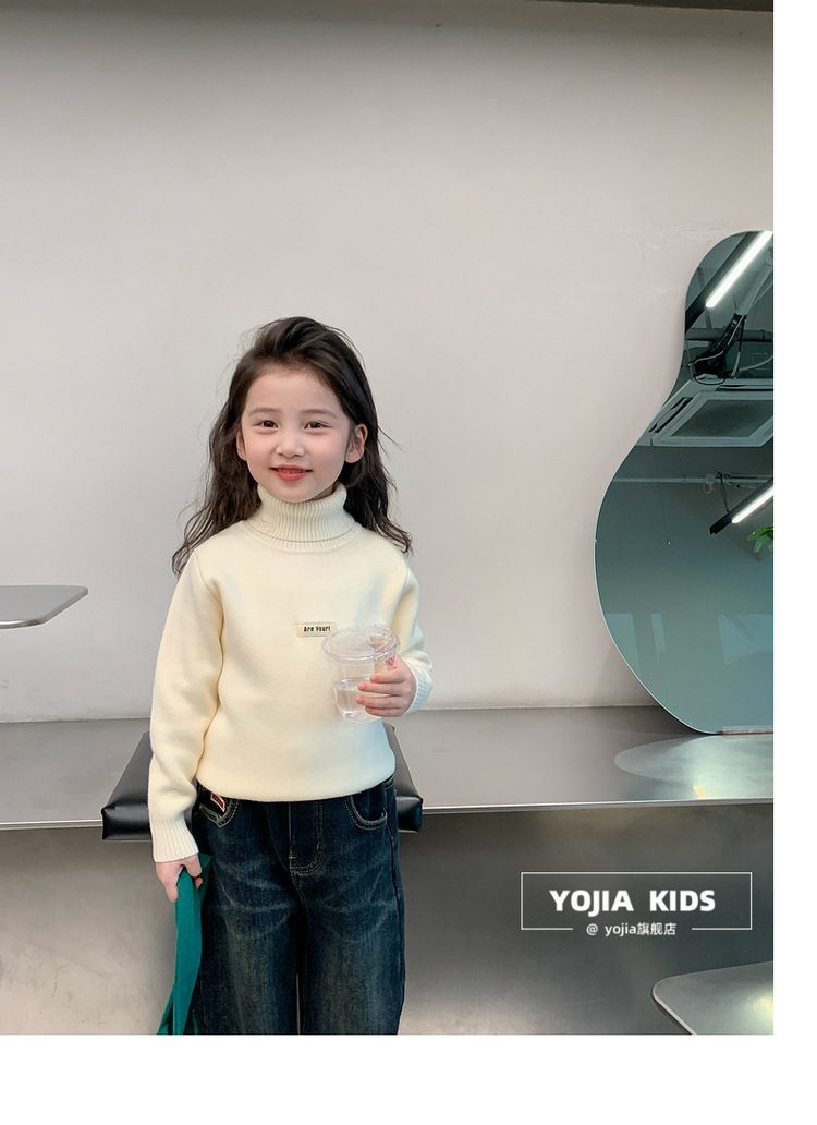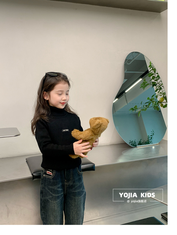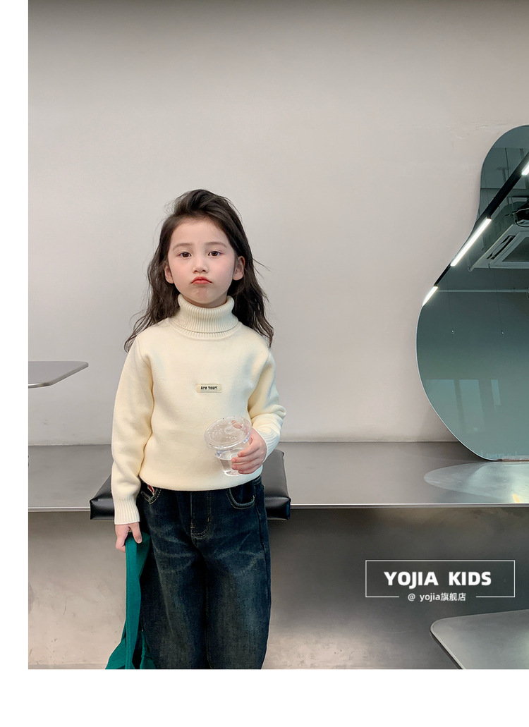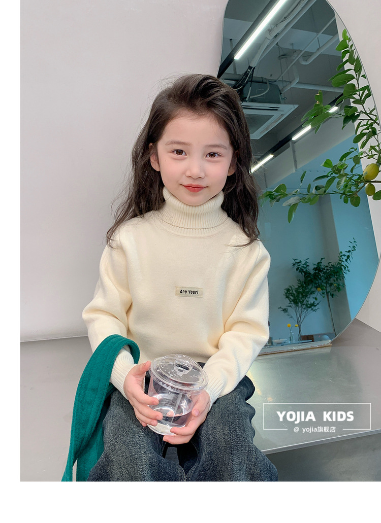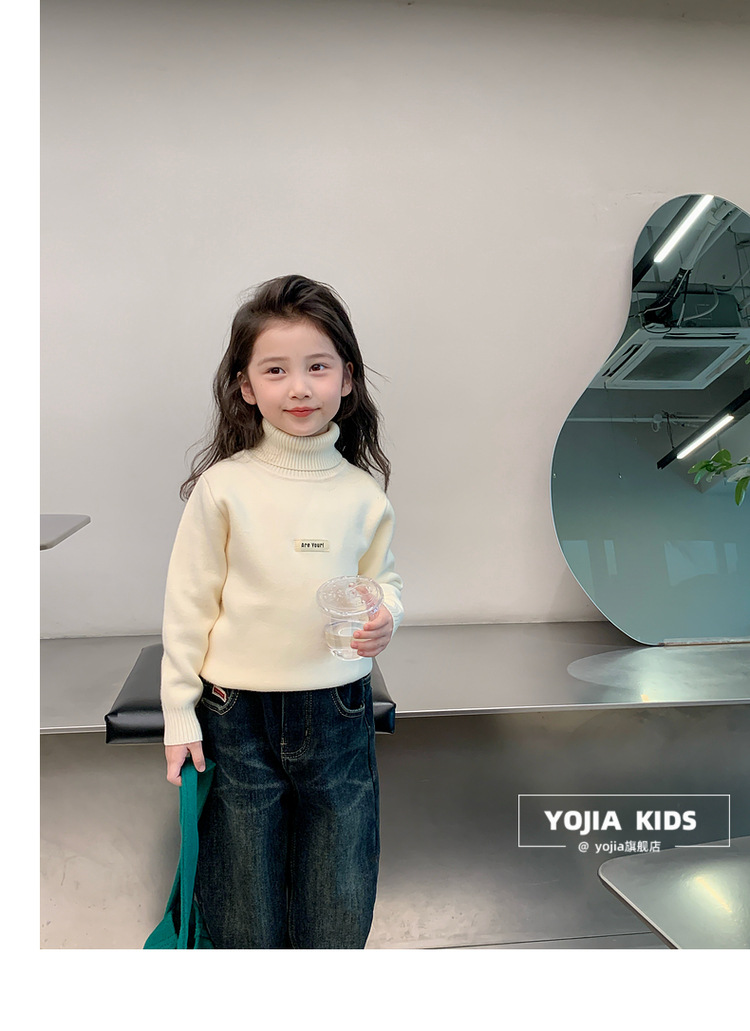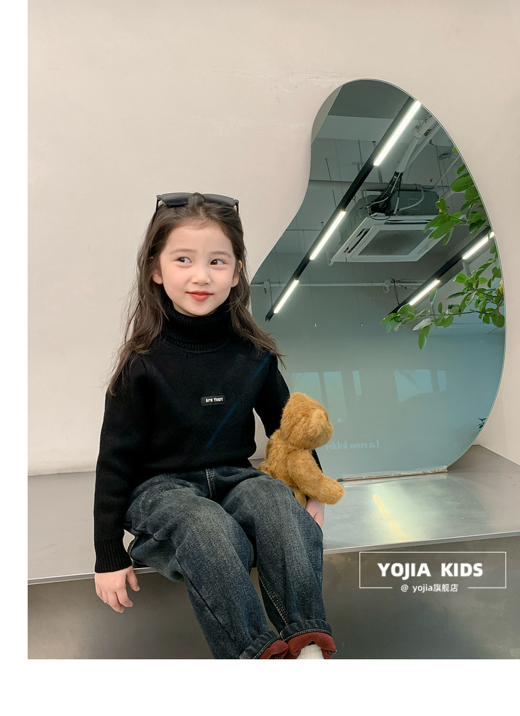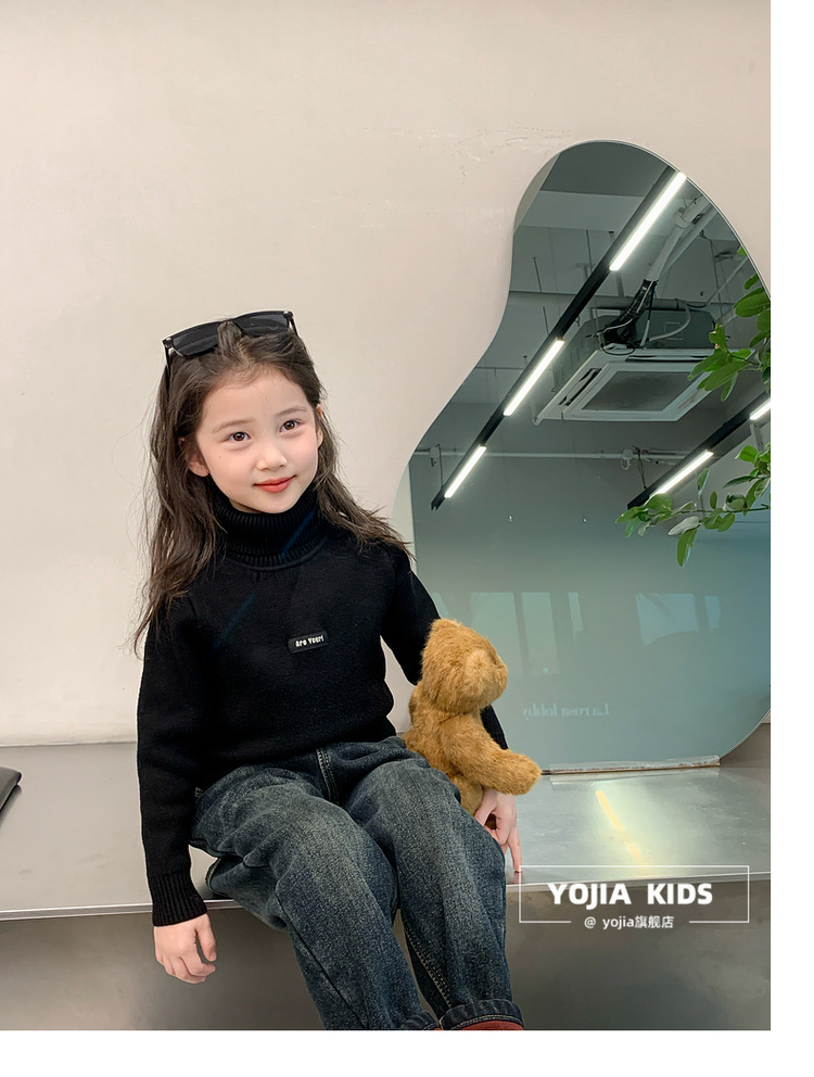 소녀의 스웨터베이스 셔츠 가을과 겨울 2023 새로운 스타일 소녀의 높은 칼라 니트 셔츠 겨울 두꺼운 어린이 탑스토어 가기