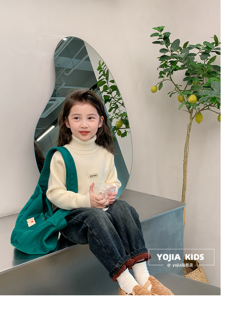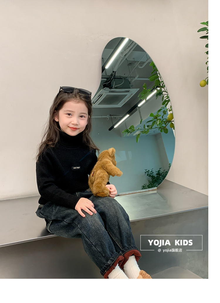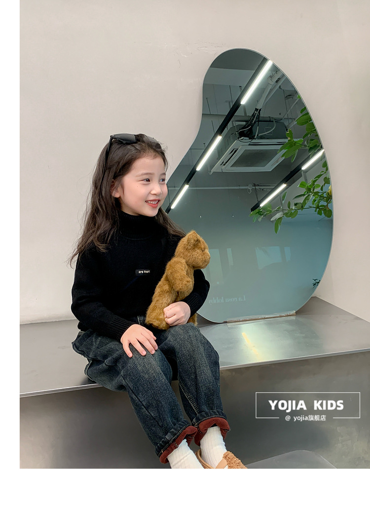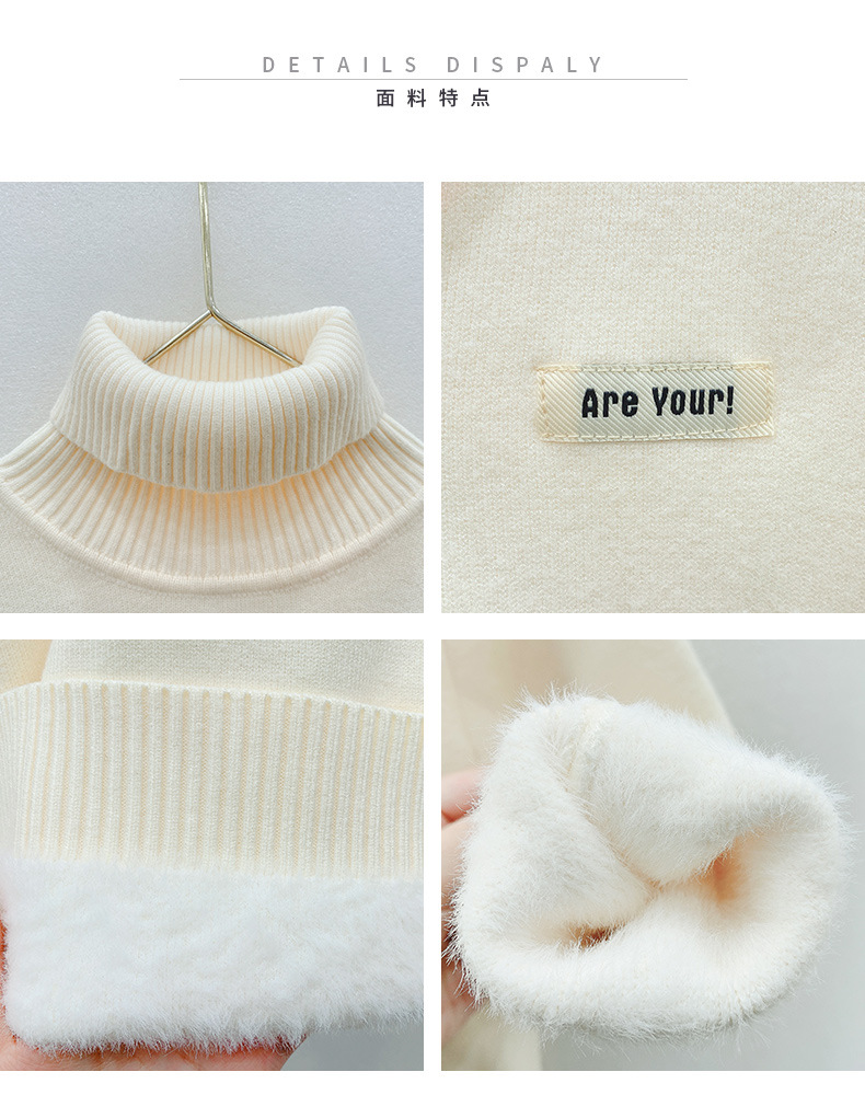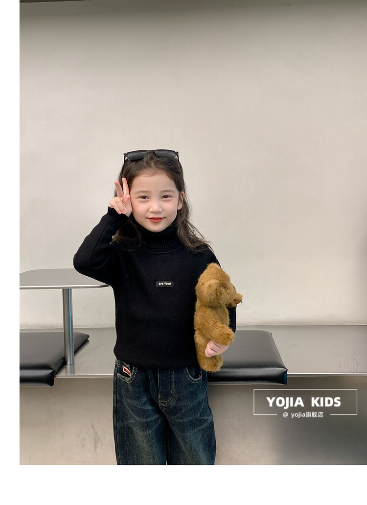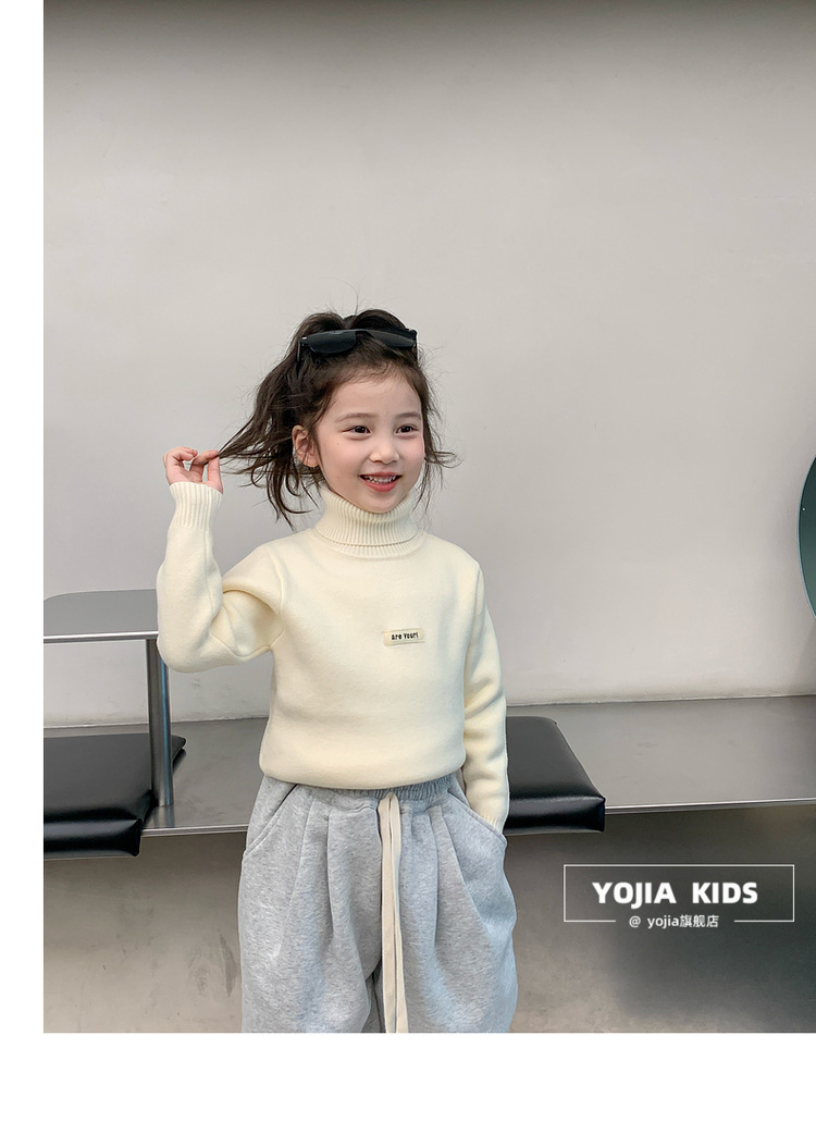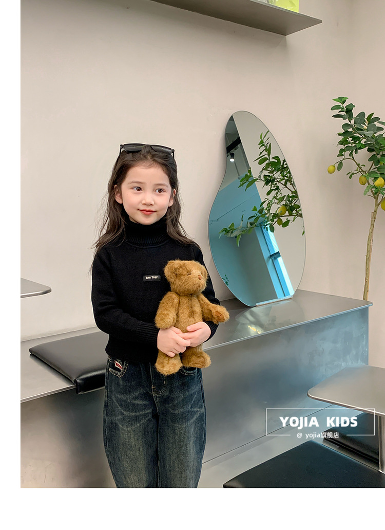 소녀의 스웨터베이스 셔츠 가을과 겨울 2023 새로운 스타일 소녀의 높은 칼라 니트 셔츠 겨울 두꺼운 어린이 탑스토어 가기