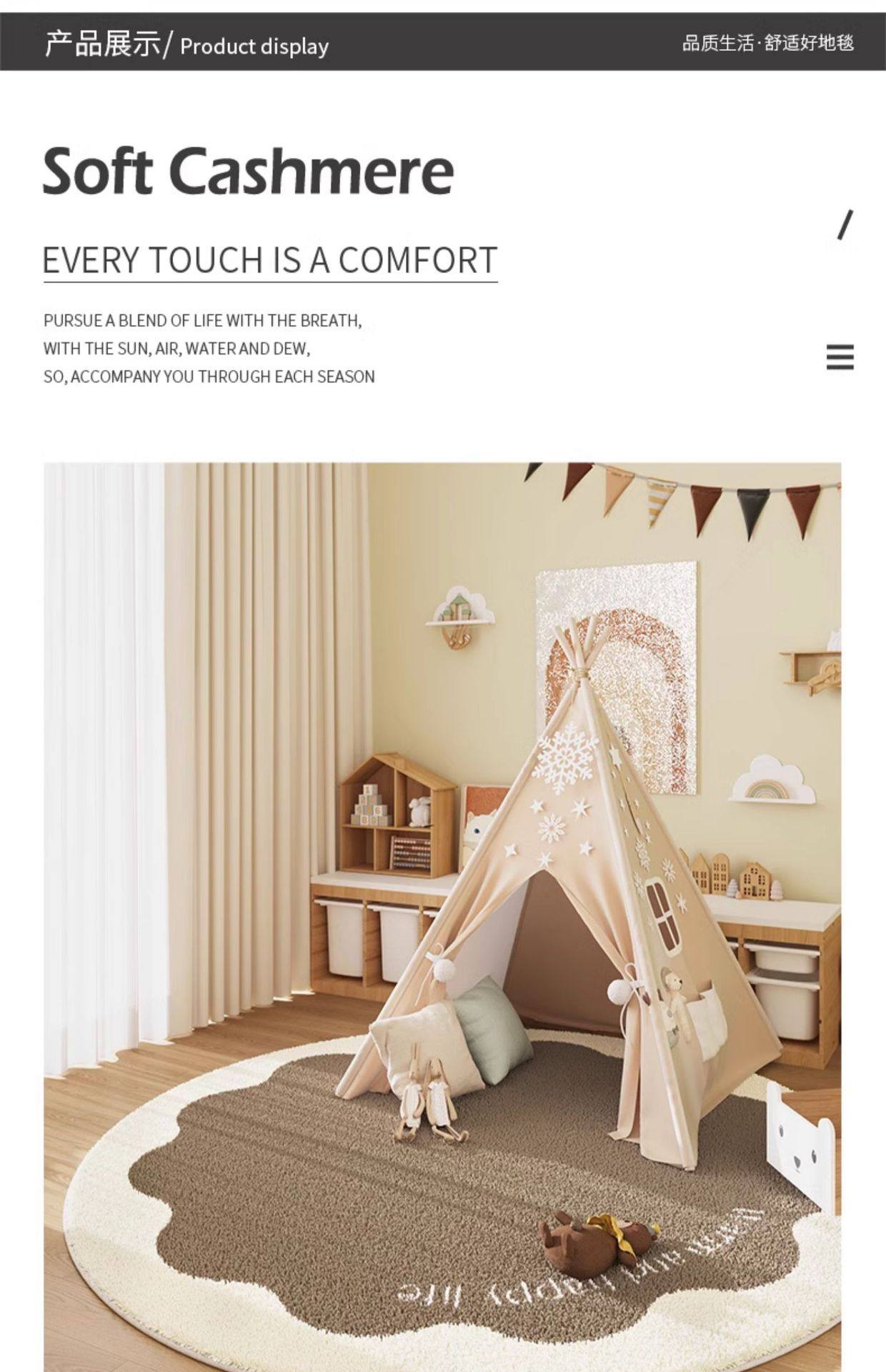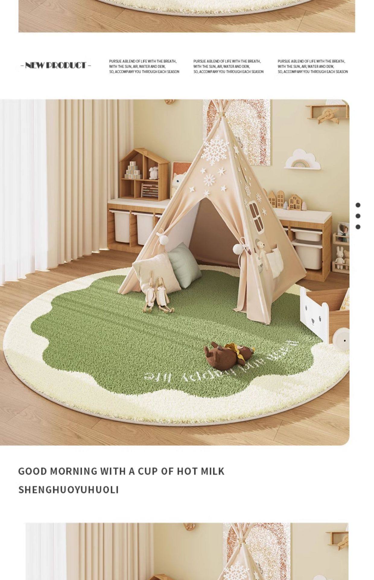 라운드 모조 캐시미어 카펫 어린이 방 침실 옆 담요 거실 미끄럼 방지 담요 유치원 아기 등반 매트