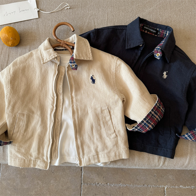 어린이 코트 2025 봄 새로운 도착 남녀 아동복 위브 컬러 랩 코트 아기의 지퍼 재킷 트렌디스토어 가기
