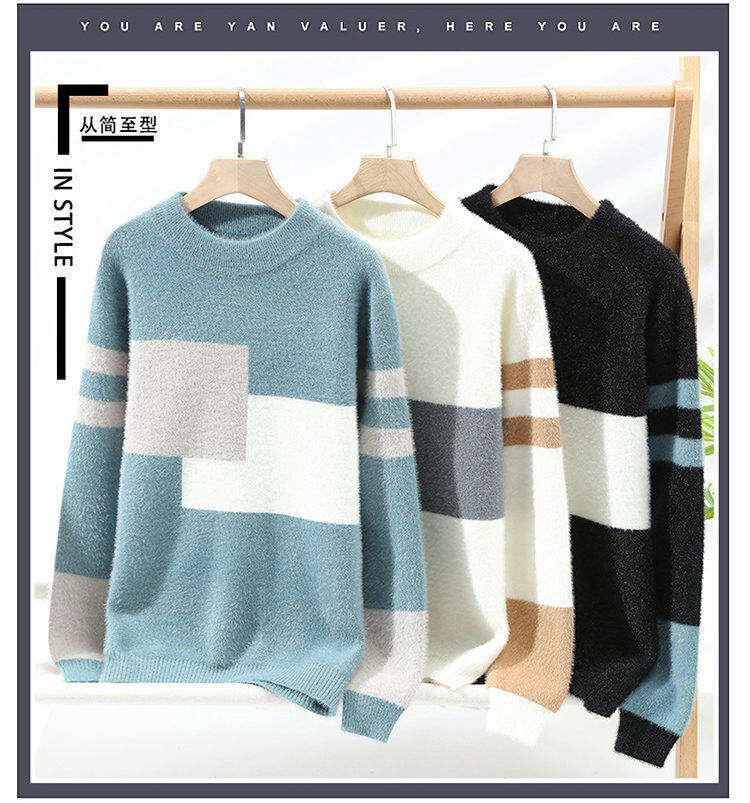 국경 간 대외 무역 세대 AliExpress 스웨터 가을과 겨울 반 높은 칼라 모조 밍크 벨벳 골드 밍크 품질 스웨터 남성스토어 가기