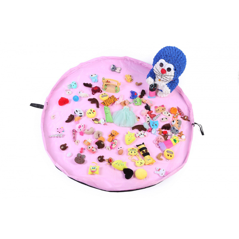 把孩子平常爱玩的一大堆玩具 都放在收纳垫里,孩子需要玩时,松开绳子,袋子马上变成垫子,玩具全部呈现,孩子不玩了,只要绳子一拉,玩具全部收拾好了,方便快捷,家里、野餐等等绝对不可缺少的实用收纳垫袋