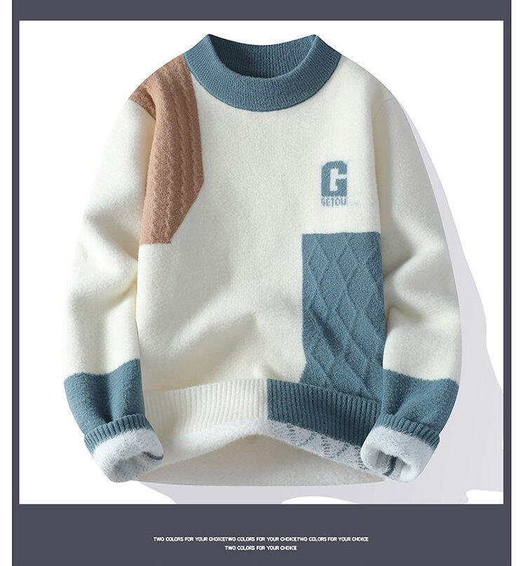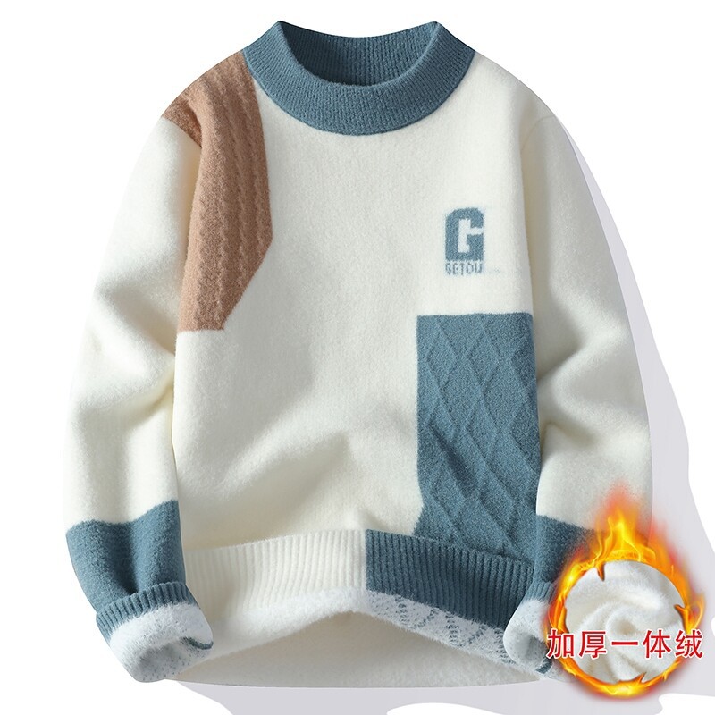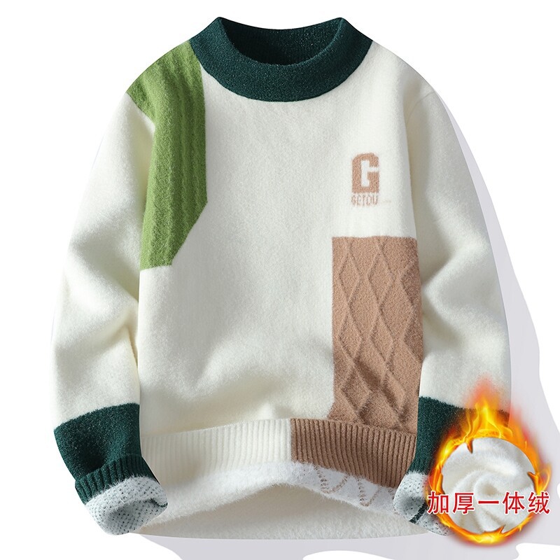 국경 간 대외 무역 세대 AliExpress 폭발 스웨터 가을 [한 벨벳] 단색 세미 터틀넥 기모 스웨터 남성