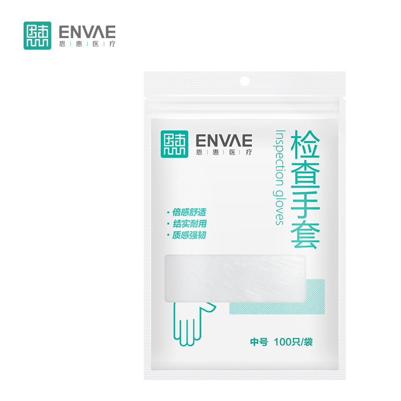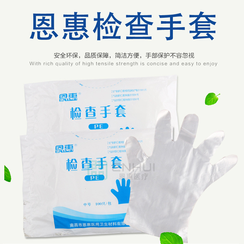 Enhui 의료 검사 장갑 의료 등급 일회용 투명 PE 두꺼운 장갑 필름 장갑 중간 도매스토어 가기