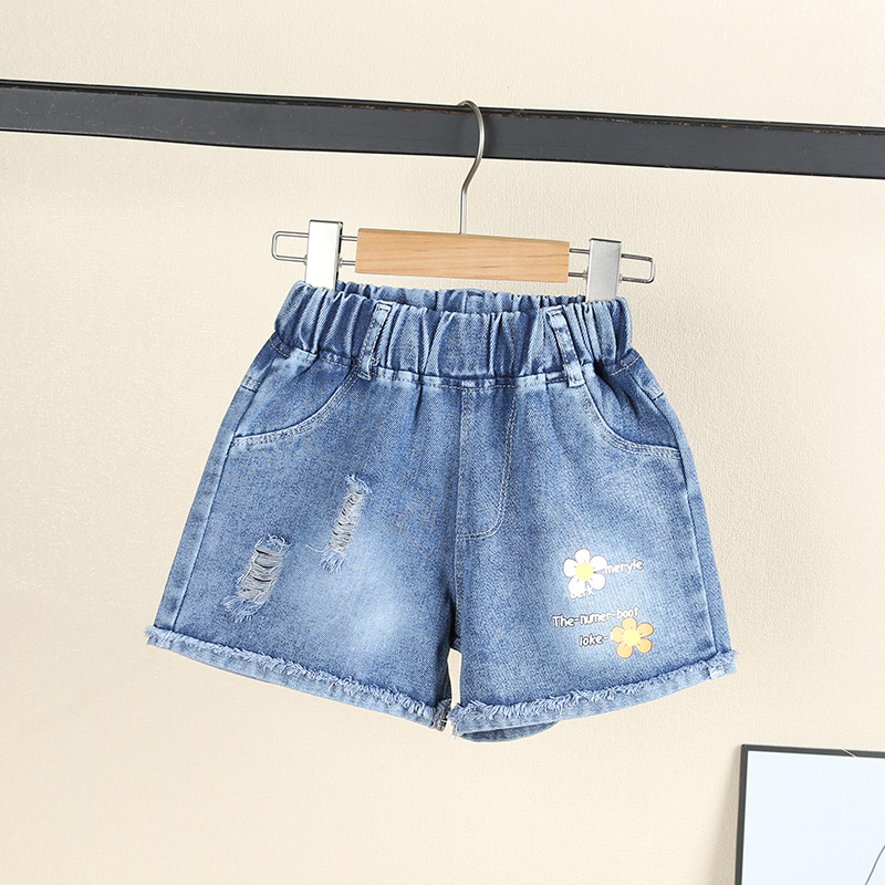 여아 캐주얼 데님 반바지 2025 여름 새 스타일 아동 한국식 워싱 찢어진 소프트 반바지 중대형 어린이를위한스토어 가기