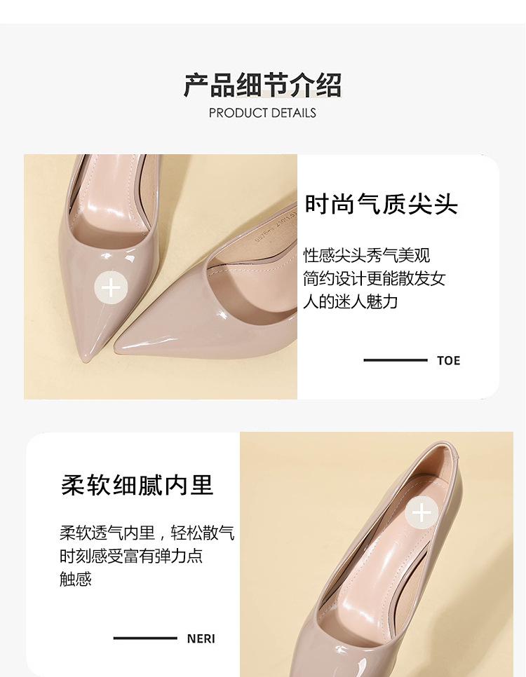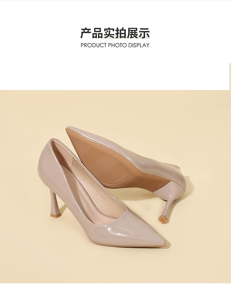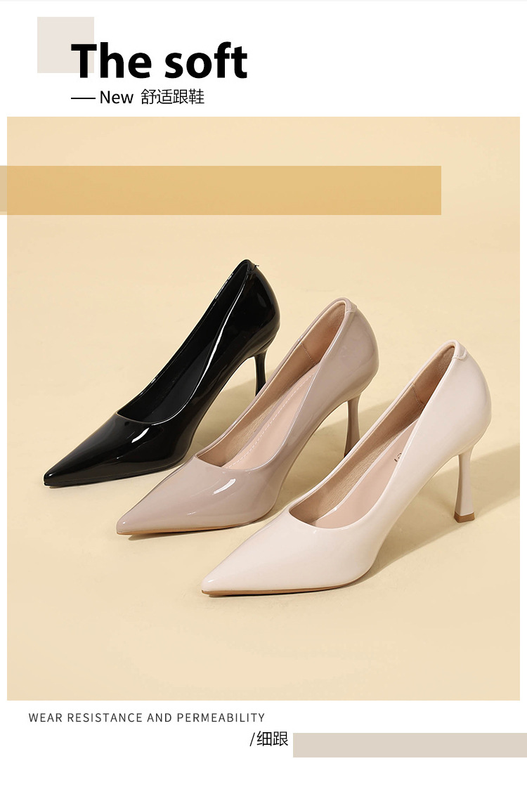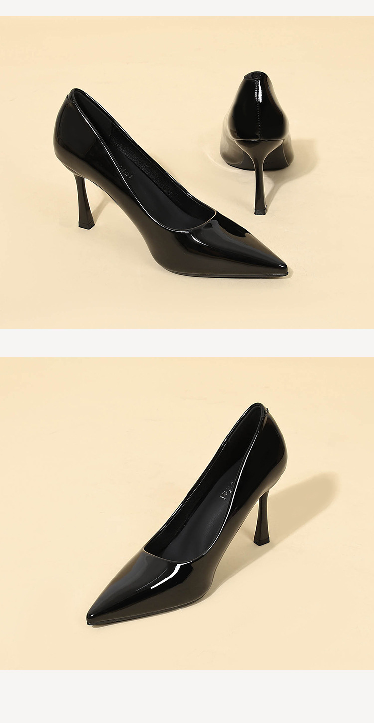 9cm 우아한 올 매치 단순 얕은 입 슬리밍 얇은 발 뒤꿈치 여성용 싱글 레이어 신발 블랙 포인팅 특허 가죽 하이힐 전문 신발스토어 가기