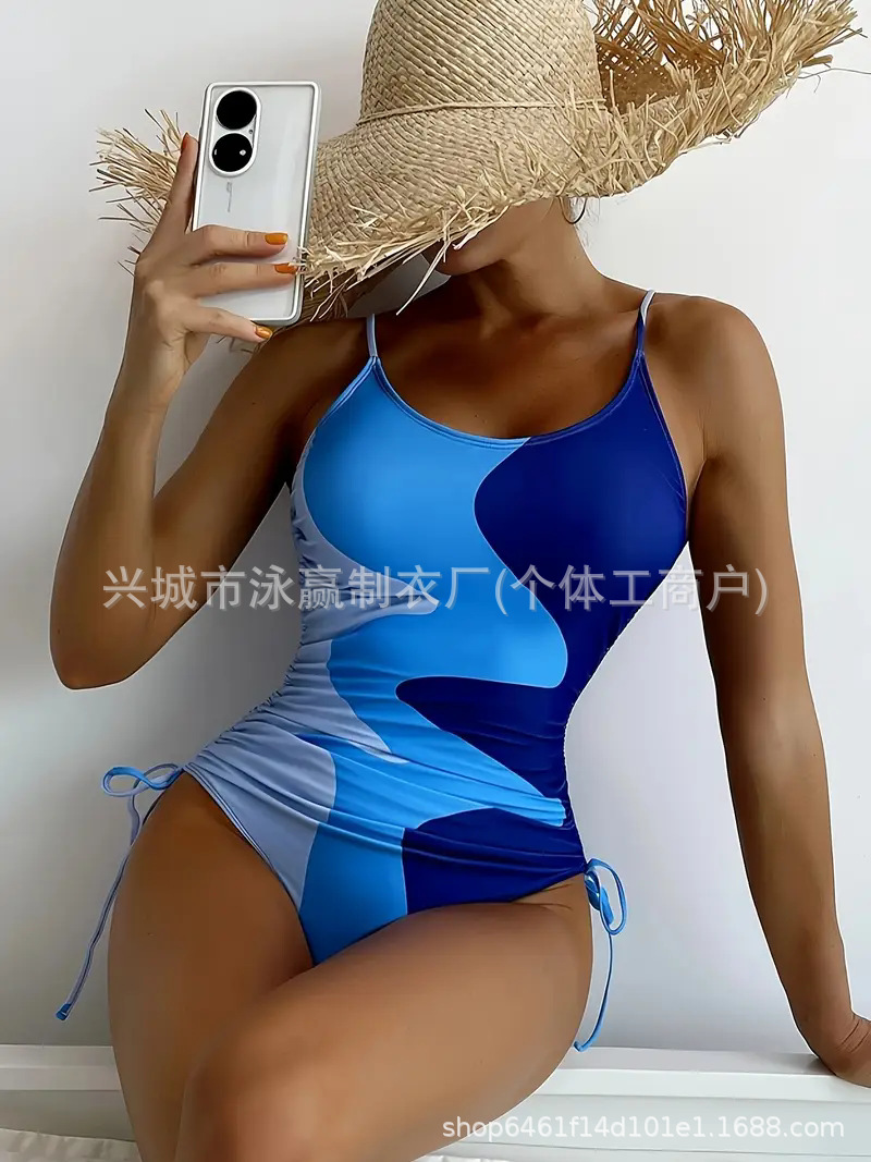 2024 국경을 넘는 새로운 수영복 유럽과 미국의 섹시한 슬링 스트랩 드로우 스트링 백리스 트라이앵글 컬러 매칭 여성 수영복스토어 가기