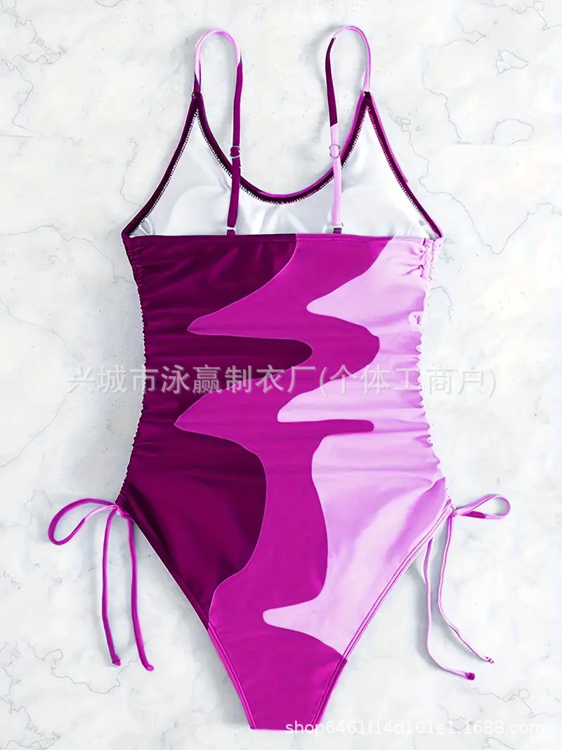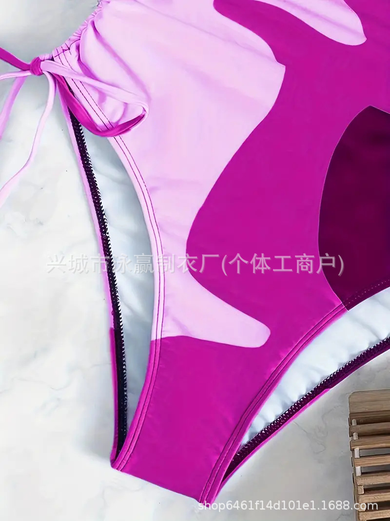2024 국경을 넘는 새로운 수영복 유럽과 미국의 섹시한 슬링 스트랩 드로우 스트링 백리스 트라이앵글 컬러 매칭 여성 수영복