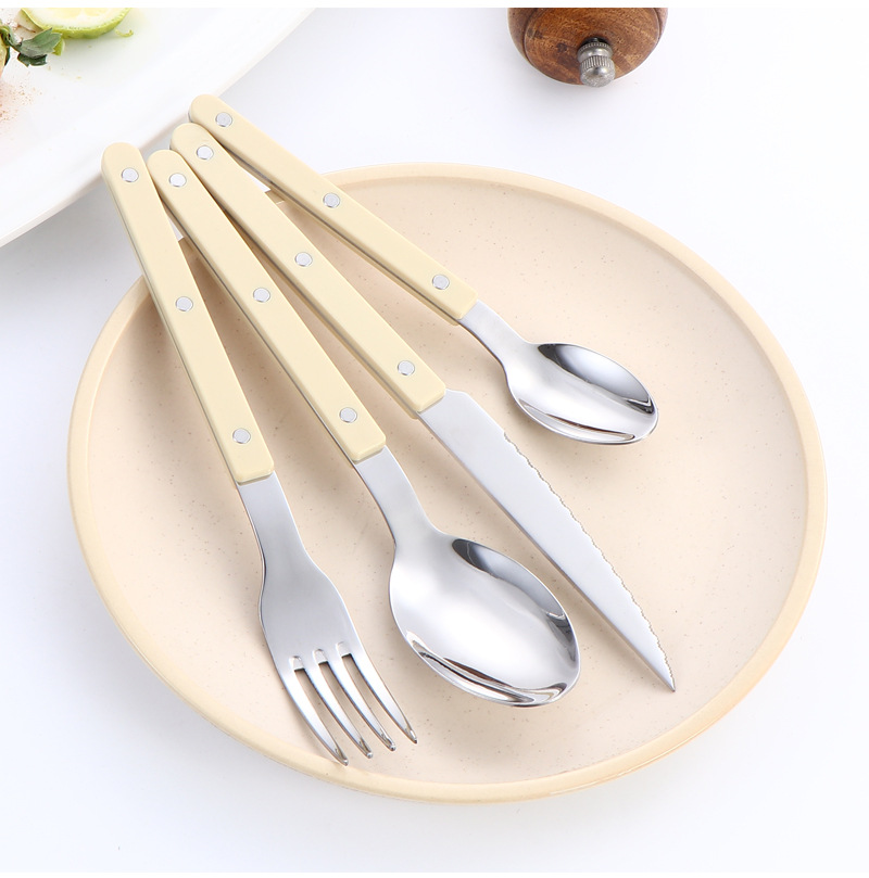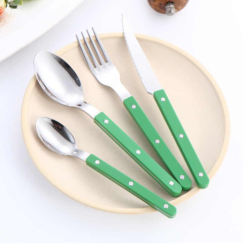 국경 간 스테인레스 스틸 클램프 핸들 나이프와 포크 스푼 버들 네일 클램프 핸들 식기 웨스턴 식기 스테이크 나이프와 포크 스푼 호텔 식기스토어 가기