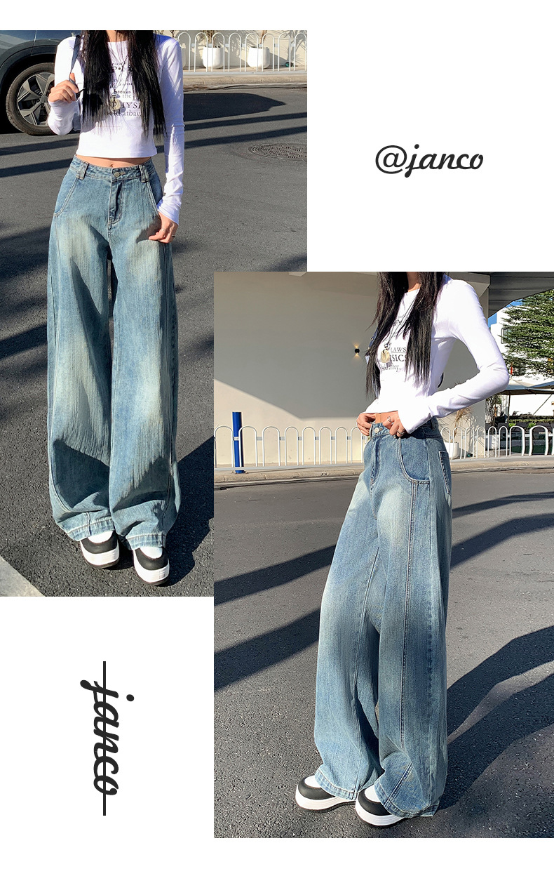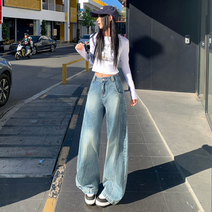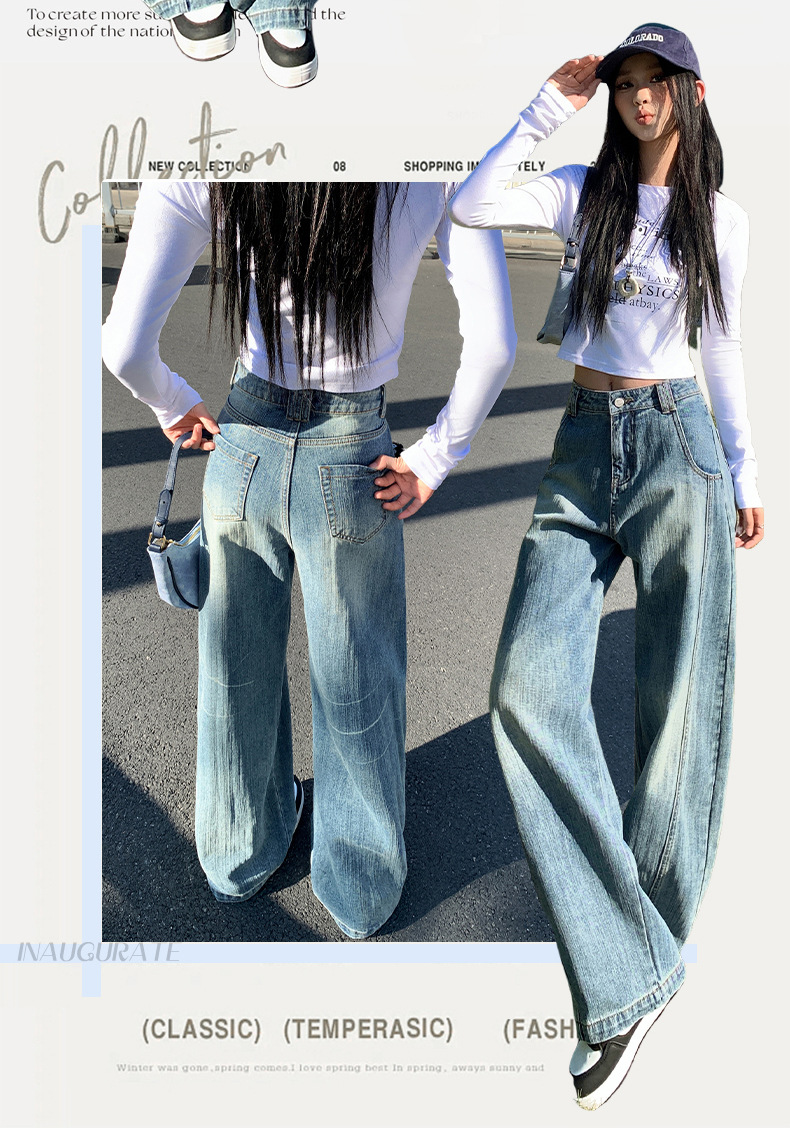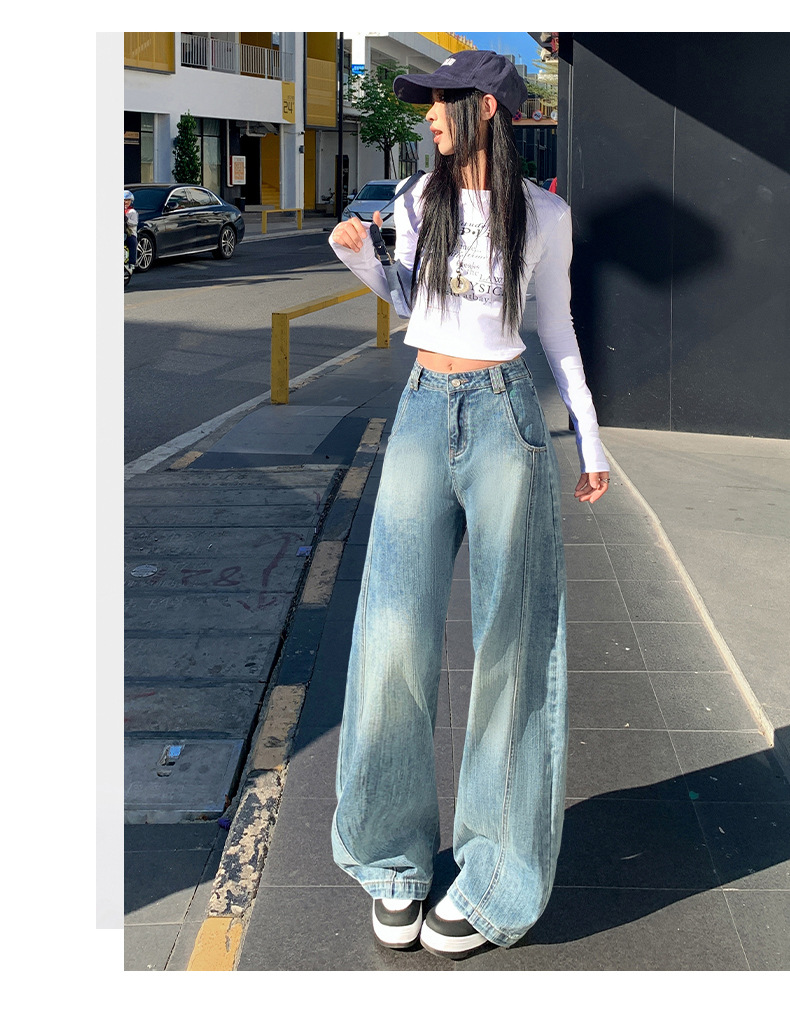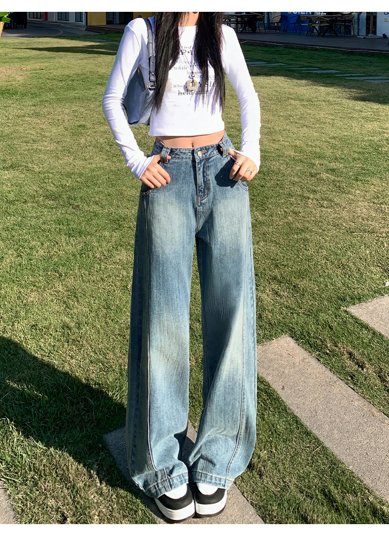 남성과 여성을위한 슬러브 해체 느슨한 시미 타르 청바지 2025 새로운 미국 스타일 복고풍 넓은 다리 캐주얼 바지