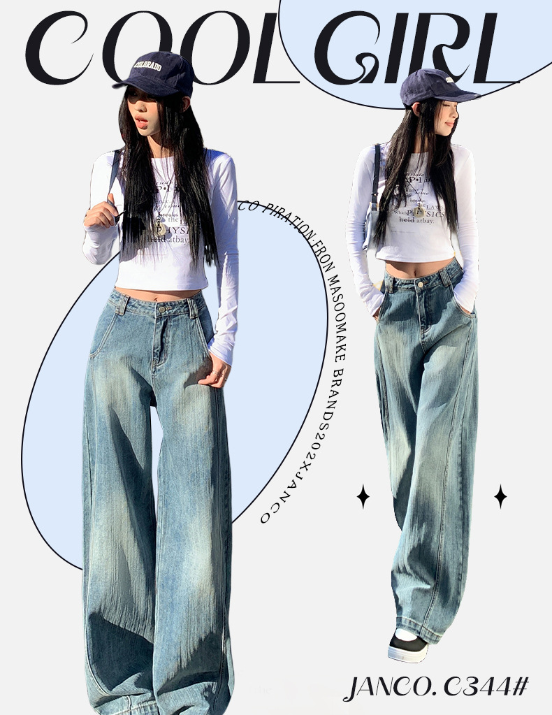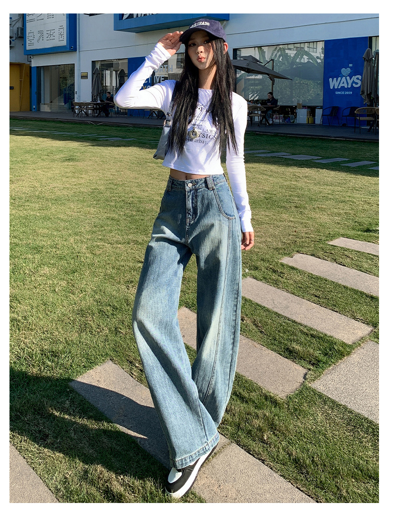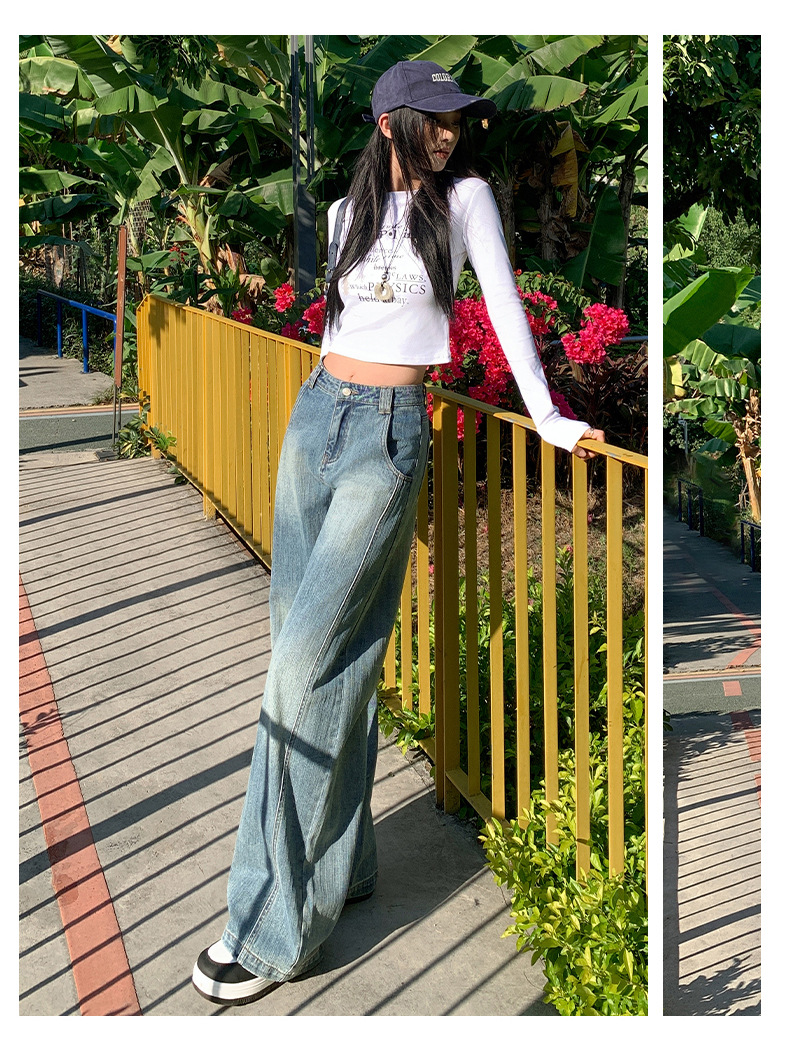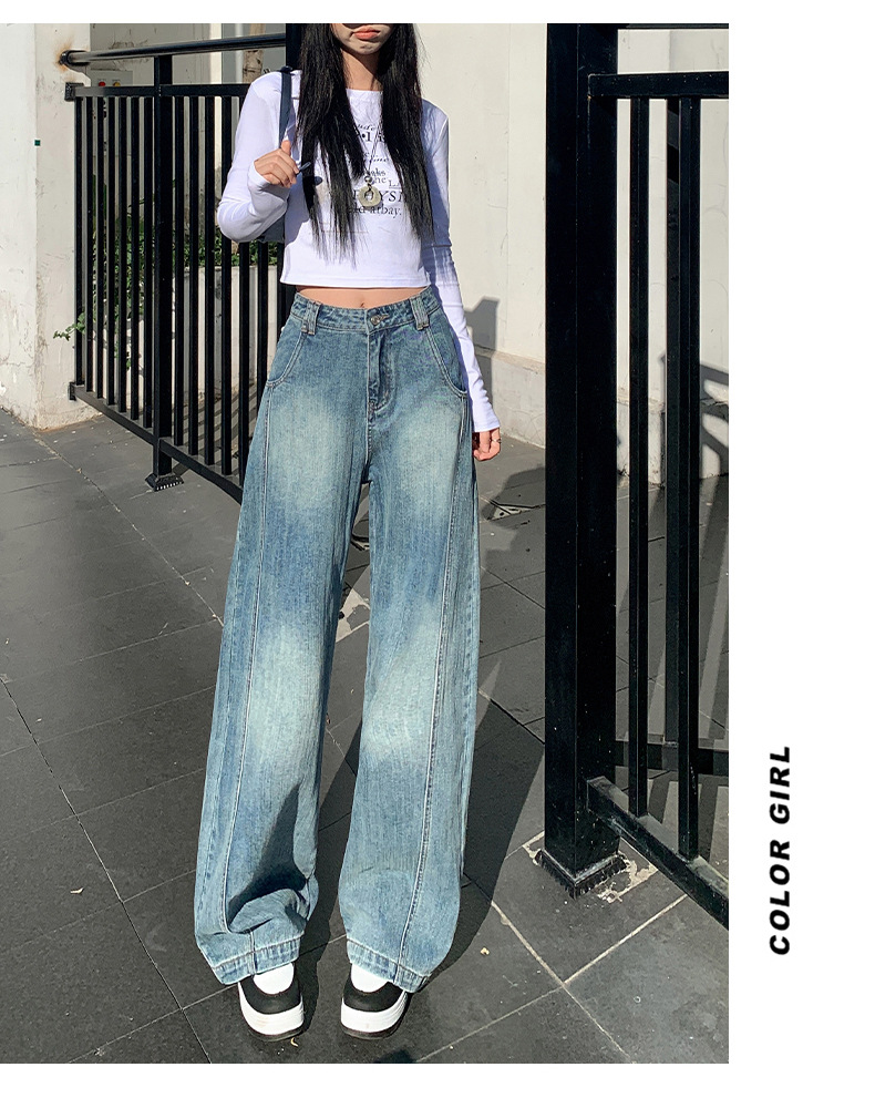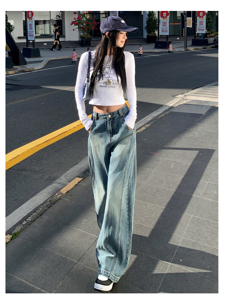 남성과 여성을위한 슬러브 해체 느슨한 시미 타르 청바지 2025 새로운 미국 스타일 복고풍 넓은 다리 캐주얼 바지